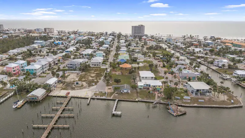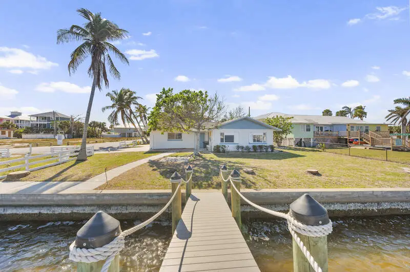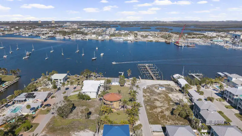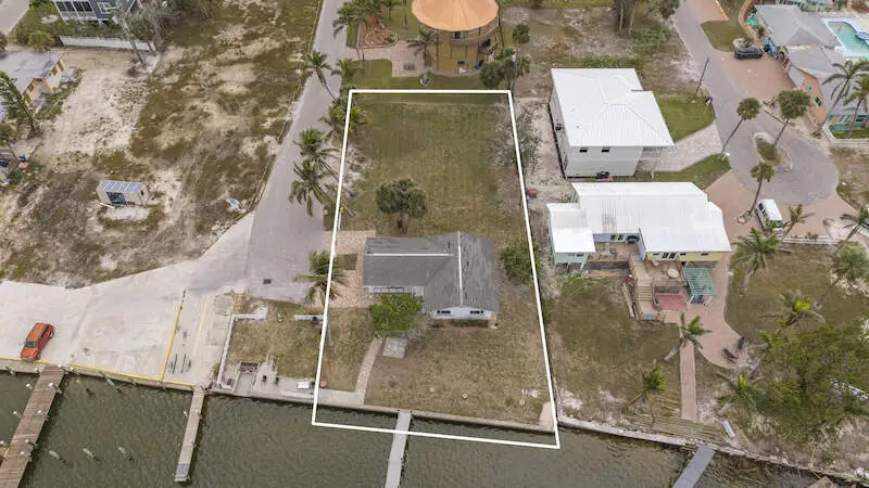 Nestled on the shores of Fort Myers Beach, this waterfront plot of land offers a captivating blend of coastal charm, tropical vibes, and is just waiting for someone to build their property in PARADISE! Renowned for its proximity to the sugary sands of Fort Myers Beach (7 min walk), this property also boasts 80 feet of Bay frontage, offering unparalleled access to the water. HOME IN PICTURES HAS SINCE BEEN REMOVED AND READY FOR NEW BUILD!! A Composite wood dock built in 2021 provides the perfect vantage point for admiring the panoramic views of Estero Bay and Mantanzas Pass, where the shrimp fleet adds a touch of local color. Embark on a short boating excursion to enjoy and discover the many dining and entertainment venues nearby. Whether it's enjoying endless sunrises and sunsets, watching the dolphins and manatees while fishing right off your dock, this is a haven for those seeking the ultimate waterfront living experience. Being very close to the North end of the Island means shopping and dining minutes away, and easy access on and off the island. This lot is oversized and able to accommodate an extremely large single family residence (with room for a pool!) to spread out, or, split the lots and build 2 homes for family or investment. LOCATED IN A WEEKLY RENTAL ZONE, Your choice of endless opportunity is here!!! If you have any questions whatsoever, please feel free to contact the listing agent. Existing structure scheduled to be removed. WHAT'S THE OLD SAYING? WHEN OPPORTUNITY KNOCKS, OPEN THE DOOR!!
