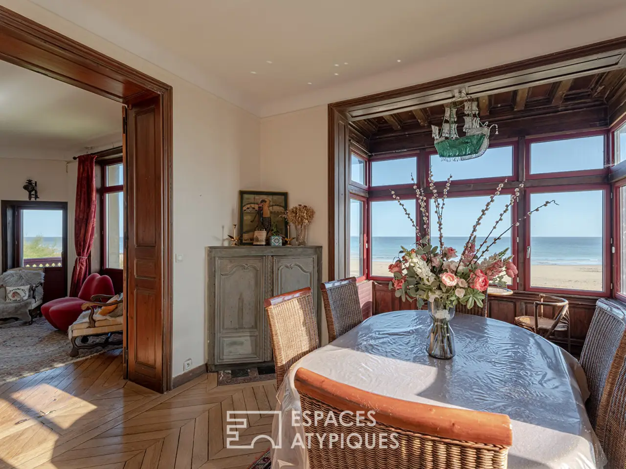 This 190 m2 apartment is located on the edge of Lion sur Mer beach in a 19th century residence. The apartment, spread over two levels, offers a splendid view of the sea and immediate access to the beach. Beautifully decorated and laid out, with superb parquet floors, it offers a large, very bright living room overlooking the sea, a dining room, four bedrooms, two shower rooms, a kitchen and toilet. Going down a stone staircase, you reach two other bedrooms, a living room, a kitchen, a shower room and toilet. The two levels can be occupied at the same time or separately because they each have independent access. The plus points: a small terrace as well as access to the garden of the condominium. Property subject to the status of co-ownership. 3 residential lots. Annual amount of co-ownership charges: EUR5,000. No procedure in progress. ENERGY CLASS: F / CLIMATE CLASS: E Estimated average amount of annual energy expenditure for standard use between 6080 and 8260 Euros / year. Average energy prices indexed for the years 2021, 2022, 2023 Information on the risks to which this property is exposed is available on the Georisques website: www.georisques.gouv.fr Marc Dechant 07.88.70.21.51 -Sales agent EI RSAC 434 272 373 CaenREF. 8060Additional information* 9 rooms* 6 bedrooms* 3 bathrooms* Parking : 1 parking space* 8 co-ownership lots* Annual co-ownership fees : 1 €* Property tax : 2 322 €* Proceeding : NonEnergy Performance CertificatePrimary energy consumptionf : 415 kWh/m2.yearHigh performance housing*A*B*C*D*E*415kWh/m2.year66*kg CO2/m2.yearF*GExtremely poor housing performance* Of which greenhouse gas emissionse : 66 kg CO2/m2.yearLow CO2 emissions*A*B*C*D*66kg CO2/m2.yearE*F*GVery high CO2 emissionsAgency feesThe fees include VAT and are payable by the vendorMediatorMediation Franchise-Consommateurswww.mediation-franchise.com29 Boulevard de Courcelles 75008 ParisInformation on the risks to which this property is exposed is available on the Geohazards website : www.georisques.gouv.fr