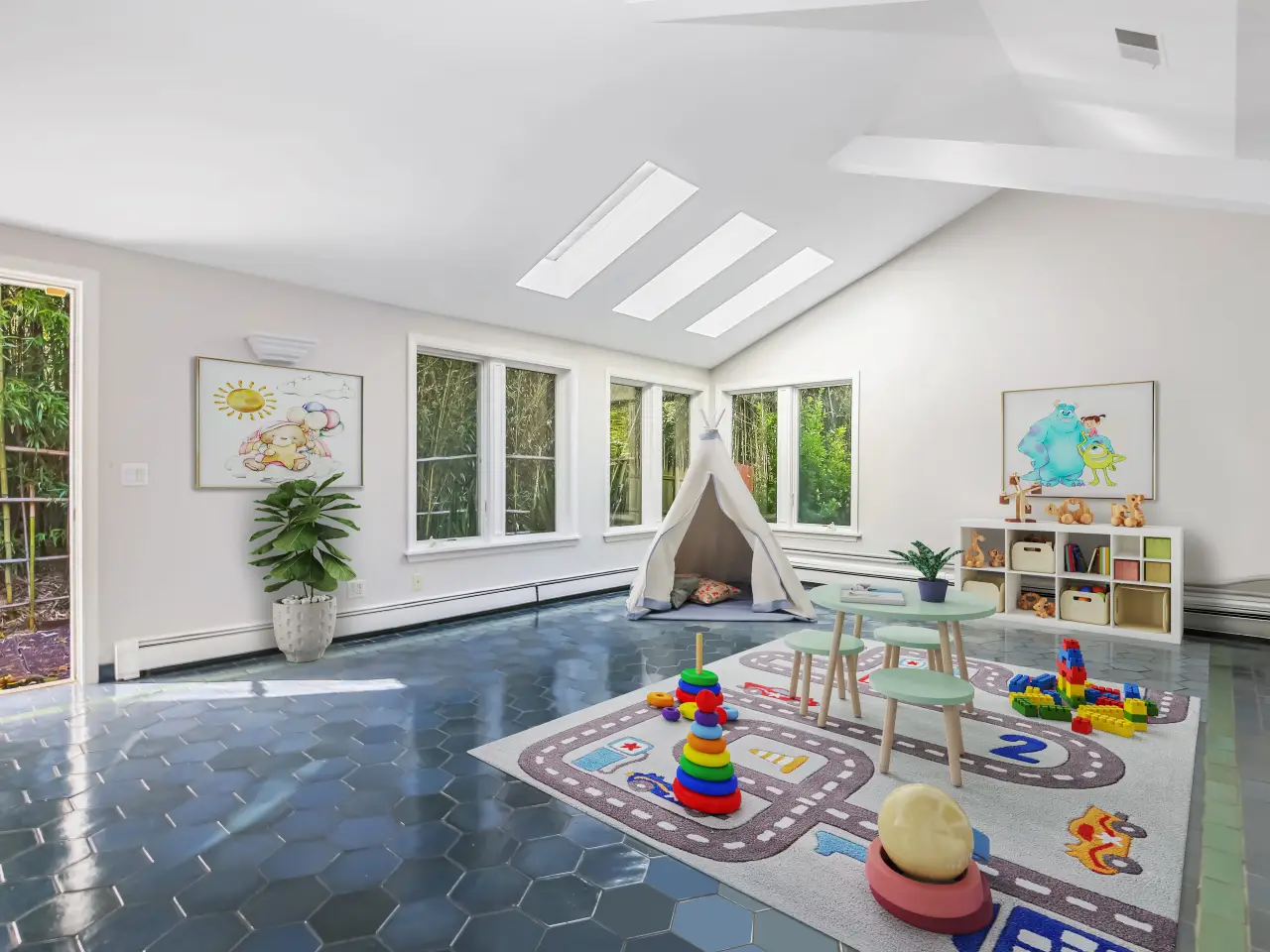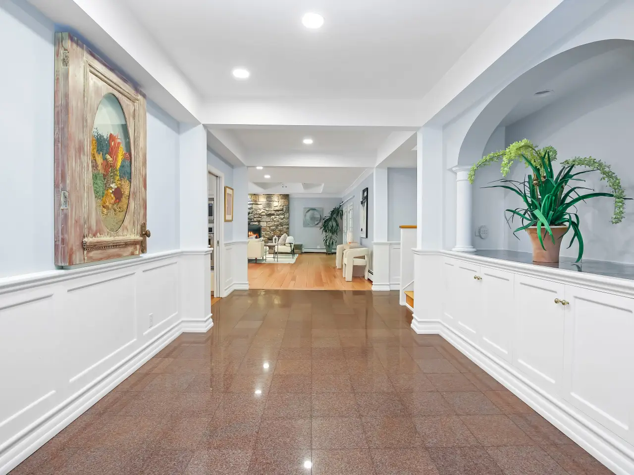 Move right into this five-bedroom Colonial on .88 of an acre on a quiet street. Renovated in 1990, interior features a bright eat-in kitchen that opens to a great room with dining area, stone fireplace and multiple French doors leading to yard and terraces, great for relaxing or entertaining. There is also a large family room with pool table, full bath and fireplace. Spacious guest suite or office with its own entrance to outside, and mudroom with full bath finish out the main level. The upstairs offers a flexible layout. Primary suite features a dressing room, walk-in closet, and two full baths. Open hallway with Juliet balcony leads to a bedroom with en-suite bathroom and walk-in closet, two additional bedrooms with bathrooms, office, and laundry room. The office would make a great nursery or playroom. Third-floor loft provides bonus space for another office or art studio. Solar panels and three-car garage.