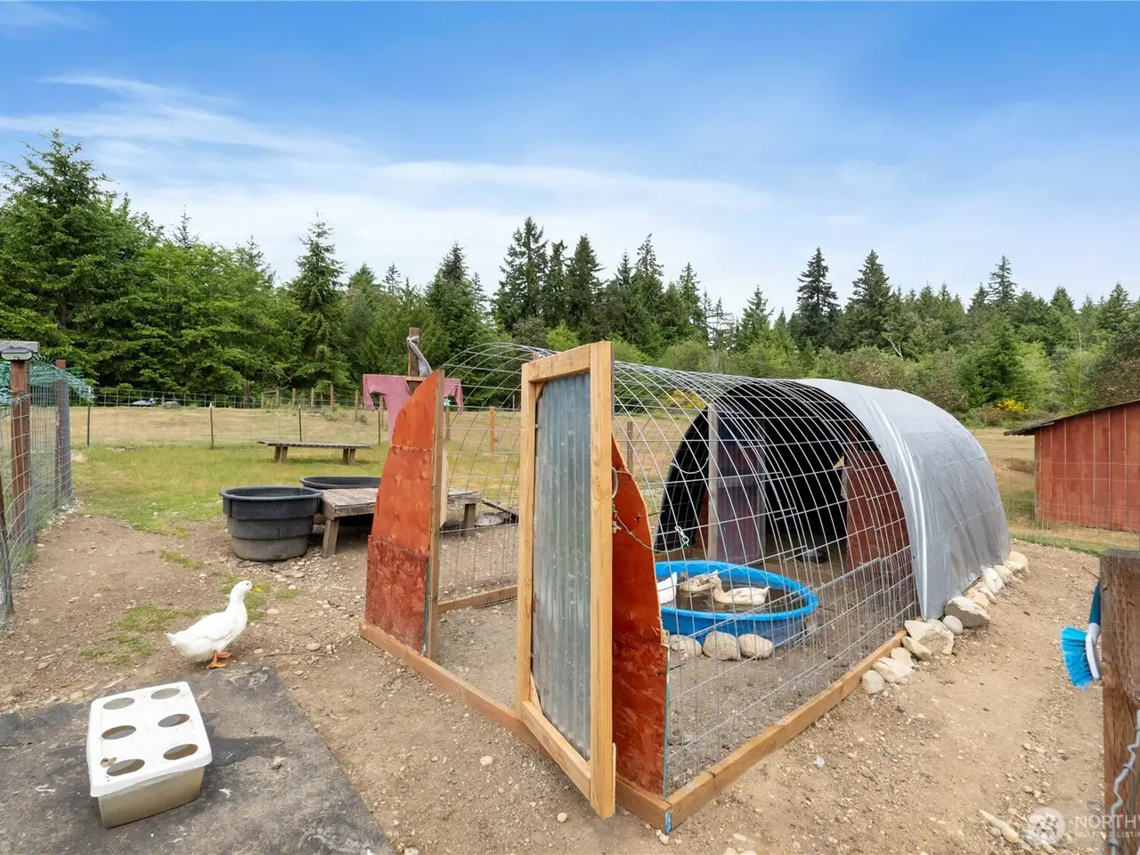 Turn-key 4BR/3BA custom home with a 3 bdrm ADU Rambler on a fully equipped hobby farm! Enjoy 3,000 sq ft of updated living space w/AC, jetted tub, office, digital climate controls & ceiling fans in all BRs. Outdoors: 7.35 Acres, 3 fenced pastures, horse round pen, ATV trails, chicken coop, duck enclosure w/plumbed pool, 200 sq ft shed, RV hookup, EV-ready garage & generator plug-in. Relax w/water feature, hot tub & fire pit. Gated entry w/remotes & package slide. ADT security, high-speed DSL. ADU w/ 1200 sq ft, 3BR/2BA, garage & fenced yard. Prime location--school bus stop at driveway, 2 min to Evergreen Elem, 11 min to Key Center, 29 min to Costco, near Joemma & Penrose Parks. A rare blend of comfort, space & rural charm!