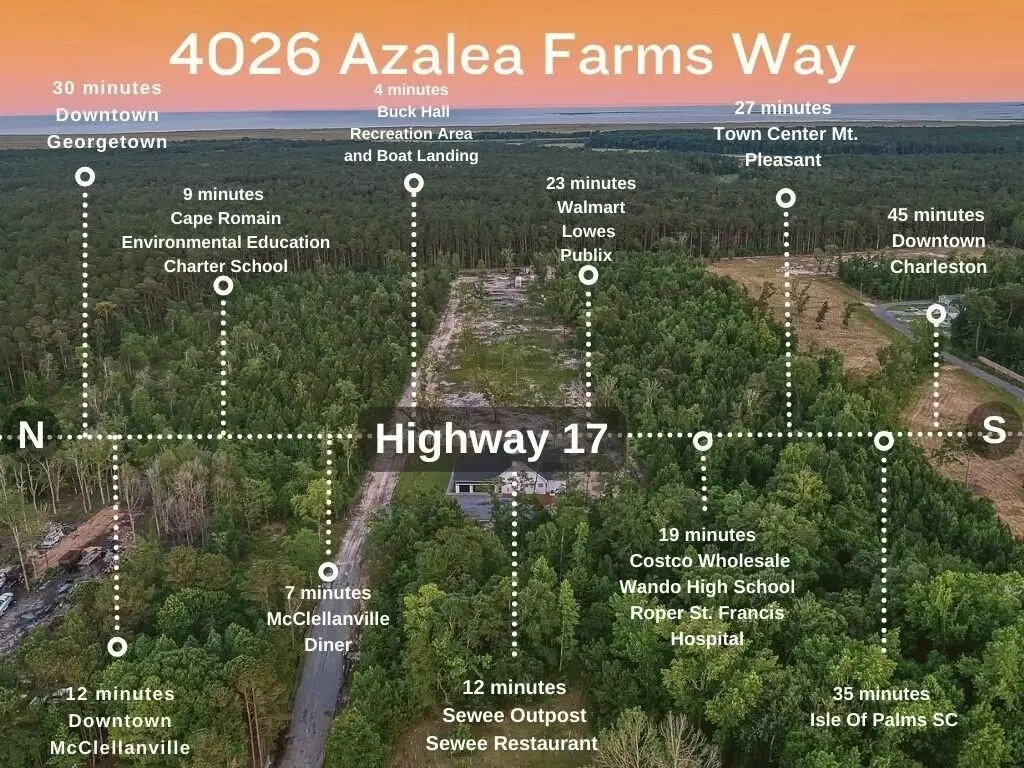 Welcome to 4036 Azalea Farms Way. This 4 bed 4 1/2 bath home is the second of four custom built homes just off of Highway 17. Over 3500 square feet nestled on a one-acre lot with views of Francis Marion National Forest, this home is family-ready and begging to entertain. From the vaulted ceilings to the hardwood floors, natural light spills into this open concept home through the glass entryways and casement windows. The gourmet kitchen is complete with granite countertops, a massive island, a free-standing 36'' gas range and exhaust hood, dual wall ovens and a farmhouse sink with garbage disposal and reverse osmosis water dispenser. A butlers pantry is right off the kitchen complete with tons of storage, an extra sink and more counter space. Guests may gather in your large dining area or take advantage of the screened-in back porch featuring oyster shell accents and a fire table. The owner's suite offers a tray ceiling, access to the screened porch, and a beautifully appointed ensuite bath with a private water closet. Much like the kitchen, all good things in this home come in twos, a double vanity with feature lighting and mirror, a luxurious soaker tub and substantial walk-in shower with multiple shower heads and heated floors. Two additional large bedrooms share a Jack and Jill bathroom with private entry from each bedroom and dual vanity. A fourth downstairs bedroom could be a great guest or mother-in-law suite complete with full bath. Pre-wired for an automated screen and projector, the upstairs bonus room is ready for fun and function with its own full bath. Additional rooms include a spacious laundry room, drop zone/mudroom, and home office featuring custom built-in shelving. Other stand out features of this home include heated bathroom floors; overhead fans in the Great Room, back porch, and all bedrooms; a tankless water heater, a whole house well water filter; underground irrigation; and bluetooth controls enabled throughout. The three-car garage is the cherry on top with custom floors, a 50 amp electric vehicle plug, and an additional 220V 30 amp outlet for any large voltage needs. Venture back into the forest and take your fishing pole! Lots to explore and tidal creeks/salt water pond you can fish in. From here you're only 20 minutes to shopping and dining in Mt. Pleasant, 10 minutes to Awendaw Green where you can enjoy local music and 5 minutes to the nearest public boat landing.