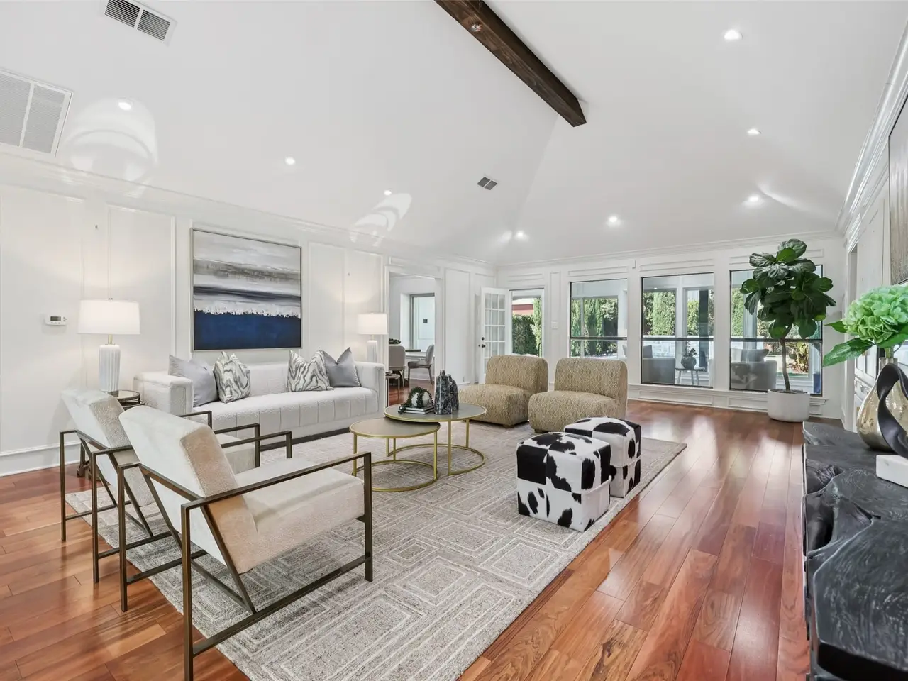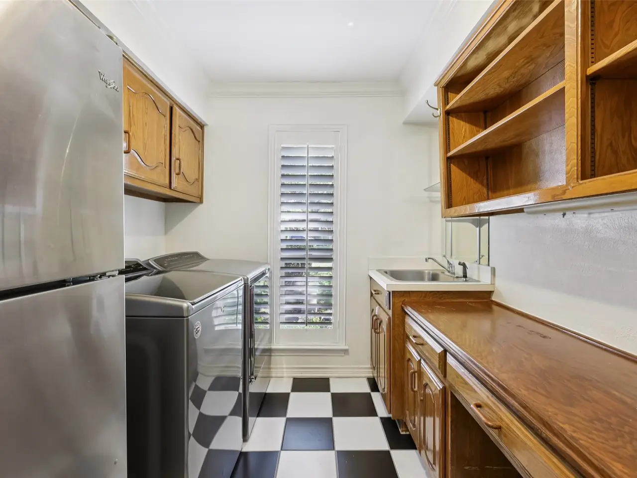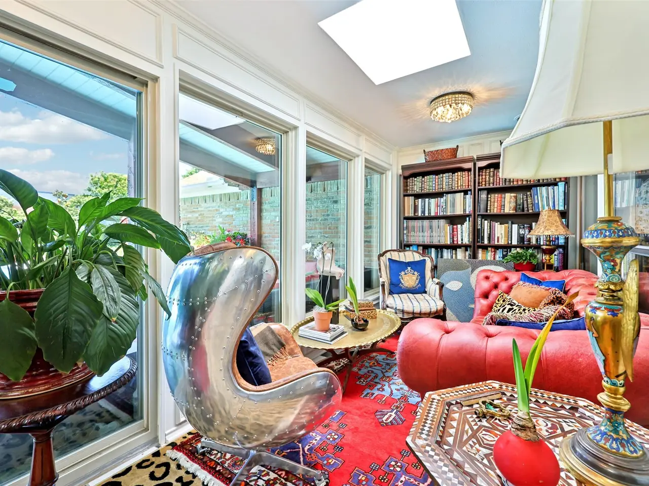 THIS IS A GREAT HOUSE located in one of the hottest areas of Dallas, and in a dynamic economic powerhouse area in the private school corridor, a beautifully maintained single-story home on a large lot with magnificent mature trees, where many happy memories were made. This residence features four bedrooms (or three bedrooms and a den), three bathrooms, three living areas, and two dining areas, blending timeless style with modern comfort. Features include gleaming wood floors, abundant natural light, and serene views from nearly every room. The renovated kitchen features a breakfast bar, a 6-burner gas cooktop, and a stainless-steel refrigerator. Adjacent breakfast nook with built-ins overlooks the sparkling pool. Enjoy multiple flexible living spaces, including a totally private, split red-painted guest room or den; an atrium that connects you to nature; and a covered patio for year-round outdoor living. The heated pool, powered by solar panels, invites swimming year-round. The formal living area features a vaulted ceiling, fireplace, and hidden wet bar. The primary suite features his-and-hers bathrooms, dual walk-in closets, a renovated bathroom with a walk-in shower, a spa tub, and a bidet toilette. Additional highlights: detached 26' x 20' 2-car garage with side entry and electric gate, large area for RV parking, French drains, cedar-lined closets throughout, roof replaced in 2021, and more. Seller offers a $5,000 allowance for the buyers choice of fixtures. This exceptional home combines elegance, comfort, and convenience in one of Dallas' most desirable areas!
