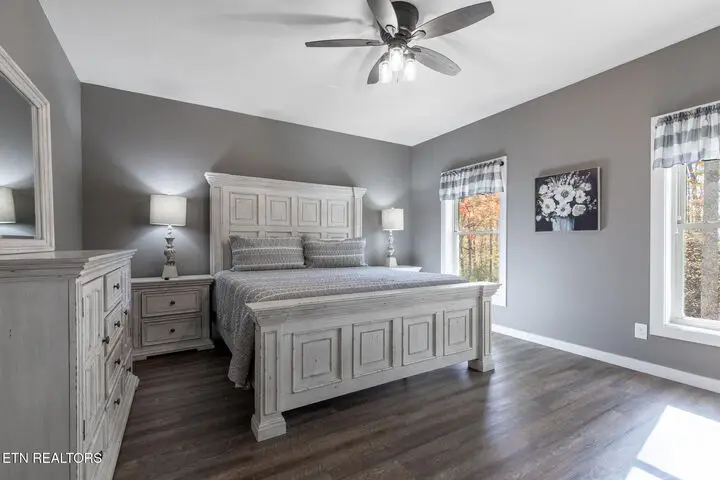 OFFERING FREE APPRAISAL OR DISCOUNTED RATE WITH PREFERRED LENDER Welcome to Summit Trails Sanctuary — A Luxury Mountain Retreat in The Summit on Bluff Mountain Tucked away in the majestic Great Smoky Mountains of East Tennessee, Summit Trails Sanctuary offers the perfect blend of luxury, comfort, and seclusion. Located in the highly desirable The Summit on Bluff Mountain subdivision, this newer-construction home is surrounded by mature trees and natural beauty, offering incredible privacy and a peaceful wooded setting — complete with a creek that touches the property. Step inside and you're welcomed by a gorgeous see-thru stone fireplace that elegantly separates the formal dining room from the cozy living area. The open-concept design connects the chef's kitchen, living room, and eat-in kitchen area, allowing for effortless entertaining and everyday comfort. The home features three private suites, including two true master bedrooms, each with its own bathroom and walk-in closet. A spacious bonus room, currently set up as a game room with a pool table and arcade machines, adds extra versatility and fun. Step outside to the covered back porch and take in the sounds of the creek and rustling trees while enjoying your morning coffee or evening drink. The porch includes a hot tub and lounge seating, while the lower patio offers a fire pit, picnic table, and grill, all inside a fully fenced backyard—ideal for private outdoor gatherings. This property is completely TURN KEY—sold fully furnished and ready for immediate use as a short-term rental, second home, or full-time residence. Whether you're looking for a peaceful retreat or an opportunity to generate rental income, this home is ready for its next chapter. With 2,712 sq ft of heated/cooled space and 3,570 total sq ft including the garage, porches, and deck—this private mountain escape offers beauty, flexibility, and charm in one of East Tennessee's most scenic locations. Privacy. Nature. Possibility. Schedule your showing at Summit Trails Sanctuary today!