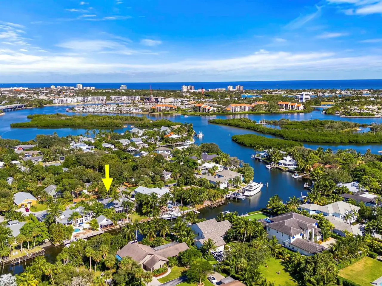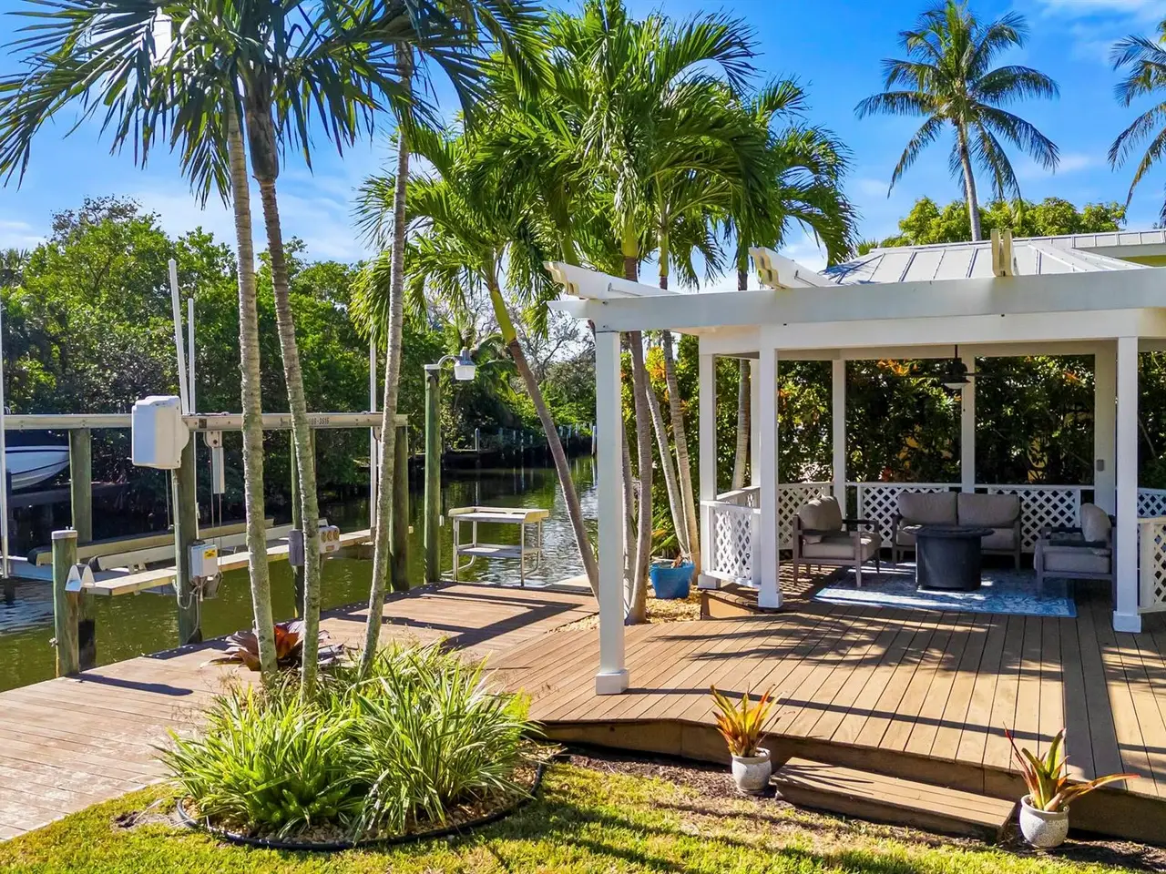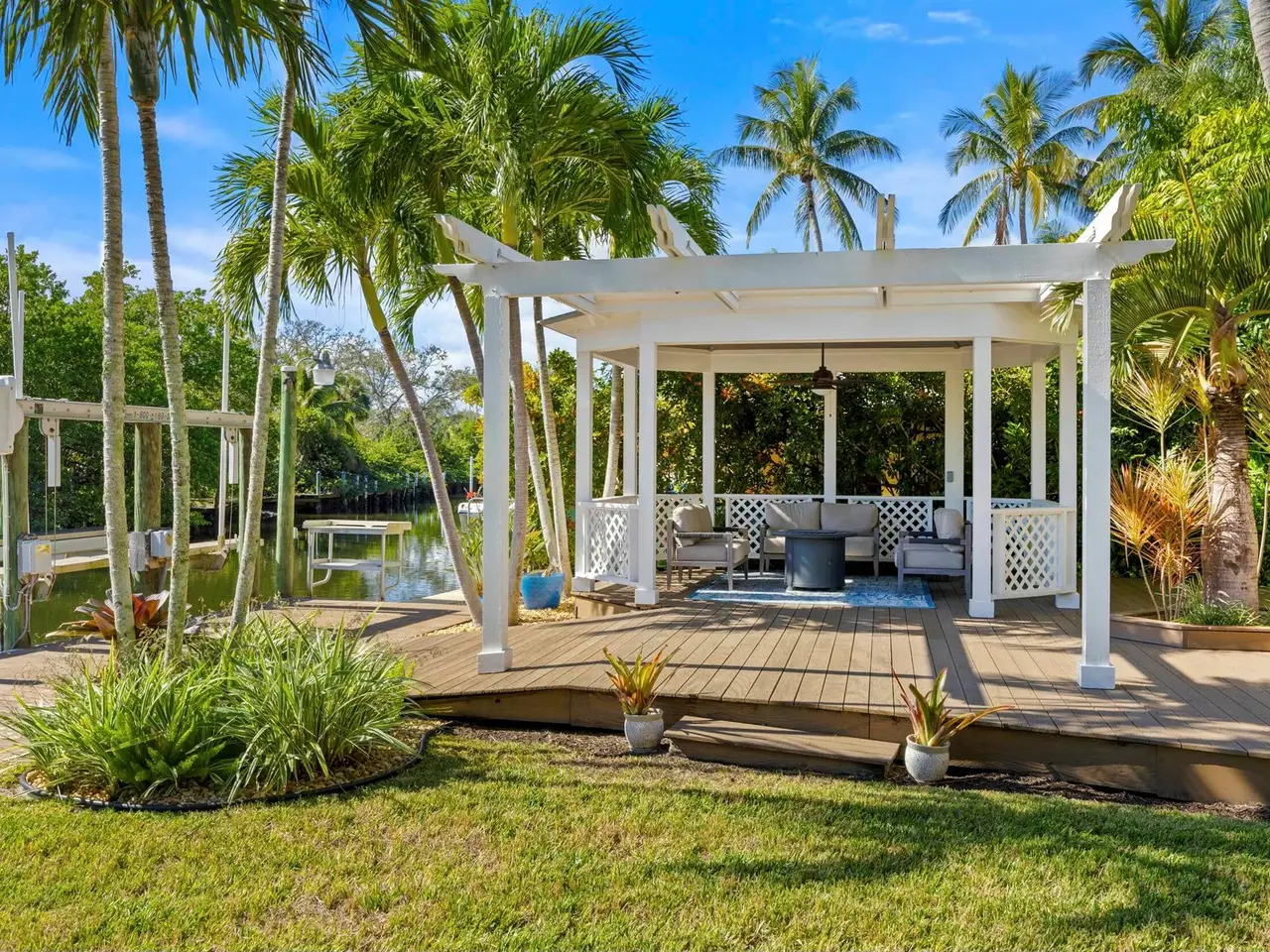 Stunning Key West-style waterfront home in Jupiter, Florida - A Boater's Dream! This beautifully remodeled five bedroom, 3.5 bath waterfront home, located in the heart of Jupiter, Florida, offers the ultimate in coastal living. Set on 78 feet of prime waterfront property on, a deep water canal the home features a dock with electric and water, plus a 13,500-pound boat lift - perfect for boating enthusiasts. With no fixed bridges, you'll have quick and easy access to the Intracoastal Waterway and just minutes from the Jupiter Inlet to the Atlantic Ocean. Original house was gutted to exterior walls and rebuilt with a second story in 1995 under Dade County Codes, then completely remodeled/updated in 2022 inside. The home blends modern luxury with classic Key West charm. Inside, you'll find wide-plank wood flooring adding a warm and inviting feel to every room. The heart of the home is its stunning gourmet kitchen which boasts Signature Kitchen Suite appliances, including refrigerator and freezer columns, dual-fuel pro gas range with griddle, along with custom cabinetry and quartz waterfall countertops that make a bold statement. A bar prep sink adds convenience, making the space perfect for both everyday living and entertaining. In addition to the chef's kitchen, there's a separate bar area featuring a beverage refrigerator and wine cooler, offering the perfect spot for mixing cocktails or storing your favorite wines. The home is equipped with impact glass and a metal roof. Other upgrades include two new A/C units (one installed in 2022, the other in 2023), a tankless on demand gas hot water heater (installed in 2023), and a 250-gallon propane tank for added efficiency. For added comfort and convenience, the home also features motorized window blinds, which allow for effortless control of light and privacy at the touch of a button. With five spacious bedrooms, 3.5 baths, and a layout designed for easy flow between indoor and outdoor spaces, this home is perfect for both relaxing and entertaining. The dock, which stretches along almost the entirety of the back of the property, offers ample space for docking or simply enjoying the waterfront. The home also features a home security system for added safety. Furniture is negotiable. This exceptional waterfront property is located in one of Florida's most desirable communities.