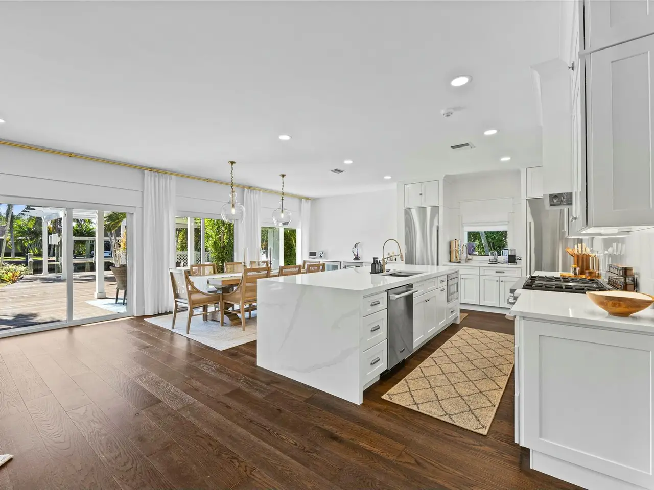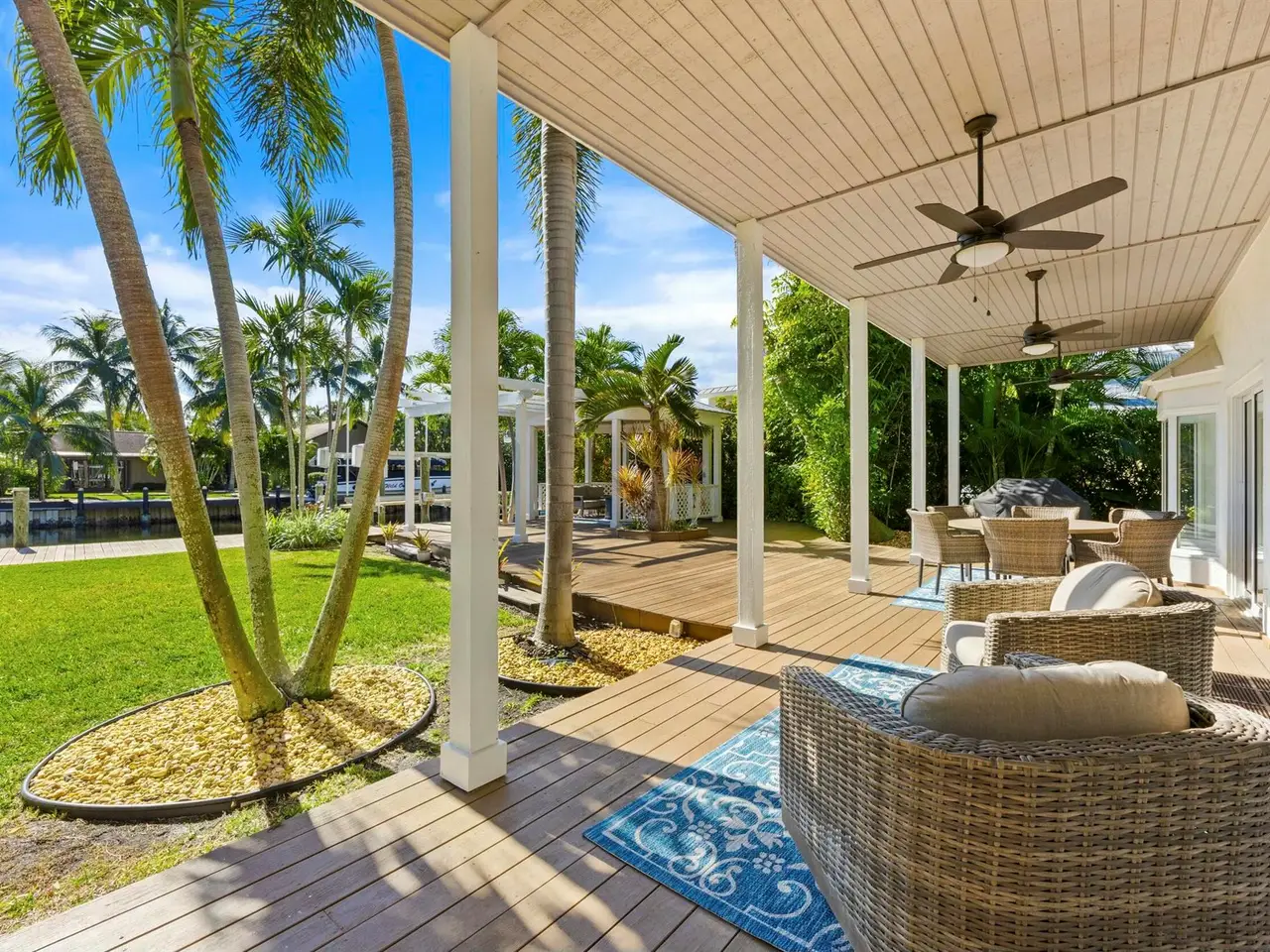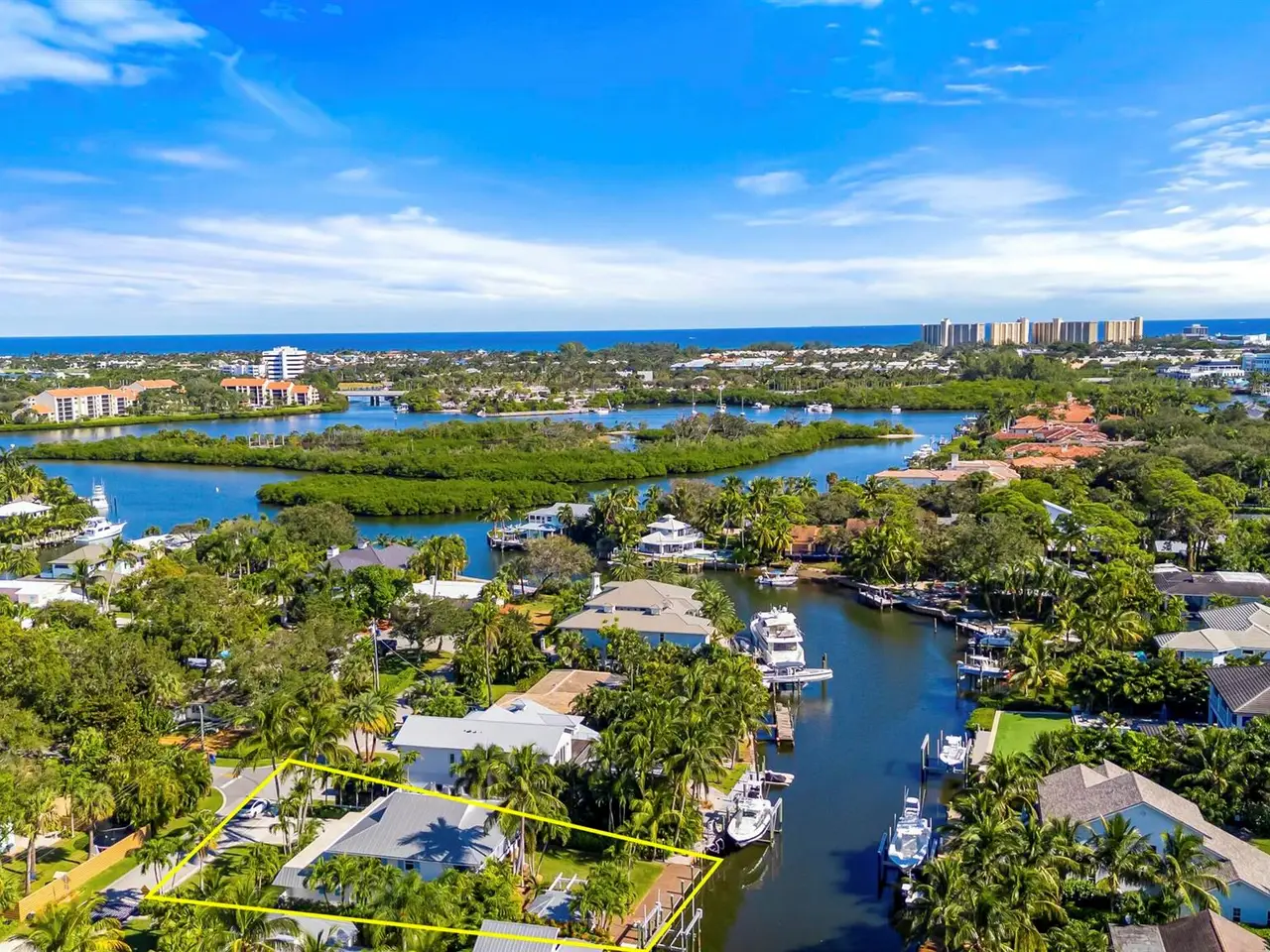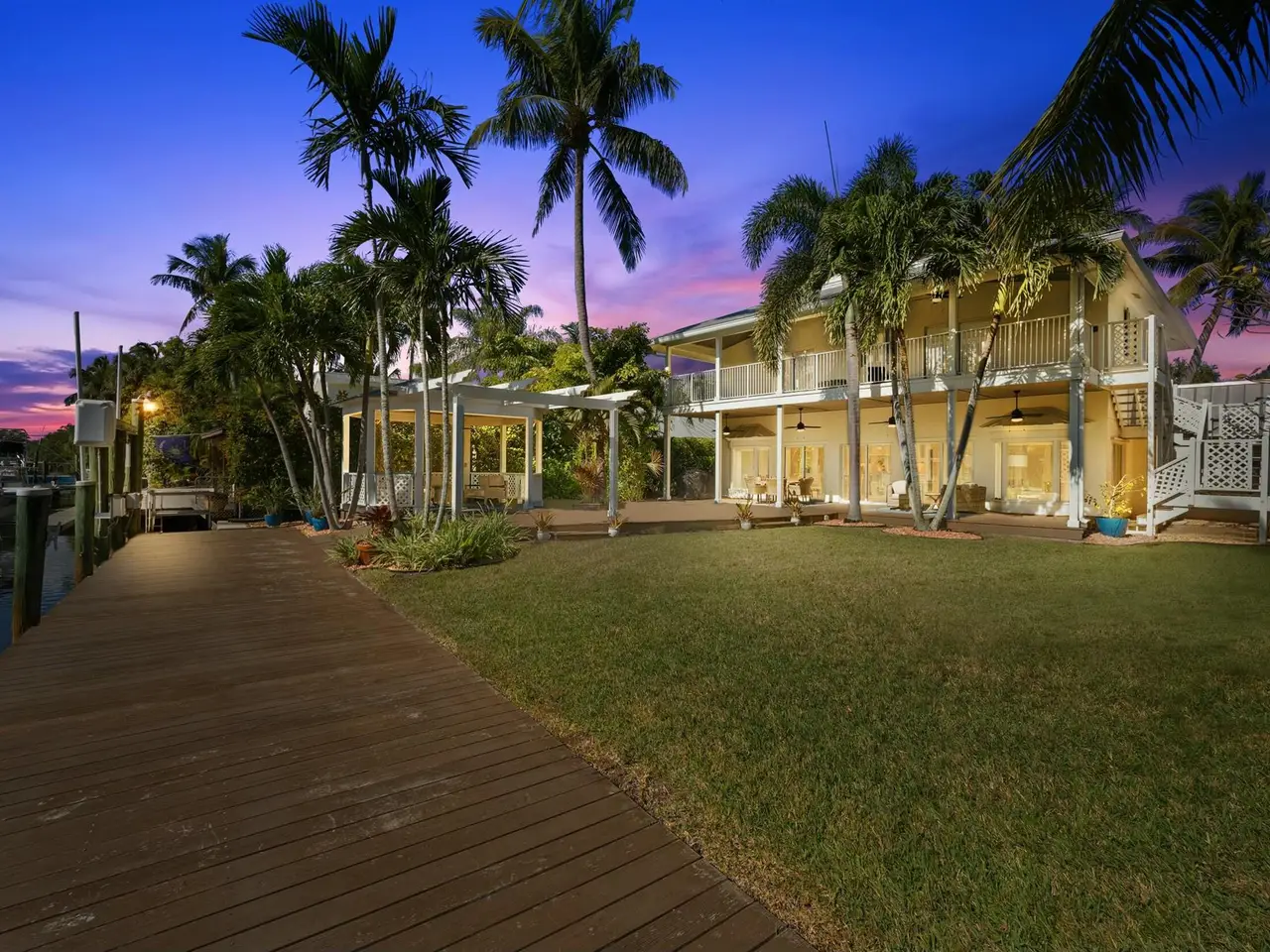 Stunning Key West-style waterfront home in Jupiter, Florida - A Boater's Dream! This beautifully remodeled five bedroom, 3.5 bath waterfront home, located in the heart of Jupiter, Florida, offers the ultimate in coastal living. Set on 78 feet of prime waterfront property on, a deep water canal the home features a dock with electric and water, plus a 13,500-pound boat lift - perfect for boating enthusiasts. With no fixed bridges, you'll have quick and easy access to the Intracoastal Waterway and just minutes from the Jupiter Inlet to the Atlantic Ocean. Original house was gutted to exterior walls and rebuilt with a second story in 1995 under Dade County Codes, then completely remodeled/updated in 2022 inside. The home blends modern luxury with classic Key West charm. Inside, you'll find wide-plank wood flooring adding a warm and inviting feel to every room. The heart of the home is its stunning gourmet kitchen which boasts Signature Kitchen Suite appliances, including refrigerator and freezer columns, dual-fuel pro gas range with griddle, along with custom cabinetry and quartz waterfall countertops that make a bold statement. A bar prep sink adds convenience, making the space perfect for both everyday living and entertaining. In addition to the chef's kitchen, there's a separate bar area featuring a beverage refrigerator and wine cooler, offering the perfect spot for mixing cocktails or storing your favorite wines. The home is equipped with impact glass and a metal roof. Other upgrades include two new A/C units (one installed in 2022, the other in 2023), a tankless on demand gas hot water heater (installed in 2023), and a 250-gallon propane tank for added efficiency. For added comfort and convenience, the home also features motorized window blinds, which allow for effortless control of light and privacy at the touch of a button. With five spacious bedrooms, 3.5 baths, and a layout designed for easy flow between indoor and outdoor spaces, this home is perfect for both relaxing and entertaining. The dock, which stretches along almost the entirety of the back of the property, offers ample space for docking or simply enjoying the waterfront. The home also features a home security system for added safety. Furniture is negotiable. This exceptional waterfront property is located in one of Florida's most desirable communities.