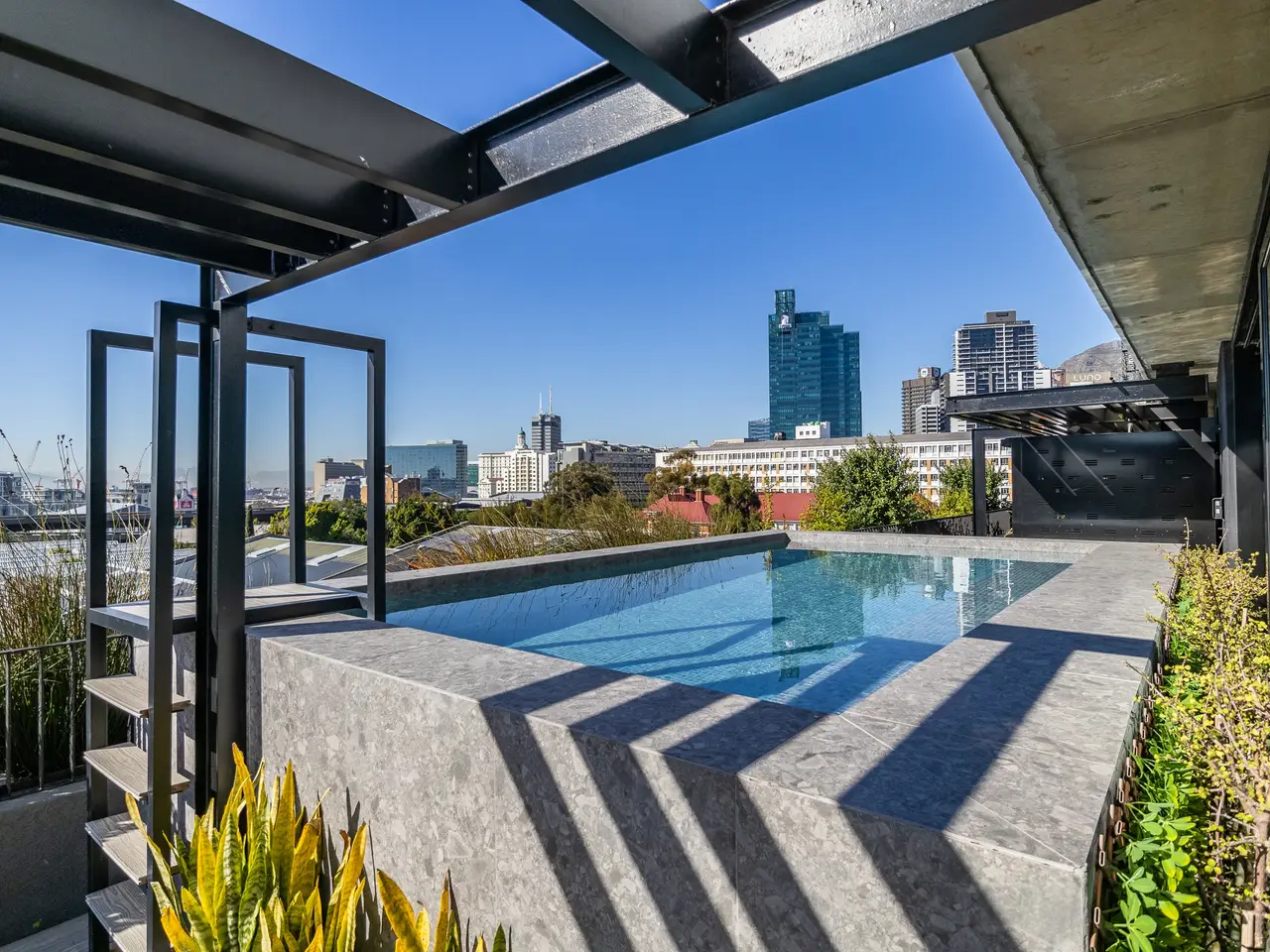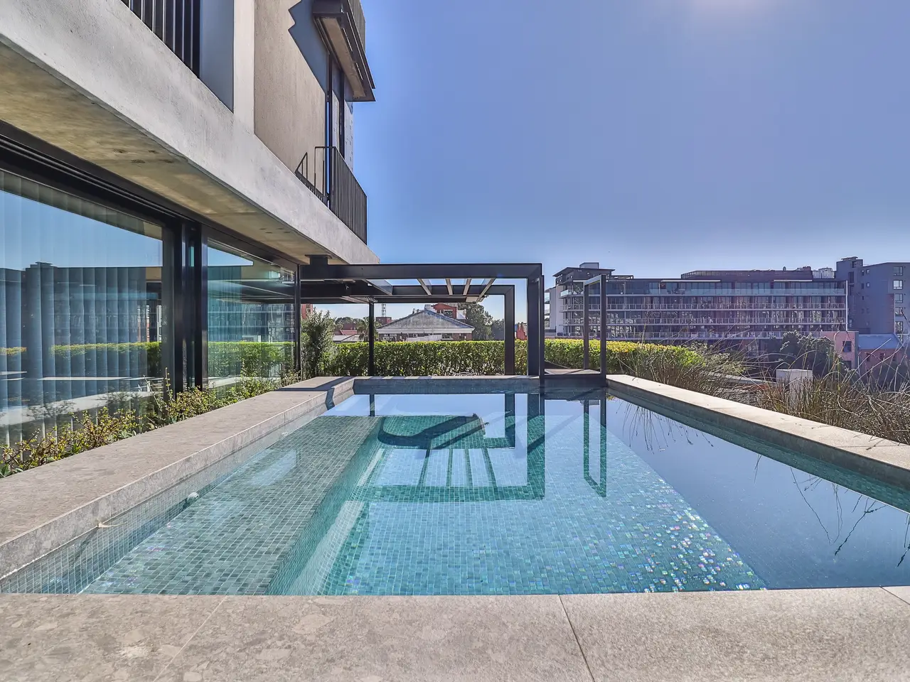 The architects of this beautiful building left nothing to be desired. Built by well-respected construction company R-N Masters Builders Cape, their approach to every detail made this building the center of attraction in the greater De Waterkant, and you just can’t pass without looking at this beautiful apartment. Very rare to find apartment with its own pool, sauna, outdoor shower and possible outdoor gym. As there are approved plans to build outdoor gym. Features include: • Three beds, 3.5 baths • Open plan living with combination of kitchen, dining room and lounge in one • Total Square meter internal and external 417. • All outside windows and doors are double glazed • Private spa type pool & outside sauna • Marble flooring in kitchen and living areas • Scullery/laundry • Oggie wooden panelling on ceiling in living area • Multiple outside sitting areas • Outdoor bar and barbecue area • Customised wooden cabinetry throughout • All bedrooms have own large patio setups • Main bedroom has large walk-in style wardrobe • American shutters • Outside shower • External electric awnings • Sliding shutters • 270-degree views and full wrap-around balcony • Short term rentals allowed • 24-hour security with concierge • Ducted aircon • Two reserved parking bays, and two unreserved parking bays, and with huge storeroom • This area is not affected by load shedding • Five minutes’ walk from the Waterfront, and a number of popular eating places downstairs. • Approved plans for 18 square meter gym/sunroom