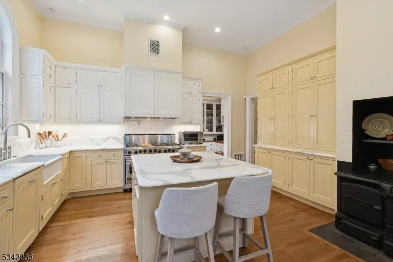 The Holt Mansion, built in 1855 by William Kitchell, a professor at Newark Institute, is a stunning historic home with a rich past. The house boasts a grand foyer, 10 fireplaces, beautiful hardwood floors, and extensive detailing throughout. With high ceilings, built-ins, and arched doorways, the home exudes elegance and charm. The 6-bedroom, 5.2-bathroom residence sits on 2.09 landscaped acres with a 3-car detached garage. The renovated gourmet kitchen features top-of-the-line appliances such as Viking, Sub-Zero, and Miele, along with a center island and eat-in area. 3 covered porches at the back, front and side of the house are perfect for entertaining or enjoying a peaceful moment outdoors. The primary bedroom includes his and her walk-in closets, a sitting area, and a luxurious bath. All bathrooms in the home have been updated, and the property has been meticulously maintained over the years. Located near Morristown and Madison, this home offers a perfect blend of historic charm and modern amenities, with a rich history including a rental by Teddy Roosevelt.