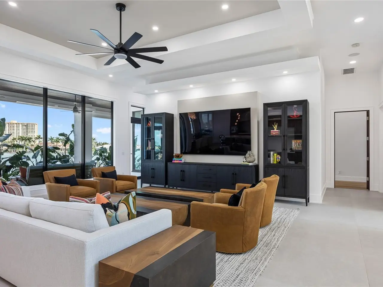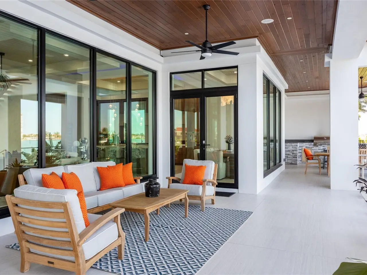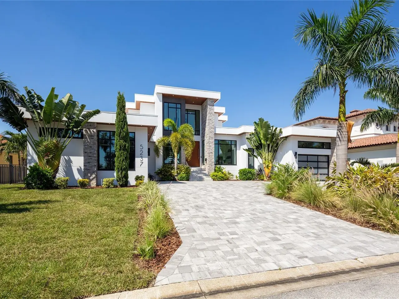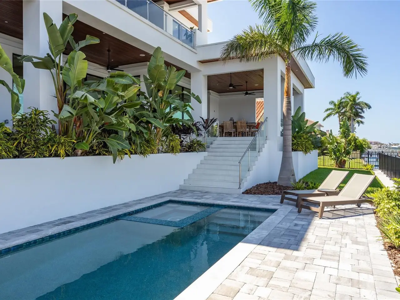 Introducing a Contemporary Waterfront Masterpiece in Tampa Bay. Striking modern architecture and clean, minimalist design come together in this extraordinary custom-built waterfront residence. Completed in 2023, this home makes a bold statement with its commanding curb appeal, soaring 28-foot entry, and dramatic 23-foot foyer. Brilliant natural light, soaring ceilings, and meticulous craftsmanship set the stage for a refined coastal lifestyle. The open-concept floor plan highlights a chef's dream kitchen with custom cabinetry, pearl-white quartz island, Thermador appliances, gas cooking, full-height wine chiller, and built-in espresso machine, complemented by a discreet butler's pantry. Expansive living and dining areas open seamlessly to the water, while the executive-style office and designer guest bath add both elegance and function. The owner's suite is a private sanctuary with breathtaking views, balcony access, dual walk-in closets, and a spa-inspired bath featuring custom vanities, a Jacuzzi soaking tub, and a glass-enclosed multi-head rain shower. Upstairs, two additional en suite bedrooms and a large media room extend to a 330-square-foot covered terrace with commanding views of the bay. Outdoor living is elevated with over 1,200 square feet of covered waterfront terraces, a resort-style pool and spa, outdoor kitchen, and lush landscaping. Waterfront amenities include an updated seawall, large composite dock, kayak/paddleboard launch, boat lift, and mooring capacity for a sizable yacht. Located just ten minutes from downtown St. Petersburg and six minutes from the Gulf beaches, this residence offers an extraordinary blend of serenity and convenience. Nestled within the highly coveted, gated enclave of Bayway Isles, the community is distinguished by its 24/7 guarded security, pristine surroundings, and enduring sense of privacy. This estate is not simply a residence but a testament to vision, artistry, and uncompromising craftsmanship. More than a home - it's a statement of modern luxury and life without compromise. Arrange your private showing today and experience the pinnacle of waterfront living.