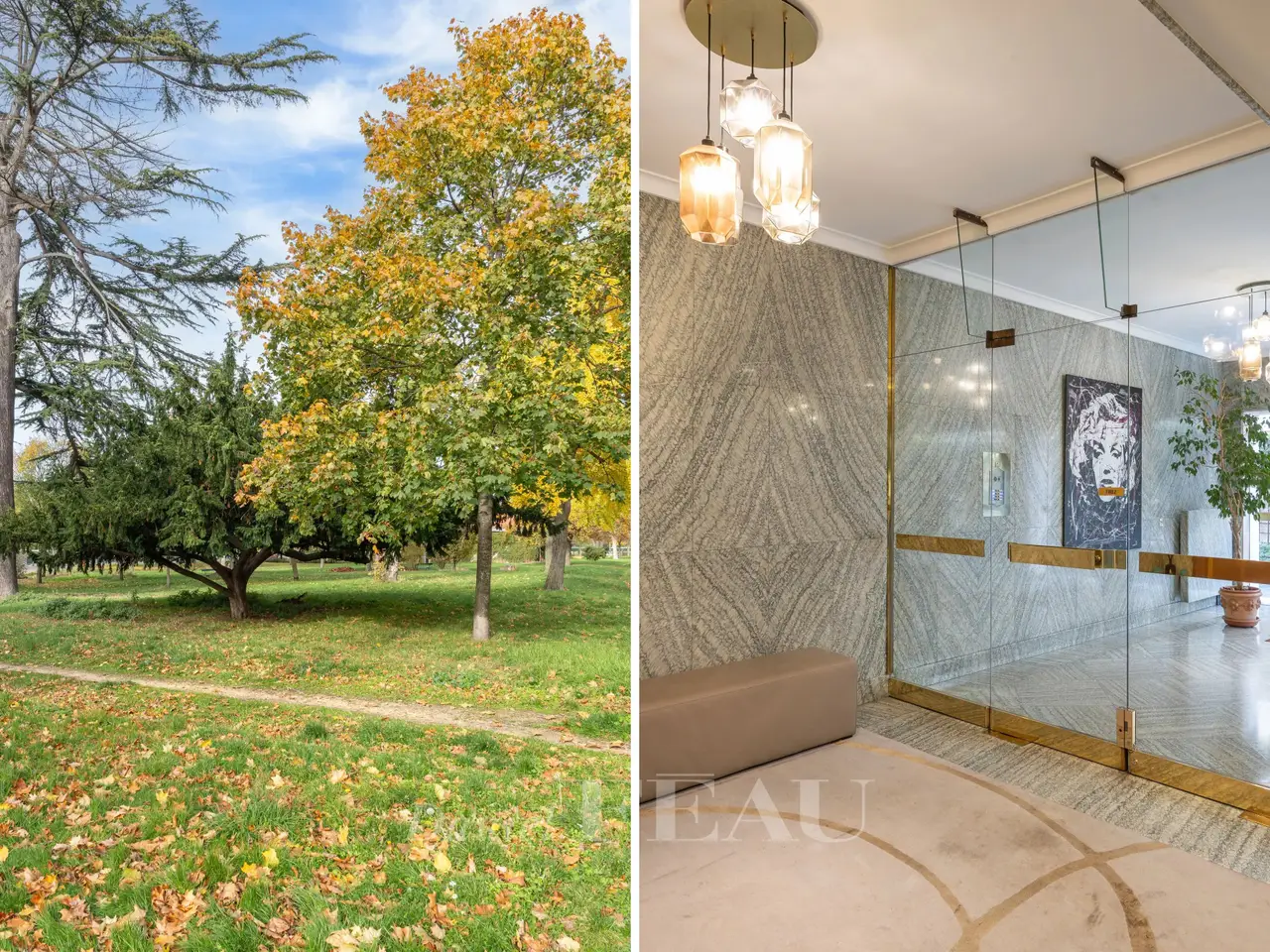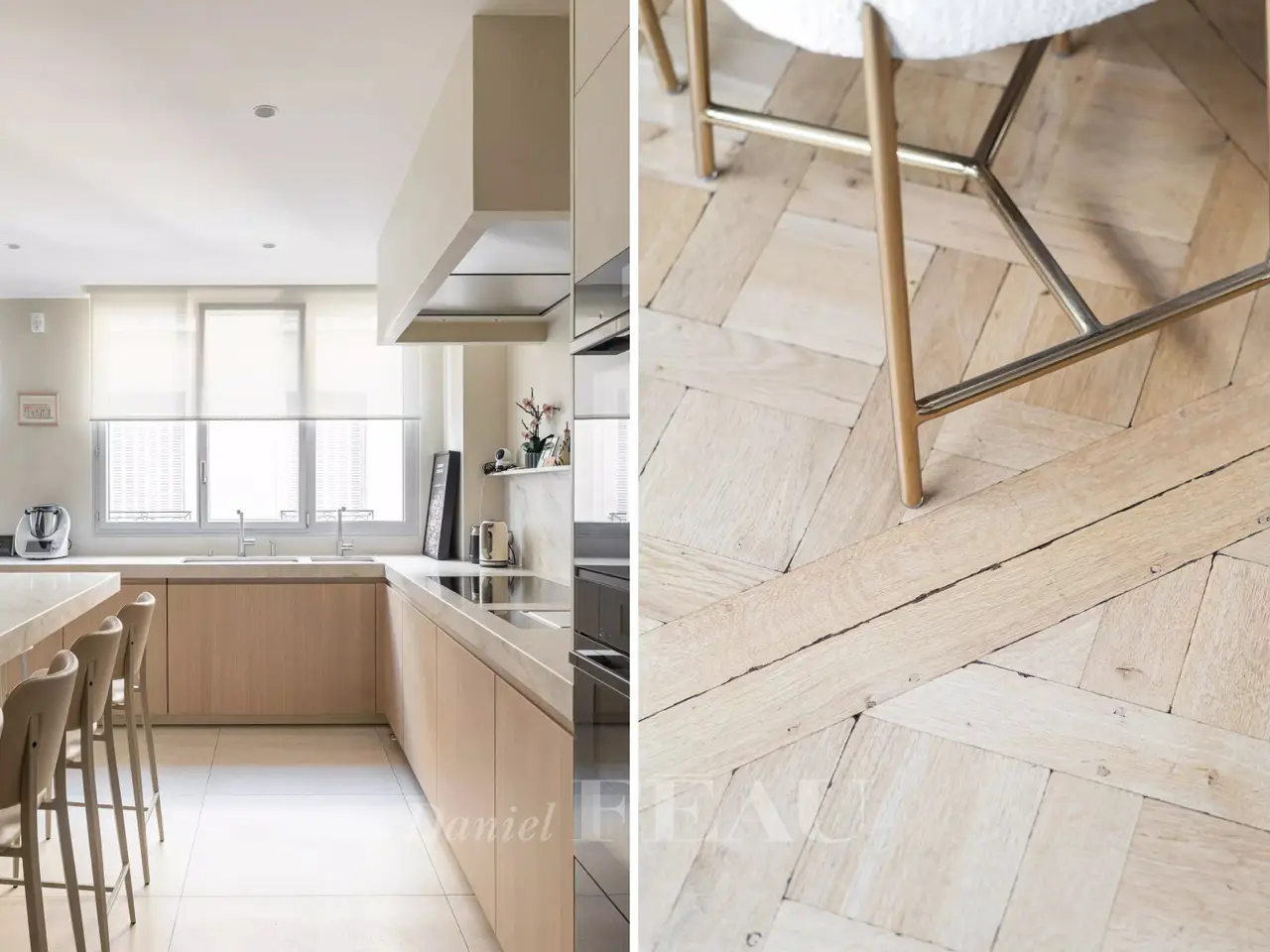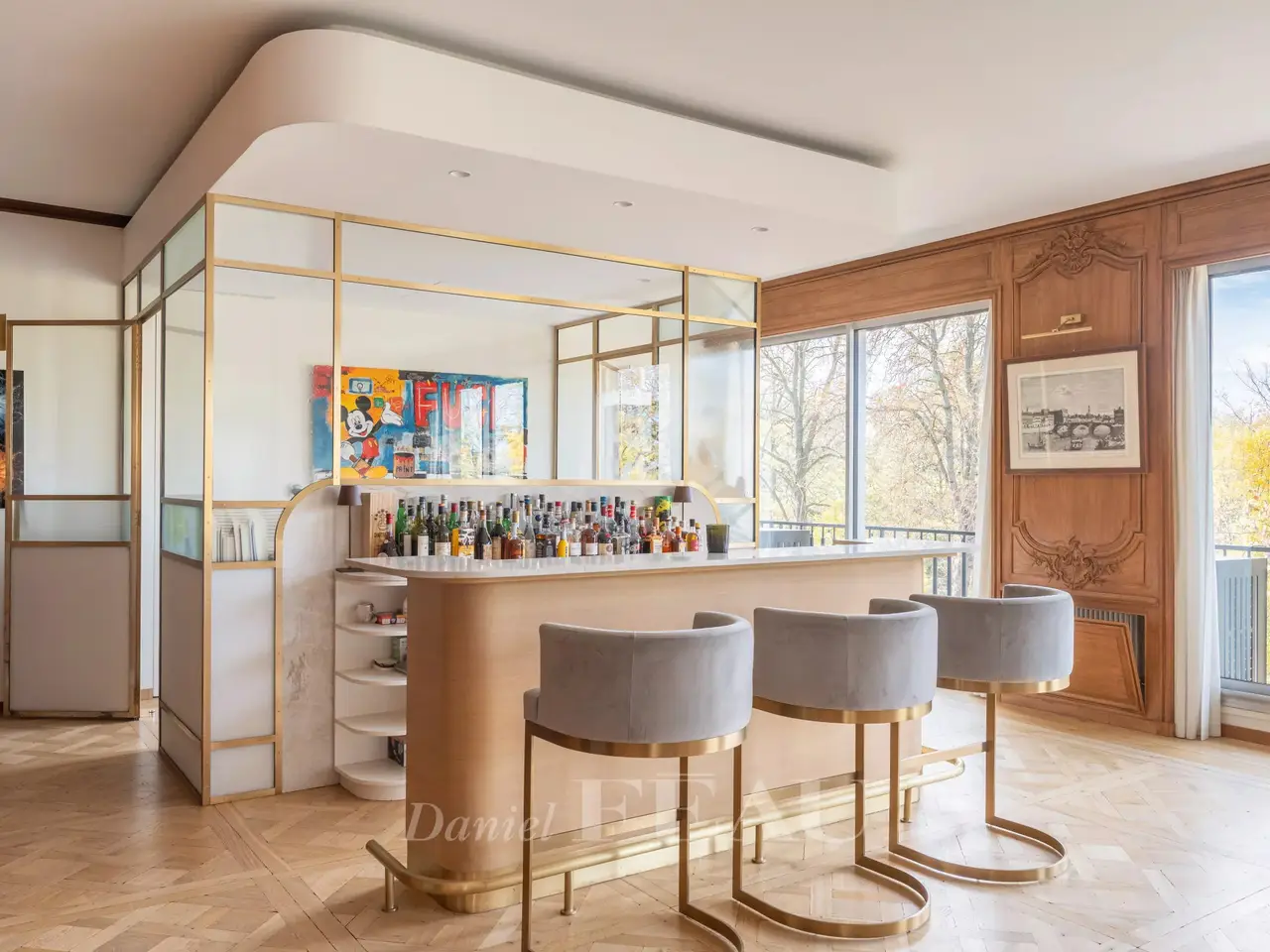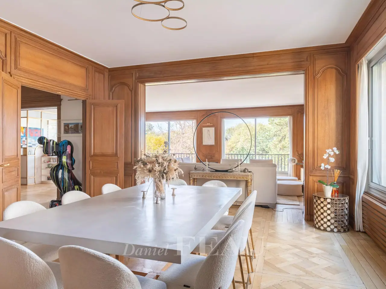This sumptuous 326 sqm apartment on the 2nd floor of a luxurious and recently renovated mid 20th century freestone building with elegant common areas has been renovated in a contemporary style while preserving original panelling. Particularly bright and enjoying an open view of the Bois de Boulogne, it includes a spacious living/reception room with a dining room and a fully equipped kitchen, four spacious bedrooms each with a bathroom and bespoke storage space, a master suite enjoying a view of the woods, two bathrooms and a spacious dressing room. With two basement parking spaces, a maid’s bedroom and a cellar.