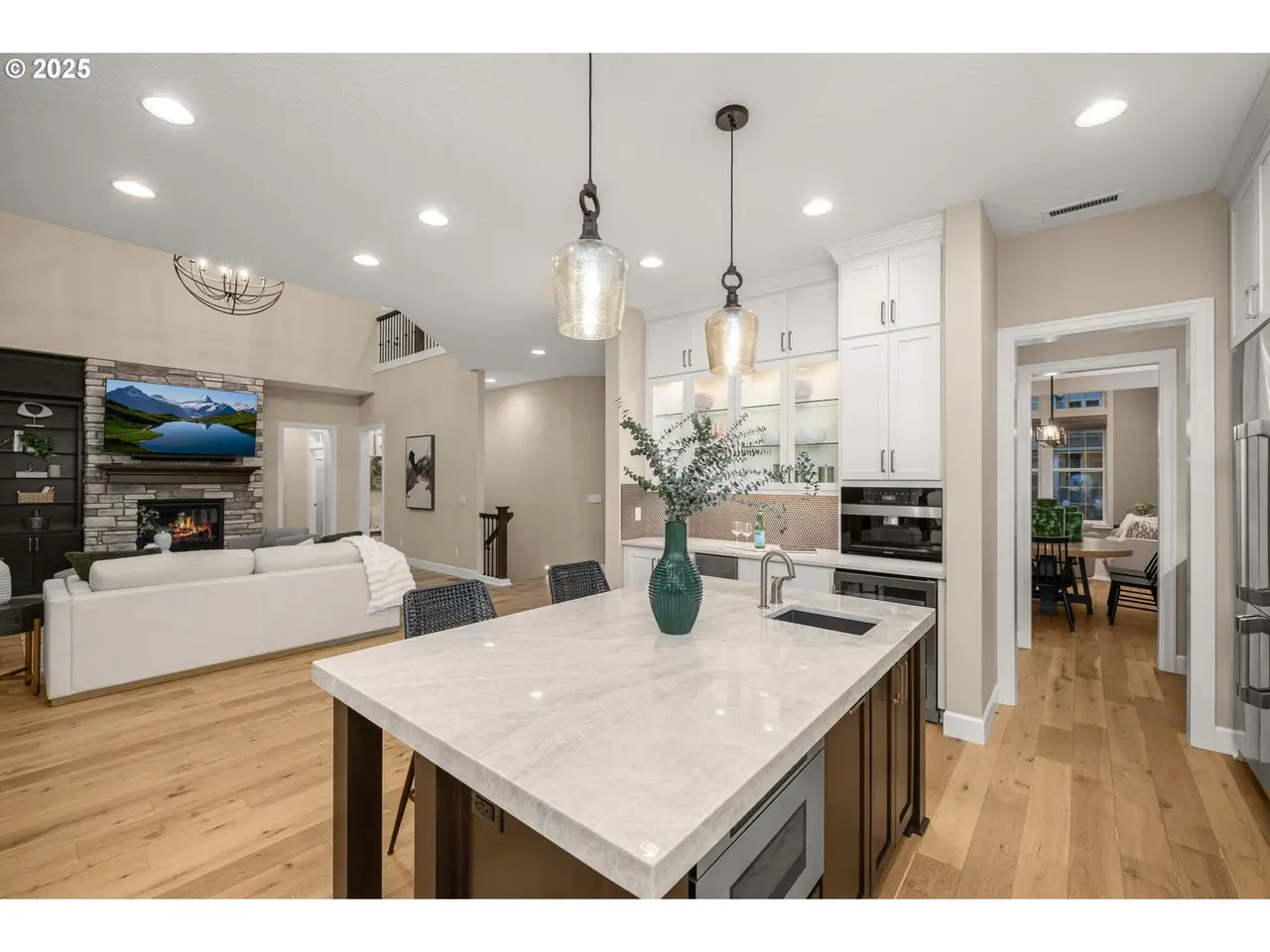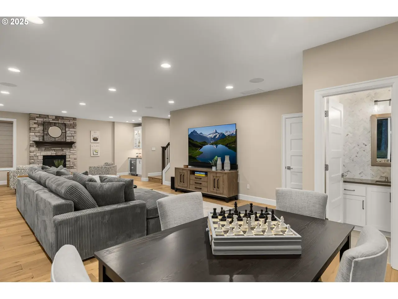 GREENSPACE VIEWS & HUGE TURF BACKYARD! Rare opportunity to own a quality Noyes built home on oversized lot w/ a 3-Car Wide Garage! Privately positioned on a quiet street in NW Bethany/Bonny Slope neighborhoods with TOP RATED SCHOOLS. This stunning 6-bedroom home sits along protected greenspace offering gorgeous views and privacy and has over $220,000 of builder options included. Designed and built by award-winning local builder Peter Noyes as his personal residence, every inch of this 4,342 sq. ft. home reflects timeless craftsmanship, thoughtful design, and high-performance living. The open-concept main level is anchored by a chef's kitchen with Dacor appliances, a Miele coffee maker, dual wine fridges, and a massive prep island--perfect for entertaining. The two-story great room features floor-to-ceiling windows, built-ins, and a cozy fireplace that invites you to settle in and stay awhile. Downstairs, the expansive family room offers the ultimate hangout space, complete with a full bar, billiards area, ice maker, and built-in surround sound for movie nights or game days.The primary suite is a true retreat, featuring a spa-like bath with a freestanding soaking tub, heated floors, and peaceful views of the trees beyond. Additional bedrooms offer flexibility for guests, home offices, or multigenerational living. Step outside to a covered outdoor living area with skylights, built-in heaters, and a gas BBQ hookup. The deck spans the entire width of the home, offering plenty of room to dine, lounge, and entertain while taking in the treetop views. Below, the huge, low-maintenance yard is surrounded by artificial turf and extensive landscape lighting--perfect for evenings under the stars .Tech-forward and thoughtfully built, this home includes Control4 automation, a commercial-grade Wi-Fi system, whole-home water softener, built-in central vac. BONUS... hot tub, TVs, window coverings, appliances and garage storage ALL STAY! This home is 100% Turn-Key Ready!