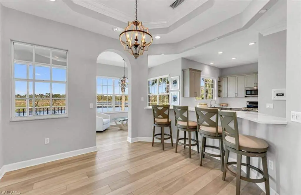 Recently remodeled 2,600 sf. 2nd floor residence with elevator & 2 car garage, 3 spacious bedrooms, den/media room & 3 full baths. The remodeled kitchen has new counter-top, stainless appliances & breakfast bar opening to the main living area. The open floor plan with high ceilings & floor to ceiling glass provides unobstructed views of one of Bonita Bay's original pristine natural lake preserves & 12th green of the Bay Island golf course - it is the perfect home for nature lovers & bird watchers. The primary suite, also with preserve & golf views, has a generous bathroom complete with dual vanities & an oversized walk-in shower. There is new flooring throughout. The split-bedroom layout provides privacy for your guests. New sunshades, a/c's, and water heater. Egret's Landing offers a tranquil enclave of 24 carriage homes with neighborhood heated pool, spa & cabana. The Bonita Bay community has 5 golf courses, 18 court tennis center, 18,000 sf. fitness ctr, 8,000 s.f. Lifestyle spa & salon, full-service marina, Gulf front beach park, 5 restaurants, 10 pickle ball courts, crochet, bocce ball, canoeing, life enrichment center & 3 parks.
