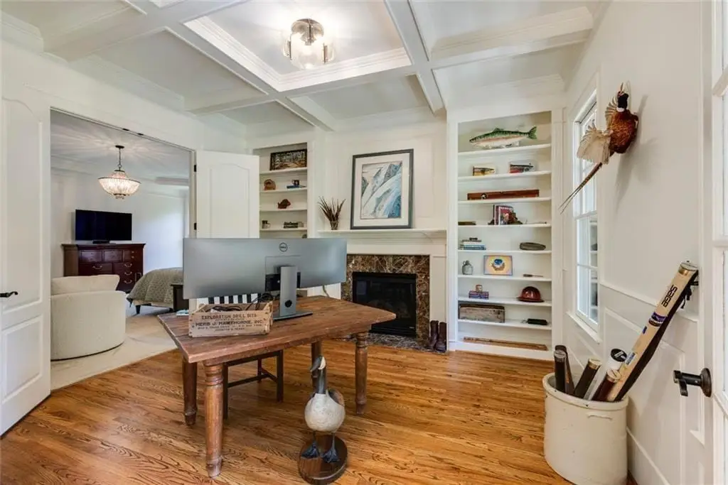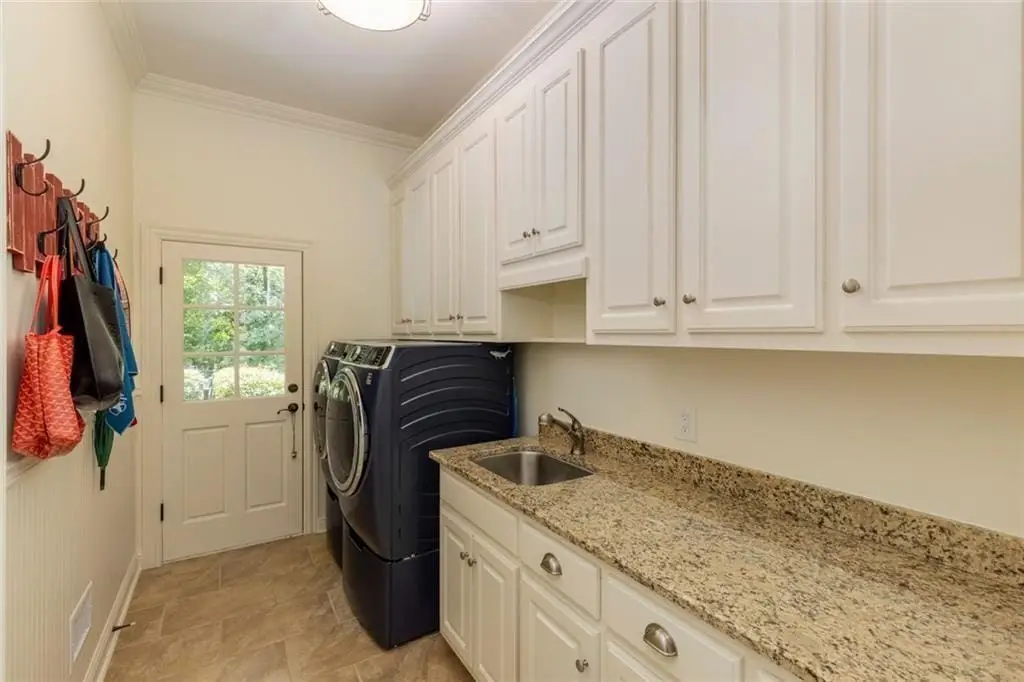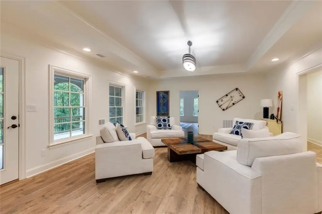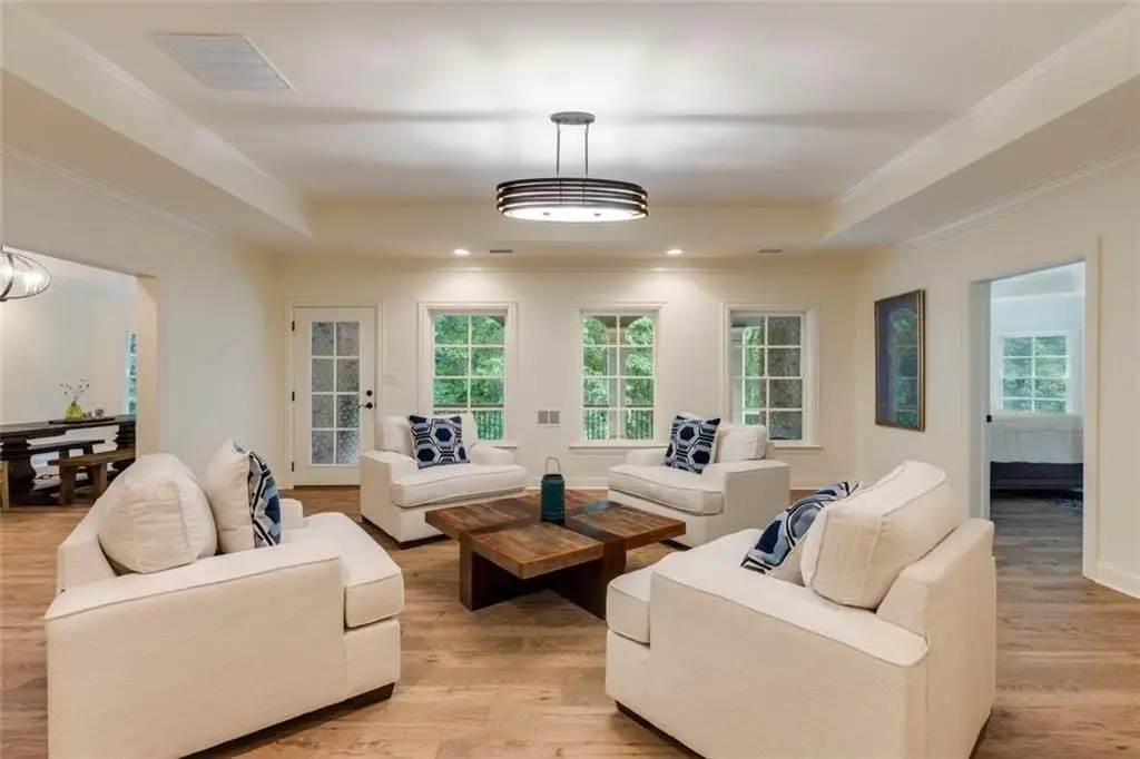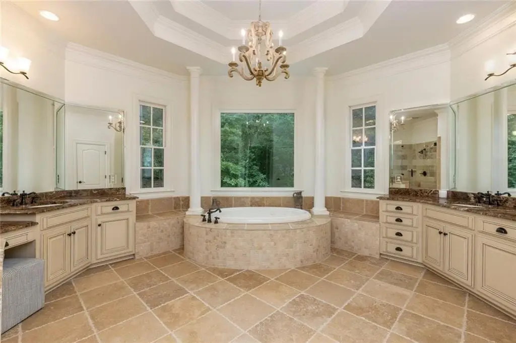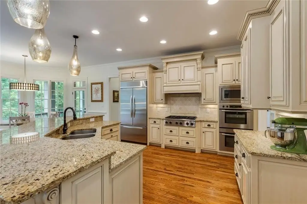Absolutely stunning and impeccably maintained, this exquisite residence is nestled on a beautifully landscaped 1.56-acre private cul-de-sac lot in the highly sought-after swim and tennis community of Litchfield Hundred. Set amidst peaceful wooded surroundings, this exceptional home offers a perfect blend of timeless elegance, gracious living, and modern comfort - all in a premier Roswell location. A charming front porch and a grand two-story entry foyer set the tone for the sophisticated interiors, where gleaming hardwood floors, soaring 10+ ceilings, arched doorways, and detailed moldings define each spacious room. The impressive layout includes a banquet-sized dining room with tray ceiling and Butlers Pantry, a formal living room or study with fireplace and coffered ceiling, and a dramatic fireside family room with custom built-ins, coffered ceiling, and French doors that open to a serene screened porch with its own stone fireplace - perfect for year-round entertaining. At the heart of the home, the beautifully appointed kitchen is a true showstopper - featuring painted cabinetry, granite countertops with tile backsplash, a large center island with breakfast bar, stainless steel appliances including a double oven and gas cooktop, and a sunlit breakfast room. The kitchen seamlessly flows into the family room with its tongue-and-groove vaulted and beamed ceiling and striking floor-to-ceiling stone fireplace. The luxurious main-level owners suite offers a peaceful retreat with a deep tray ceiling, sitting area, dual walk-in closets, and a spa-inspired bath complete with double vanities, a jetted tub, and a glass-enclosed shower. Upstairs, four spacious ensuite bedrooms offer comfort and privacy for family and guests, each with generous closets and beautifully appointed baths. A large bonus room provides a flexible space perfect for a media room, playroom, or teen hangout, while a dedicated office/study area is ideal for working or learning from home. The upper level is thoughtfully designed to meet the needs of modern living, with room to grow and gather. The daylight terrace level expands the homes living and entertaining options even further, featuring warm and inviting finishes throughout. A fireside living room opens to a full kitchenette and dining area, creating a self-contained living space perfect for long-term guests or multigenerational living. A private bedroom and full bath, along with an expansive additional living area - ideal for a home gym, game room, or studio - offer endless flexibility. French doors provide walk-out access to the backyard terrace and firepit area, surrounded by wooded serenity and lush landscaping. The expansive, private backyard offers ample space for a pool, making it ideal for future outdoor enhancements. With its own private entrance from the driveway and garage, this level functions beautifully as an in-law or guest suite. Additional highlights include a three-car garage, rear staircase, and abundant natural light throughout. Enjoy the incredible neighborhood amenities including clubhouse, swimming pool, tennis courts, pickleball, a scenic lake with fishing dock, playground, gazebo, and easy access to Leita Thompson Park with their beautiful walking trails and Mountain Park Wildlife Sanctuary. This is a rare opportunity to own a truly remarkable home in one of Roswell's most desirable communities - move-in ready, richly detailed, and absolutely unforgettable.