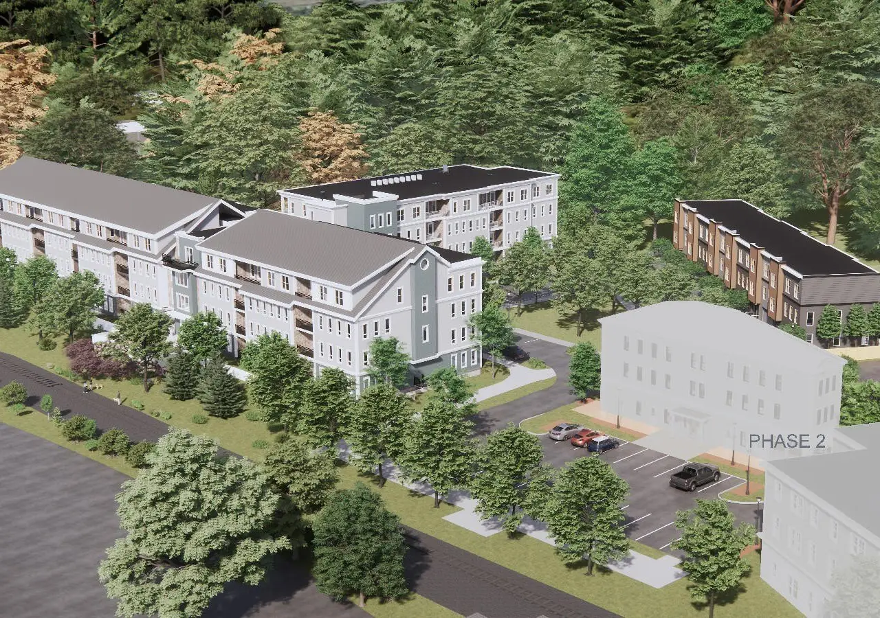 Railroad Square is an upscale housing development for adults 55 plus seeking to enjoy Maine living at its finest. This coastal-inspired collection of luxury properties offers refined living spaces with modern amenities and a serene timeless aesthetic. Situated in one of the most sought after areas in southern Maine, Railroad Square is an extension of Yarmouth's Main Street, providing access to downtown's diverse dining and shopping experiences and miles of trails. Phase One of this thoughtfully designed and fully approved community offers 66 high-quality homes, featuring one, two and three-bedroom units including single-level floor plans, penthouses, and townhomes. Amenities include a state-of-the-art fitness center, restorative yoga studio, an open-air sky lounge, two reservable guest rooms, and a three-season community event space. Secure your new walkable lifestyle today. Expected occupancy in Spring 2027. Interior renderings represent various floor plans.