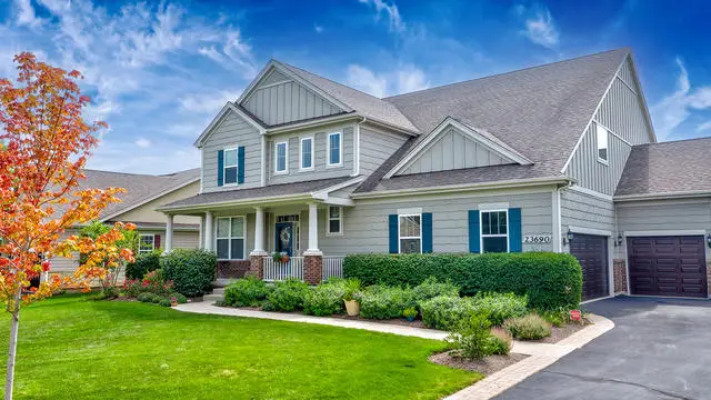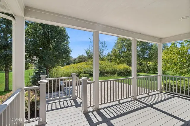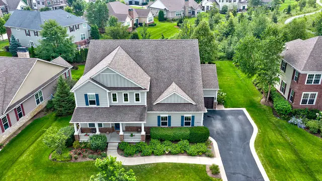 Graciously sitting upon a pristine homesite you will find this beautifully designed and maintained 5 bedroom two story home. The expansive front porch and gleaming hardwood flooring welcomes you as you enter the two story foyer adorned by a separate dining room with a useful butler's pantry. The FABULOUS gourmet kitchen is truly a chef's dream featuring an abundance of 42 inch custom cabinetry, a huge center island breakfast bar with pendant lighting, gleaming granite countertops, stone backsplash, walk in pantry, stainless appliances and a large adjoining eating area. The HEART OF THIS HOME is the spacious yet cozy family room with a fireplace and the everchanging back yard views to take in. A French door leads to the easy maintenance composite deck and brick paver patio. RELAX AND UNWIND in this peaceful and private space surrounded by the colorful landscape. Adjoining the family room you will find a convenient pocket office featuring dual maple and granite desks, the perfect spot for work or homework! THE MAIN LEVEL BEDROOM is ideal for an in law arrangement or guestroom, and boasts a huge walk in closet and powder room! As you ascend to the second level, a large loft space greets you, perfect for a study or sitting area. JUST WAIT UNTIL YOU SEE the primary suite featuring a cozy reading nook with a wall of bookcases and storage, a spa like bathroom with a separate shower and soaking tub, 2 his and her vanities with granite countertops, a private commode, and a TRULY AMAZING walk in closet! The three additional bedrooms are serviced by a Jack and Jill bathroom and feature ample storage space. An additional hall bathroom and laundry room complete this incredible second level space. The mud room boasts cabinetry and a spot for shoes and backpacks as you come in from the 3 car garage which features storage and a side door to the yard. BUT WAIT, THAT IS NOT ALL! The unfinished insulated basement offers an additional 1900 square feet of living space with a roughed in bathroom and is just awaiting your CHIP AND JOANNA DESIGN IDEAS! Whether it's visiting with friendly neighbors on the comfortable front porch or enjoying an evening walk on the neighborhood walking path, you will certainly enjoy the lifestyle Sanctuary Club of Kildeer offers! Let the wonderful homeowner's association take care of your weekly landscaping and winter snow removal, a nice perk to living in this amazing community! Only minutes to Deer Park shopping and Mariano's, and located in the award winning Lake Zurich School District. Hurry and schedule your private viewing of this beautiful home today! Quick closing possible!