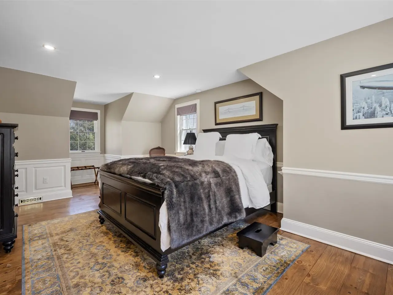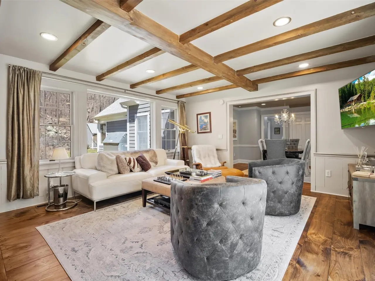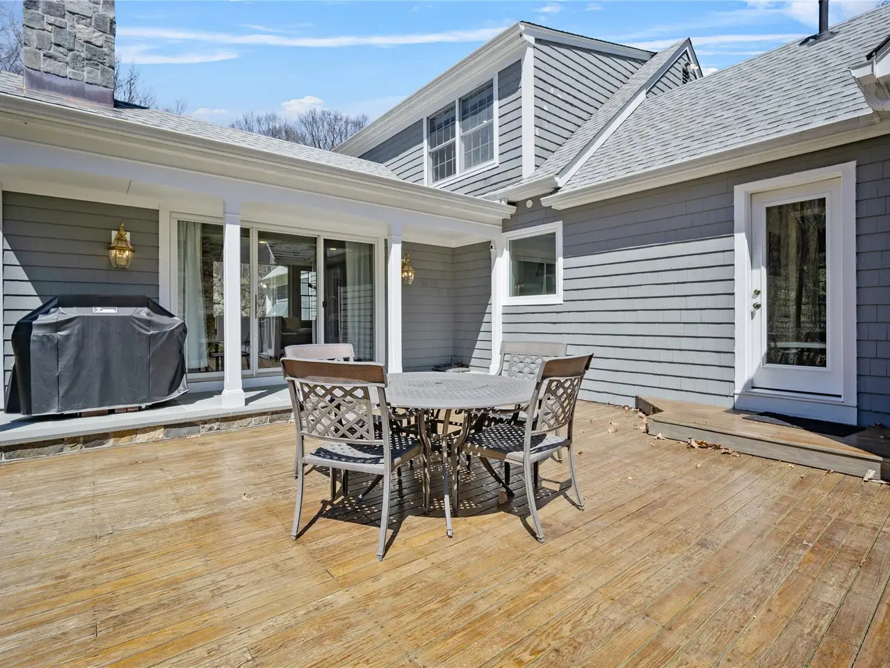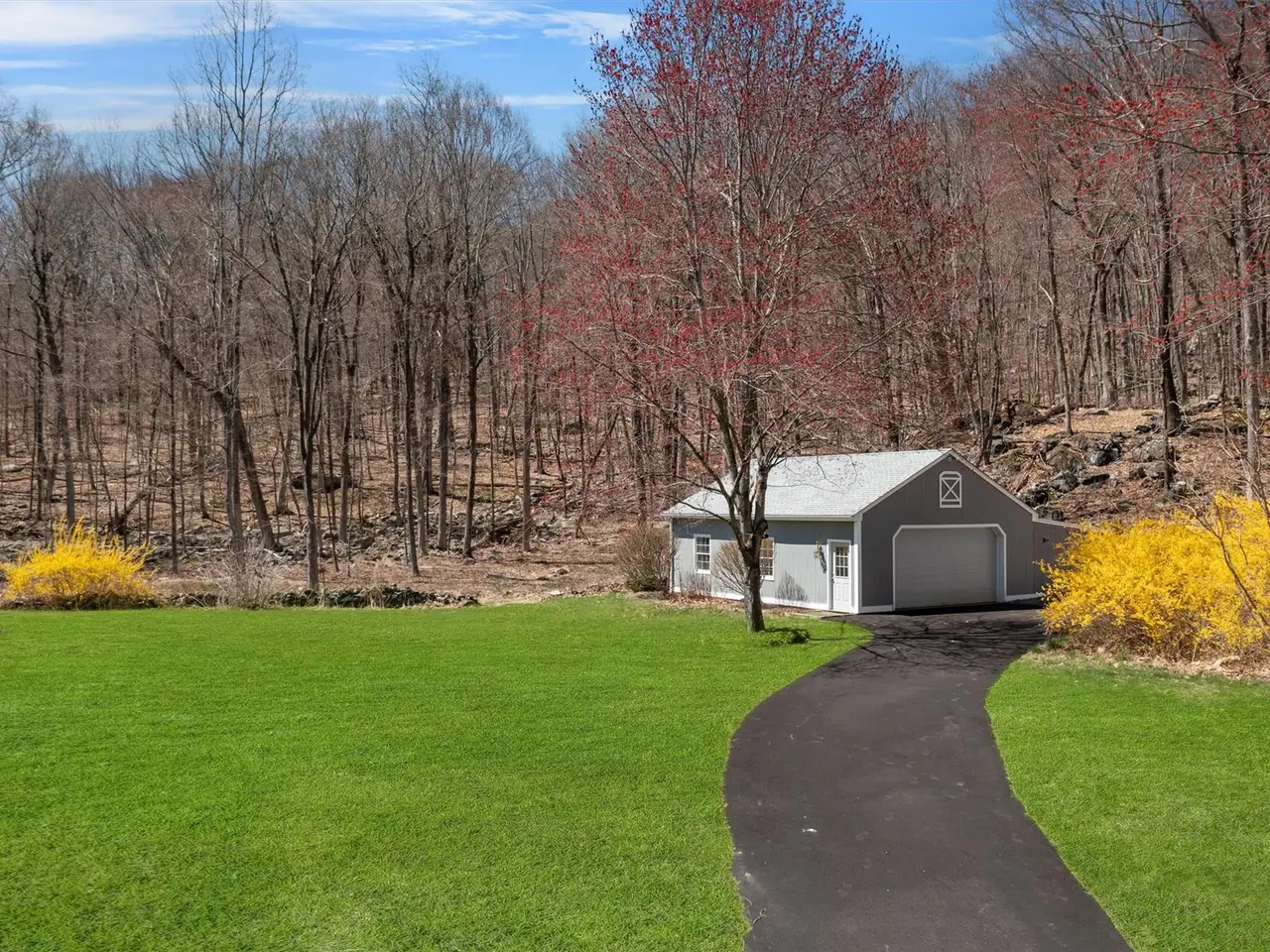 A spacious, posh, and elegant Smart Home loaded with high-tech upgrades. This timeless Cape Cod-style home is customized to the next level and designed for unrestricted living. Privacy and security are paramount with a lighted and gated driveway equipped with a call/code box for entry. The entrance is stately, landscaped with a 90 ft. rock wall, Lutron wireless lighting, exterior perimeter integrated security camera systems, an ADT security system, motorized window shades in the bedrooms, and a smart garage door opener, all on a dedicated Wi-Fi system, programmed to be voice-controlled and accessed by Alexa or your smartphone from anywhere in the world. This quiet estate is located at the end of a private road and is beautifully surrounded by 5+ acres with abundant wildlife, mature landscaping, rock walls, lush lawns, and compelling mountain and trail views. Features include: underground utilities, a whole-house propane generator, an insulated Roth above-ground oil tank, a slate and stone-covered back porch, two remote-controlled gas fireplaces (living room has an over-sized hearth), an air quality monitoring system that constantly checks radon, humidity, VFCs, and temperature levels, and seamless gutters on the roof. The kitchen, powder room, mud room, and primary bathroom all have radiant heated floors. The kitchen has quartz countertops and a breakfast bar, a tiled quartz backsplash, SS appliances, and an abundance of cabinetry. The flooring is just beautiful with either wide plank pine or hardwood. The 1st floor primary bedroom is pure sophistication and massive with a beautiful gas fireplace, en-suite with heated marble floors, new dual Quartzite vanities, a 2-person six-foot walk-in tiled shower with seamless glass doors, jetted tub, heated towel rack, bidet, and walk-in closet. No expense was spared, no detail was overlooked, and no shortcut was taken to update the property completely. A 2nd bedroom (currently the music room) and a library/home office complete the 1st floor. Upstairs: 2 sizeable bedrooms, an updated bathroom, a dressing room, and a built-in wall cabinet unit that is actually a hidden door accessing the huge walk-in attic. A wine cellar customized with wine crate panels, a metal ceiling, and built-in wine racks, a laundry area, utility access, and a partially finished area for more usable space comprise the lower level. The 2-car attached garage has an unfinished walk-up loft that is the entire size of the garage; this would make an epic home office, art studio, apartment, or home gym. The 32ft detached 2-car garage/barn has 10 ft ceilings, an oversized garage door with an automatic opener - could be used to store an RV, and an area for a workshop. The furniture can be included in the sale. The owner has a 2.75 transferable mortgage if the buyer qualifies.