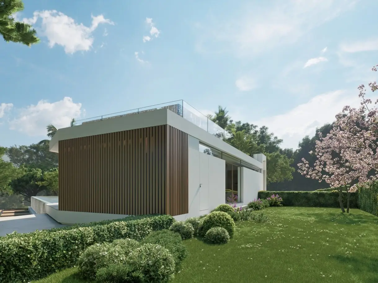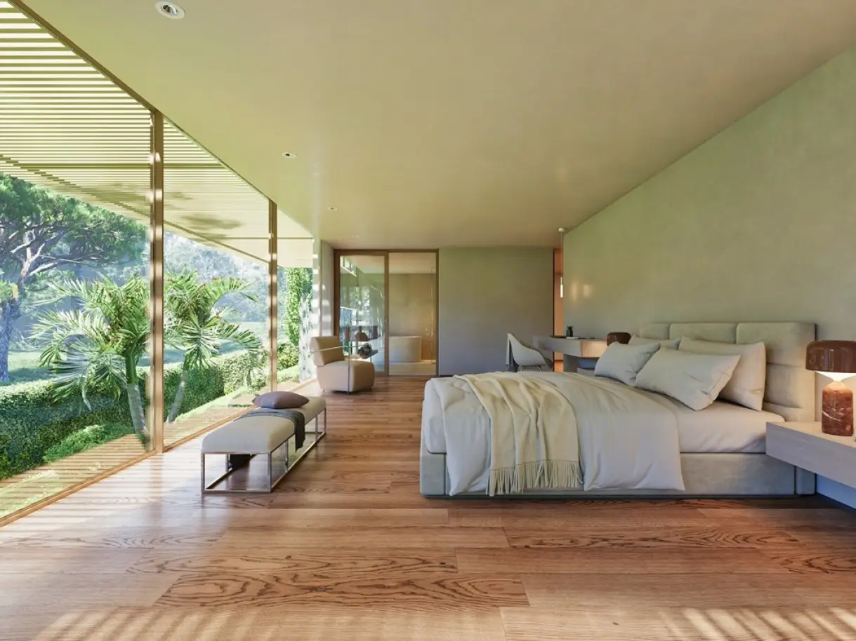 Luxury villa with five suites, in a highly sought-after exclusive residential area in the Algarve, in Vale do Lobo, Almancil, just a short distance from the beach. This modern villa, filled with natural light from its large windows, is intended to be the ideal refuge for its inhabitants. In a prime, exclusive location, it has been thought through to the smallest detail. Only high-quality materials have been used to make this a luxurious, comfortable home, full of privacy and suitable for welcoming family and friends. With a bold and elegant architecture, the villa allows for a harmonious fusion of contemporary design, privacy and connection with the surrounding nature. The villa has three floors, where the entrance is via a raised walkway in a water mirror, which leads to the majestic entrance and consequent living room, equipped with an ethanol fireplace, and the dining room and kitchen. A grand space, full of natural light, thanks to the total openness to the outside there is a harmony that creates a cozy and comfortable place, full of sophistication. The fully-equipped kitchen has a minimalist but functional design and is equipped with top-of-the-range appliances. This space flows naturally outside onto the fantastic pool terrace, with space for outdoor dining and leisure. On the lower floor are the five grand bedrooms, all with en-suite bathrooms and walk-in closets. The rooms, with their soft colors, are a haven of privacy, with extraordinary views of the lush garden. On this floor there is also an equipped gym, a multipurpose room that can be used as a games room or cinema room, a laundry room and a garage for one car. At the top of the villa there is an extraordinary rooftop, with glazed protection, leisure space and an infinity pool with panoramic views. Located in an exclusive area with golf courses, luxury accommodation, gourmet cuisine, health and wellness services, stunning beaches, 20 minutes from Faro International Airport, this villa is the safe investment for those looking for elegance, luxury, comfort and exclusivity for a permanent residence or vacation home. CHARACTERISTICS: Plot Area: 1 140 m2 | 12 271 sq ft Area: 538 m2 | 5 791 sq ft Bedrooms: 5 Bathrooms: 6 Garage: 1 Energy efficiency: A+ FEATURES: 5 suites Gym Garage Swimming pools Terraces Garden
