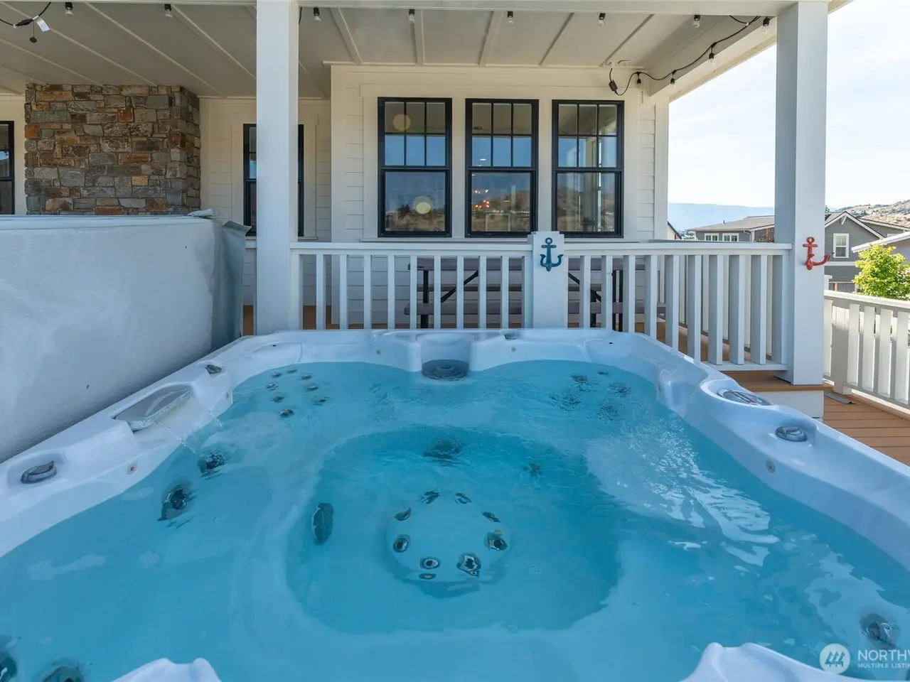 Terrific turnkey fully furnished modern farmhouse at The Lookout on a corner lot w/ stunning uplake views. This spacious 3bd, 1.75bth, 1,453sf home features an open floor plan & incredible outdoor living areas via the classic wraparound covered porch, outdoor BBQ & lounge area w/ cafe lights, fire pit w/ Adirondack chairs plus private hot tub, all just steps from the year-round Vineyard District Pool. Main level w/ Primary Bedroom, spacious kitchen, a 10-person dining area & light-filled living room w/ 2-sided fireplace. Upper level w/ king bedroom, bathroom & a bunk room that sleeps 5. The Lookout offers community waterfront, marina, parks, pools, sports courts & more! Exceptional, consistent VACATION HOME RENTAL with on-site management.