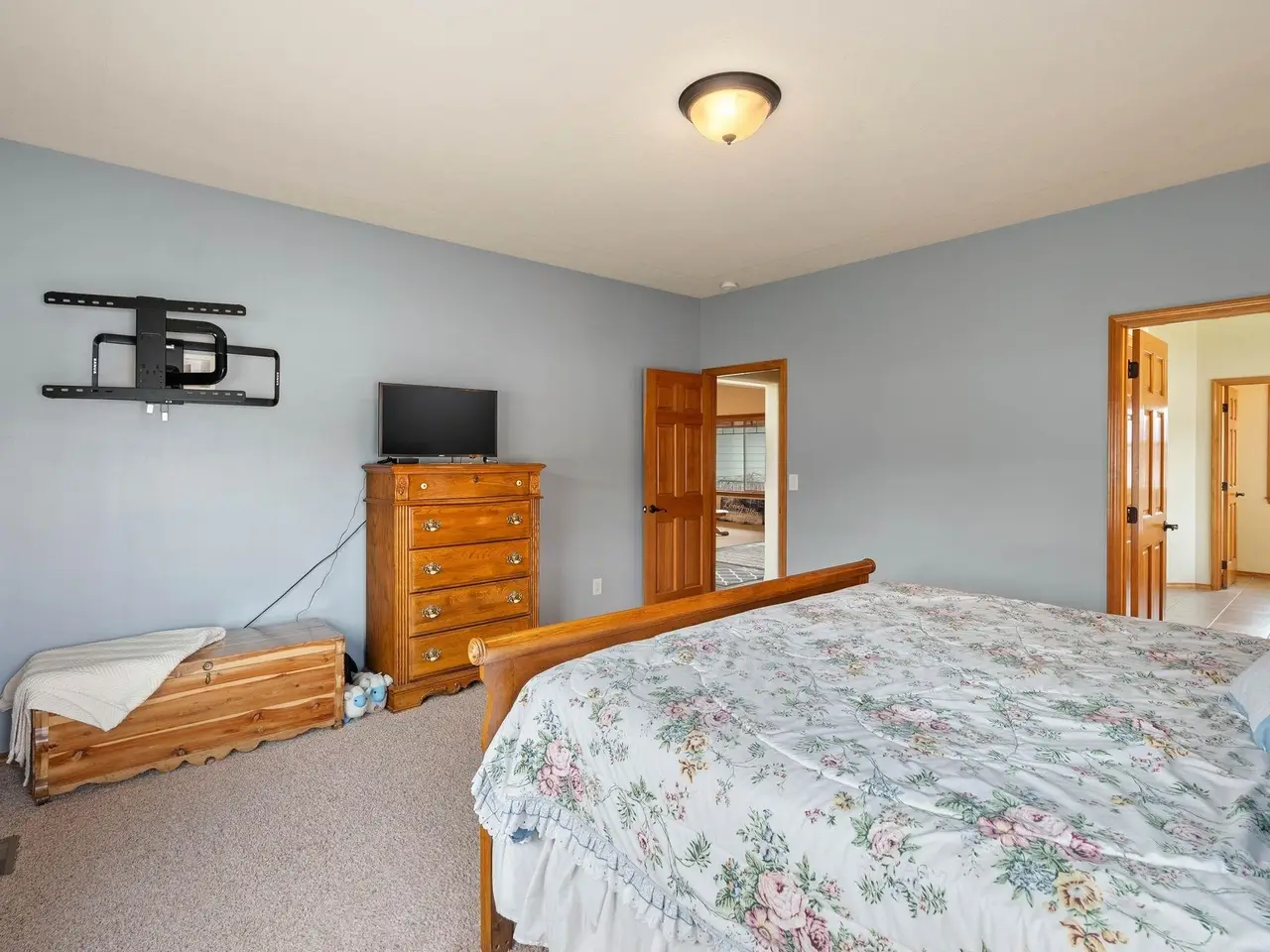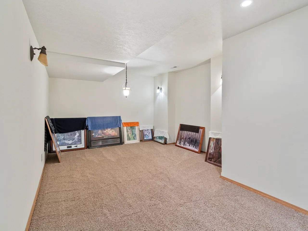 This exceptional 5-bedroom, 4-bathroom home offers everything you've been looking for and more. Located in the Woodland Hills Estate gated community, sitting on a generous 1-acre lot, this home boasts unobstructed mountain views that will take your breath away. The main-floor primary suite offers a resort-like feel with a spacious bathroom and a walk-in closet. The basement features two distinct living areas, including one with a built-in wet bar, wine fridge, and under-cabinet lighting. Outside, the patio and pergola create the perfect setting for relaxing by the gas fire pit. The 40x50 foot shop has 2 14x12 doors & an upper-level loft for storage. This home has been thoughtfully updated, with a new roof on both the house and the shop(2023), a brand-new furnace(2023), new dishwasher, and new electric blinds. The 40 acre green space has a mile long walking trail, and the 100 acres to the north is HOA owned land and both pieces are unbuildable to ensure the ultimate privacy.