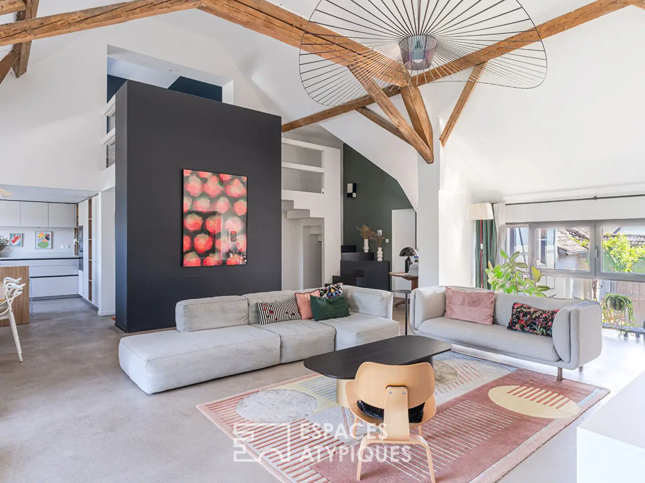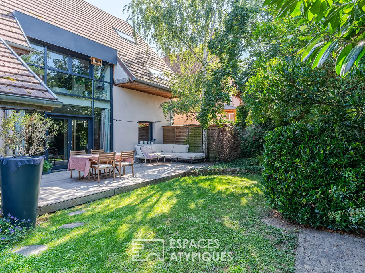 Nestled in the heart of a charming village just 15 minutes from Strasbourg, this unique property elegantly combines regional history and contemporary design. This rare property, resulting from the renovation of a farmhouse, offers two separate dwellings, providing a total of 398 m2 on an intimate 6-acre plot. A perfect blend of tradition and modernity, this property is a true invitation to serenity. The main entrance leads to a 284 m2 barn (317 m2 floor space) that has been converted into a spectacular loft, organized as a reverse duplex. Its 76 m2 cathedral-style living room, with exposed beams and ceilings over 5 meters high, is the vibrant heart of the property. It is bathed in natural light and opens onto the elegant kitchen and dining room. The garden level has three bedrooms, including a master suite with a dressing room and bathroom, as well as a gym and a living room that connects the courtyard to the garden. The second part of the property is a charming, typical Alsatian house of 114 m2 (153 m2 floor space) with three bedrooms, a bathroom, a fitted kitchen, and, in the attic, a cozy living room with a fireplace. This separate part of the property offers multiple possibilities for use, particularly as a seasonal rental. The outdoor spaces are a green oasis, sheltered from view. The garden, with its summer kitchen and spa, is a haven of well-being that promises moments of relaxation. The property is located close to schools and shops, ensuring an easy and pleasant daily life. This property is an ode to the art of living, a confidential address where the authenticity of the location is combined with bold architecture and refined interior design. A farmhouse with rare charm, where every detail reinforces its unique character with its unusual volumes, inverted layout, and elegant features. DPE Grange ENERGY CLASS: D / CLIMATE CLASS: D Estimated average annual energy costs for standard use, based on average energy prices indexed for 2021, 2022, and 2023 (including subscriptions): between €3,830 and €5,230. DPE Alsatian house ENERGY CLASS: D / CLIMATE CLASS: D Estimated average annual energy costs for standard use, based on average energy prices indexed for 2021, 2022, and 2023 (including subscriptions): between €1,760 and €2,450. REF. 1622 Additional information * 15 rooms * 8 bedrooms * 2 bathrooms * 1 bathroom * 2 floors in the building * Outdoor space : 600 SQM * Parking : 2 parking spaces * 2 co-ownership lots * Property tax : 2 589 € Energy Performance Certificate Primary energy consumption d : 157 kWh/m2.year High performance housing