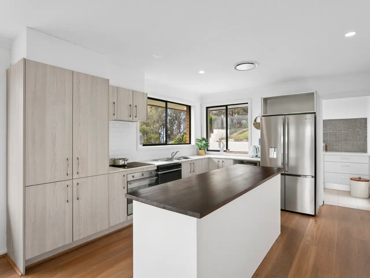 Delivering space, light and refined liveability, this beautifully appointed residence is framed by sweeping ocean and district views. Designed across two versatile levels, the home offers a flexible layout that adapts seamlessly to the demands of family life. A glass-wrapped open plan living area unfolds to sunny north-facing alfresco entertaining, where the outlook stretches to the horizon and across the district. The lower level functions as a retreat for parents or teenagers, with a second living area and palatial bedroom, while the upper level hosts three additional bedrooms including one with an ensuite and walk-in robe. Landscaped gardens provide a private backdrop of lush greenery, thoughtfully designed for ease of upkeep. Positioned in a leafy pocket of Beacon Hill, the address is footsteps from Beacon Hill Reserve, close to major bus services, and only minutes from beaches, schools and Warringah Mall. - Spacious dual-level family home with luminous open plan living - Living extends to an alfresco balcony with sweeping ocean views - North-facing orientation ensures abundant all-day natural light - Far reaching vistas stretch across district to the ocean horizon - Modern stone kitchen with island bench, pantry and dishwasher - Low-maintenance landscaped gardens with rear terrace and lawn - Private lower-level retreat with walk-in robe and shower ensuite - Three additional bedrooms each appointed with wardrobes - Modern family bathroom features a freestanding bath and shower - Practical laundry with chute plus extensive internal storage - Ducted air con, keyless entry, wine cellar, and modern floorboards - Lock-up garage, storage plus driveway parking for additional cars - 800m to Beacon Hill Public School, 3.9km to The Forest High School - 1.5km to St John the Apostle Catholic, 3.4km to Oxford Falls Grammar - 230m to buses, 200m to Beacon Hill Reserve, 2.2km to Warringah Mall