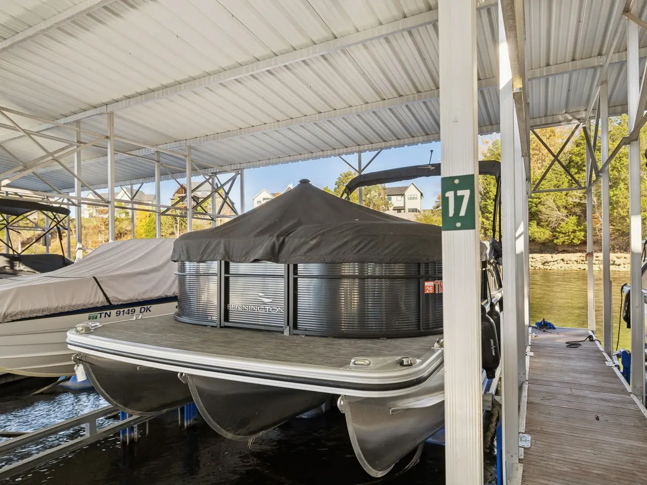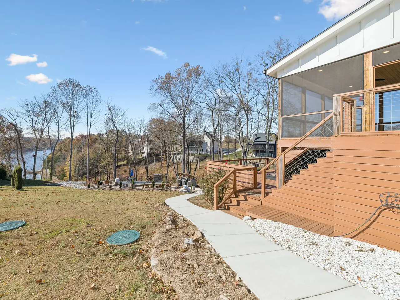 Lake Luxury Awaits in Fanning Bend! Discover the pinnacle of Tims Ford Lake living in this stunning, maintained 4 bedroom, 3 bath home located on one of the largest lots in Fanning Bend Subdivision. The heart of this home is the exceptional outdoor living space. Enjoy the screened back porch, unwinding in the hot tub, or host friends around the custom backyard firepit. Step inside to an open-concept floor plan designed for effortless entertaining. The kitchen boasts with an island, quartz countertops, and pantry. Enjoy cozy nights by the gas log fireplace in the spacious living room. One bedroom & full bath located on the main level. Upstairs the primary suite features an extra-large, spa-like tile shower. Storage is no longer a concern! In addition to the attached two car garage, this property features an oversized detached 2-car garage heated & cooled plus a separate water heater & epoxy floor. The property has a full irrigation system. A deeded boat slip with lift is included. This is more than a home; it's your lakeside sanctuary. Don't miss this rare opportunity for a full featured Tims Ford Lake Property.
