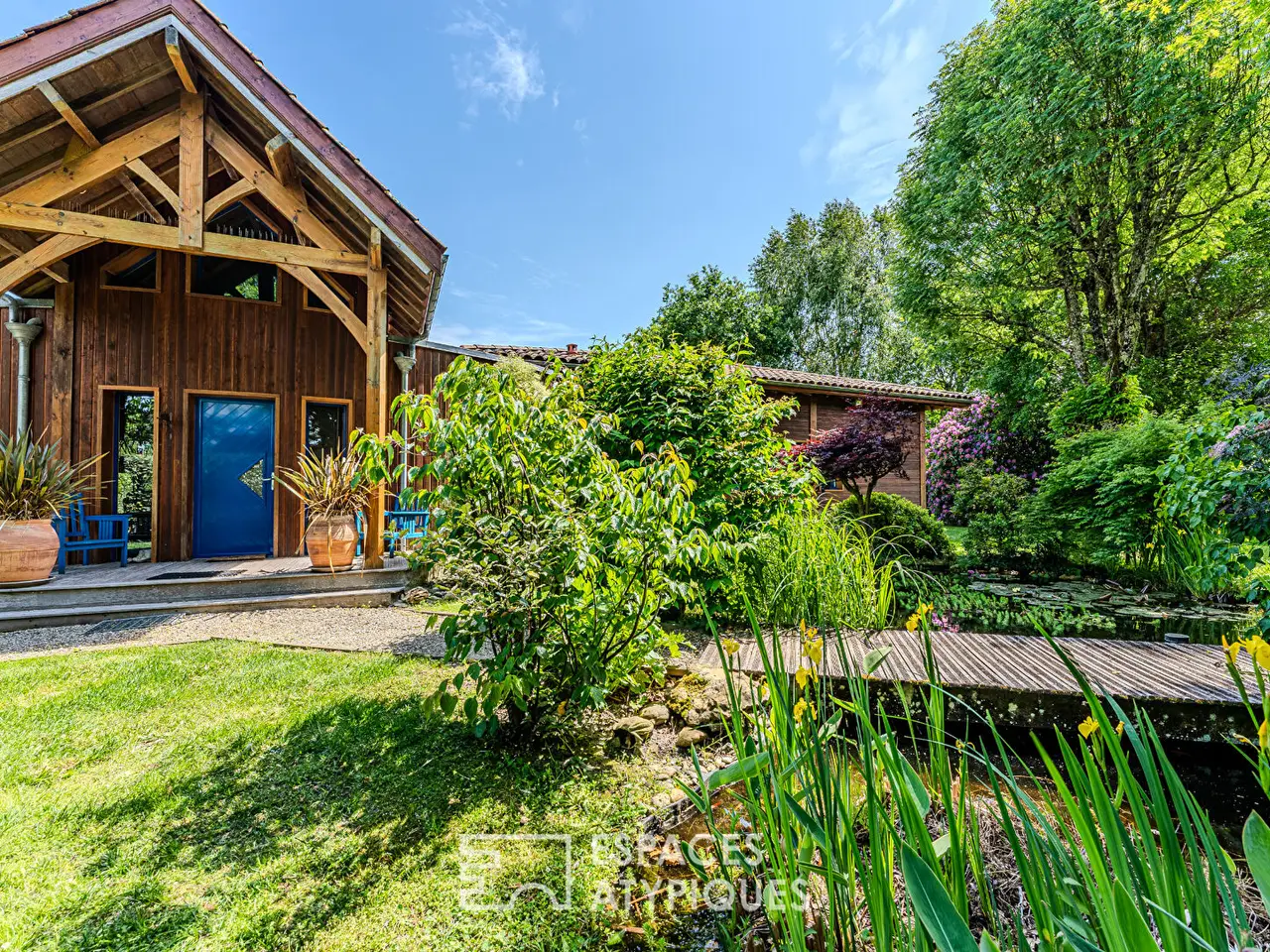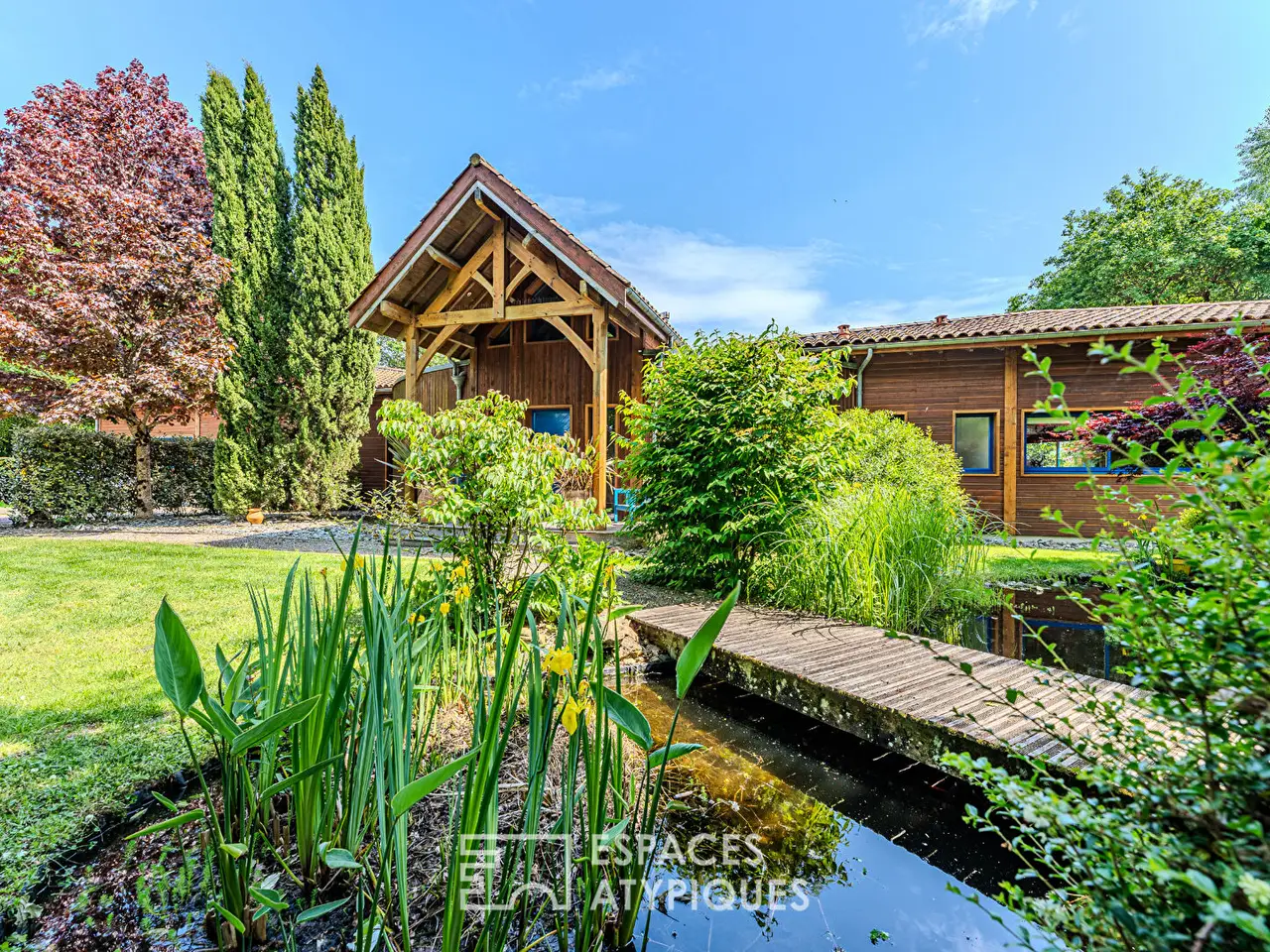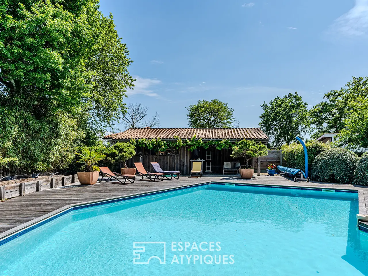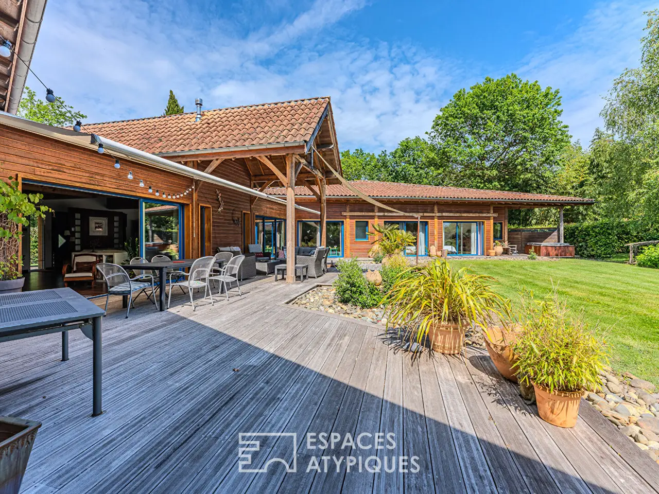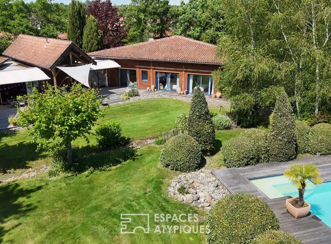 Nestled in a quiet, green setting in Biscarrosse, this architect-designed timber-frame house offers 243 sqm of living space on a landscaped plot of 2,800 sqm.Entirely designed to offer exceptional living comfort, it stands out for its generous volumes, contemporary lines, and large swimming pool, in a permanent dialogue between interior and exterior.This unique living space blends harmoniously into its natural environment. The interior spaces are organized around a vast cathedral-style living room bathed in light, thanks to the numerous openings that offer unobstructed views of the garden.The kitchen, open to the dining room, also connects to an outdoor terrace, naturally extending the living spaces. The house offers four bedrooms, including a master suite, as well as two bathrooms.The fluid layout of the spaces creates a soothing atmosphere, conducive to relaxation and conviviality. The park, designed by a landscaper, creates a natural setting of great beauty : local vegetation, a romantic pond, and a variety of species invite serenity.The space formed by the swimming pool and its pool house evokes an oasis surrounded by greenery.A house with a strong architecture, it seduces with the rare harmony between nature, design, and comfort. This atypical property offers high-end services, ideal for a primary or secondary residence.The residential environment is sought after for its tranquility and its proximity to beaches, shops, schools, and all the amenities of Biscarrosse.REF. 10873EALDAdditional information* 7 rooms* 4 bedrooms* 1 bathroom* 2 shower rooms* Outdoor space : 2800 SQM* Parking : 6 parking spaces* Property tax : 2 183 €Energy Performance CertificatePrimary energy consumptionc : 179 kWh/m2.yearHigh performance housing*A*B*179kWh/m2.year5*kg CO2/m2.yearC*D*E*F*GExtremely poor housing performance* Of which greenhouse gas emissionsa : 5 kg CO2/m2.yearLow CO2 emissions*5kg CO2/m2.yearA*B*C*D*E*F*GVery high CO2 emissionsEstimated average annual energy costs for standard use, indexed to specific years 2021, 2022, 2023 : between 2980 € and 4080 € Subscription IncludedAgency feesThe fees include VAT and are payable by the vendorMediatorMediation Franchise-Consommateurswww.mediation-franchise.com29 Boulevard de Courcelles 75008 ParisInformation on the risks to which this property is exposed is available on the Geohazards website : www.georisques.gouv.fr