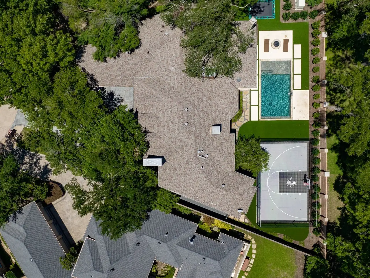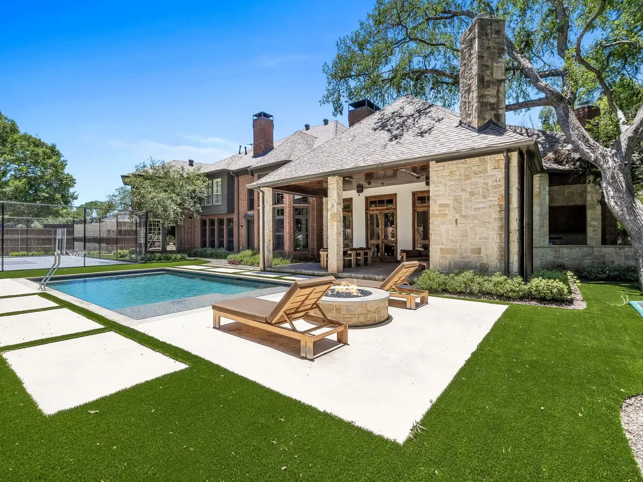 This home has been updated from head to toe. New hardwood floors throughout, paint, countertops, designer light fixtures. A brand new kitchen including Taj Mahal quartzite, custom copper hood, new appliances, and new cabinets. Primary bath completely updated into spa like bath including steam shower and infrared sauna. 1 study or lounge downstairs and second study or library upstairs. Even with all the amazing updates inside, the backyard is the show stopper! New pool, firepit, fireplace, spool, outdoor grill, in-ground trampoline, AND sport court. There is no other property like this!