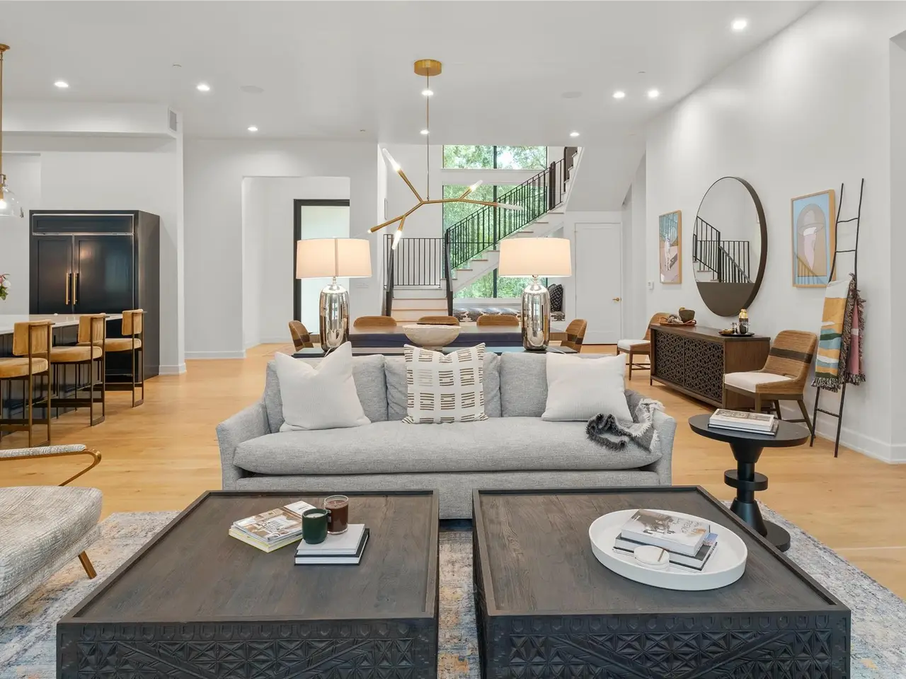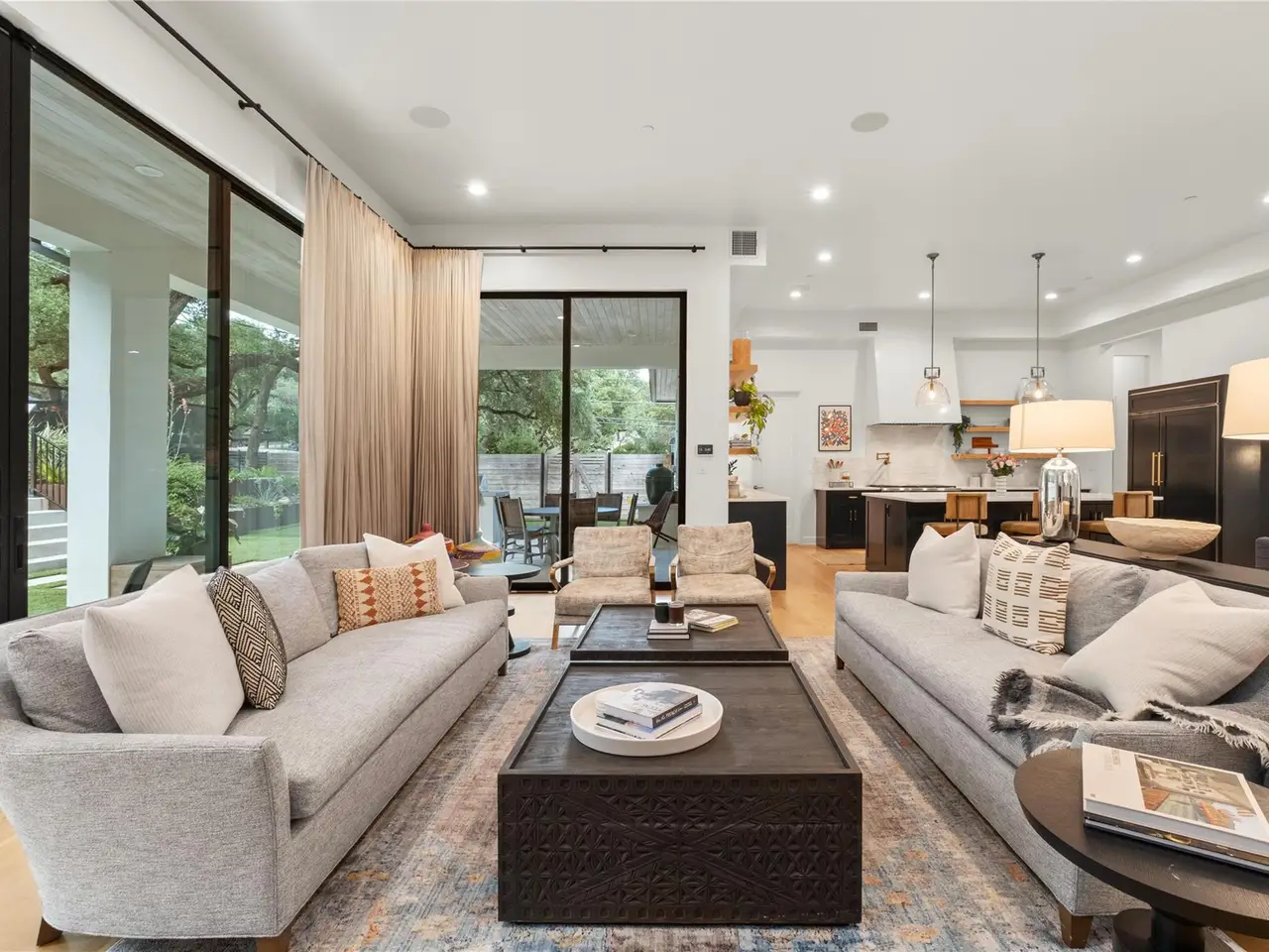Step into refined comfort in this stunning 4-bed, 4.5-bath home with 4,486 sq ft of beautifully designed living space on a .47-acre corner lot. A blend of contemporary elegance and inviting warmth, this exceptional residence was featured on the cover of LUXE Interiors + Design and received a 12-page editorial in 2021. The open-concept great room is the heart of the home, seamlessly connecting living, kitchen, and dining areas. Custom caned-door cabinets flank the fireplace, while a cozy window seat nestles beneath the stairs. A main-level study with built-ins offers an ideal space for work or quiet focus. The main-level primary suite provides convenience and privacy, while the upper level features three additional bedrooms--each with its own full bath--and a secondary living area ideal for media or playroom. One bedroom includes a custom Murphy bed, easily converting the space from a gym to a guest suite. Designed with a sophisticated yet welcoming palette, the home showcases rich textures, statement wallpaper in key rooms, and striking lighting, including a dramatic pendant by Australian designer Christopher Boots. Custom draperies and window treatments complete the look. The backyard is built for entertaining with an outdoor kitchen, a heated 9-ft-deep pool with diving board by Modern Pools, and a putting green. A Control4 system with integrated sound and cameras, plus a fire sprinkler system, add modern convenience and safety. The 3-car garage and meticulous design throughout make this home truly one-of-a-kind. Located in the acclaimed Eanes ISD, this home is walkable to Rollingwood Park and Trader Joe's, and just minutes from Zilker Park and downtown Austin, offering the perfect balance of tranquility and city life.