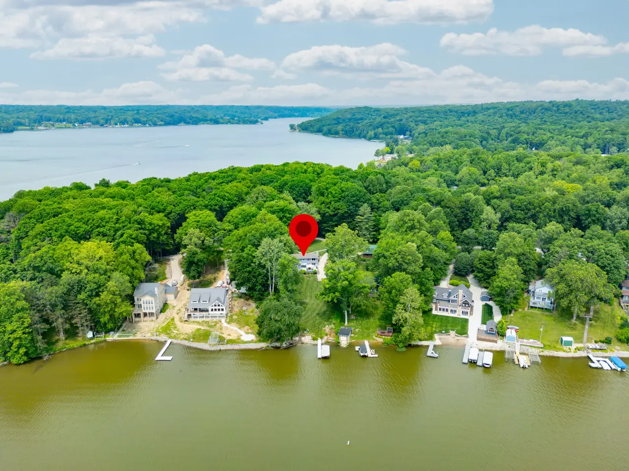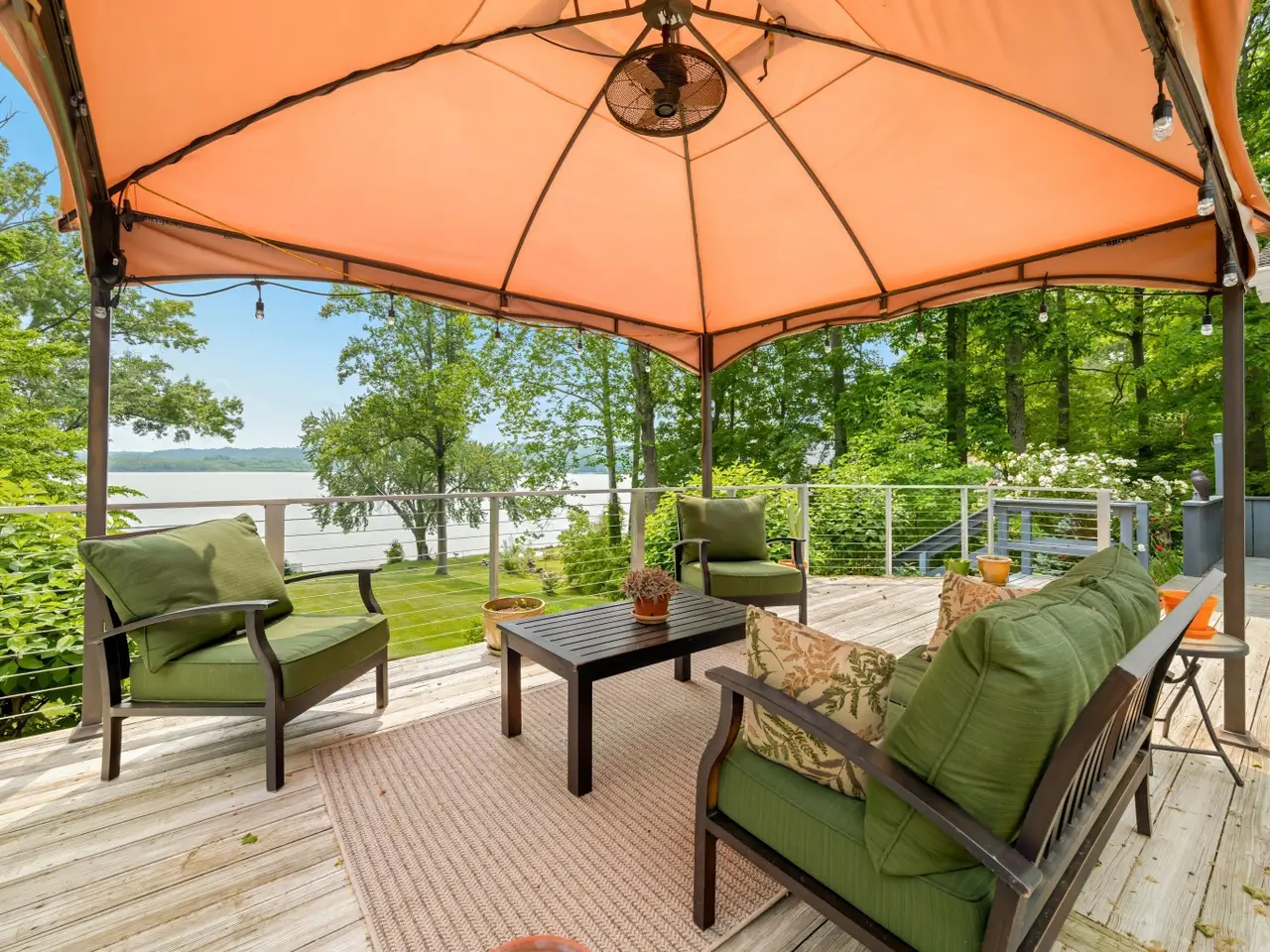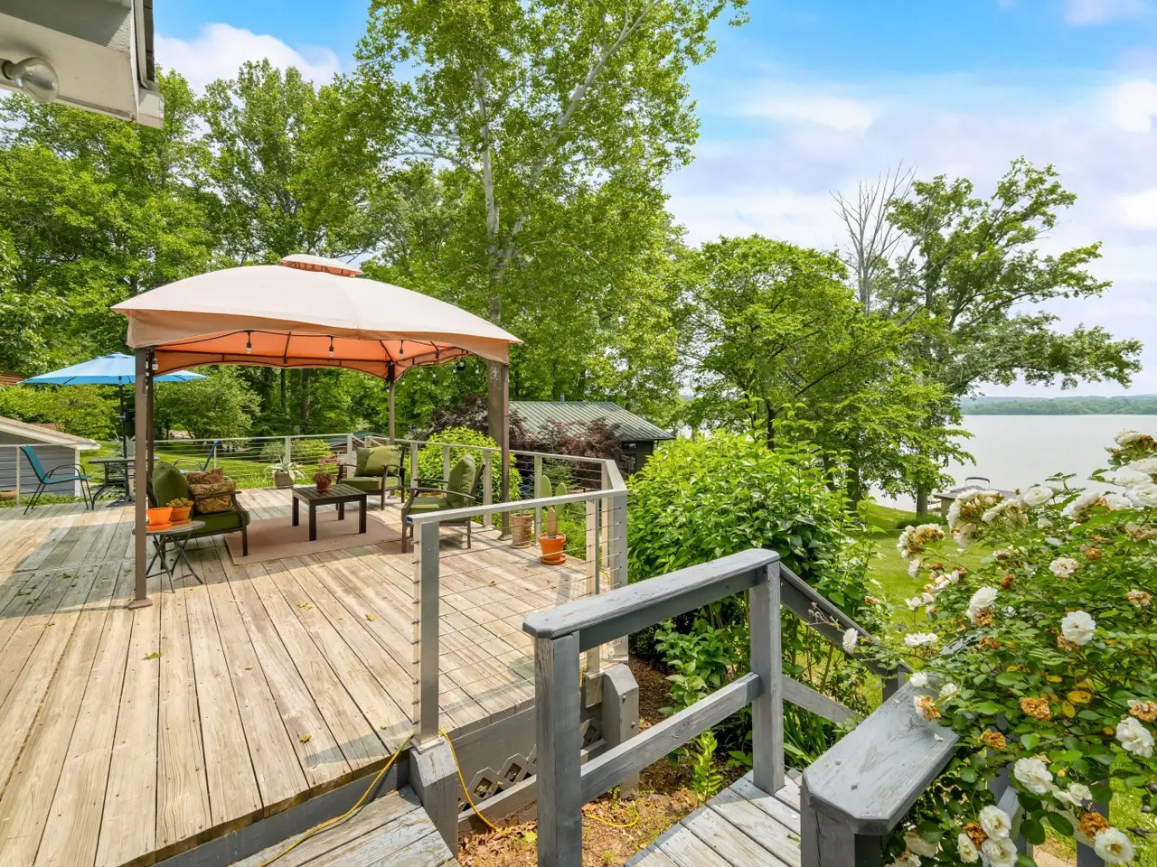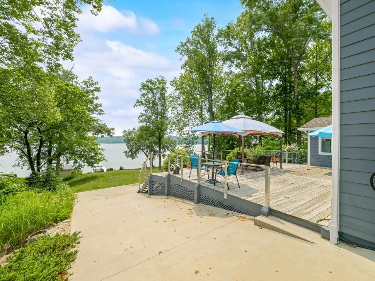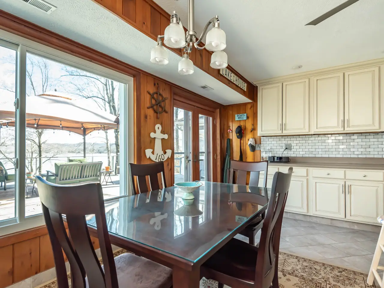 • Large windows overlooking the lake