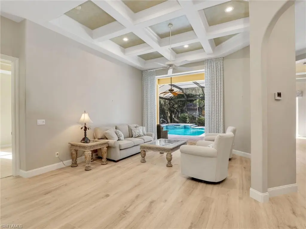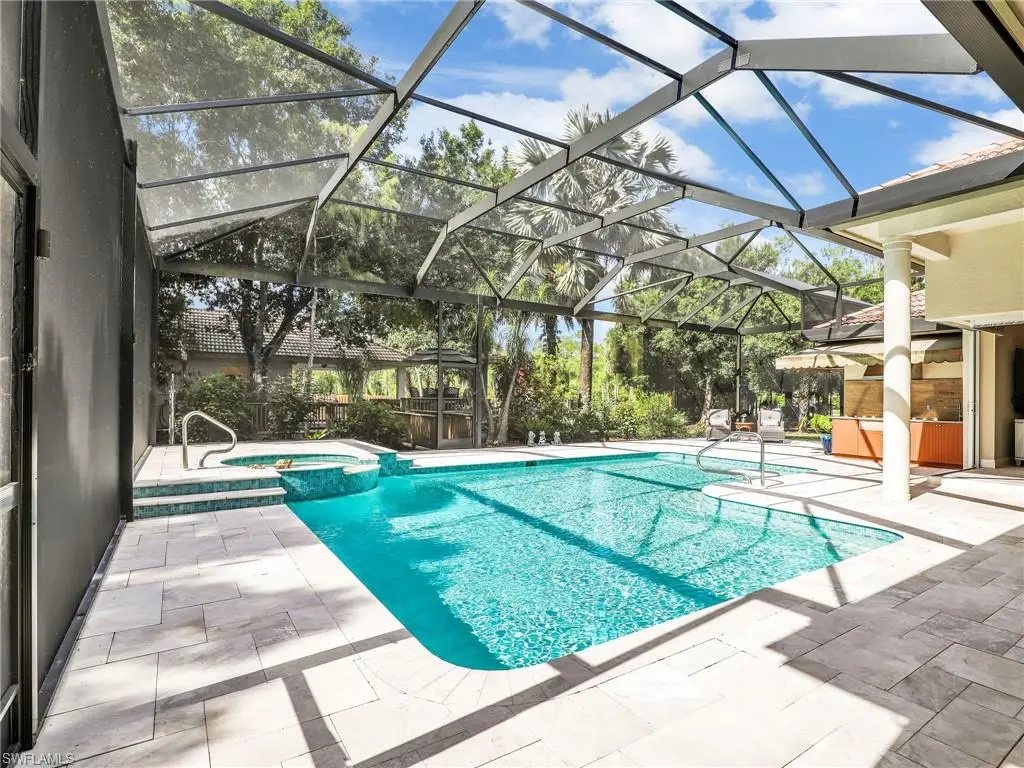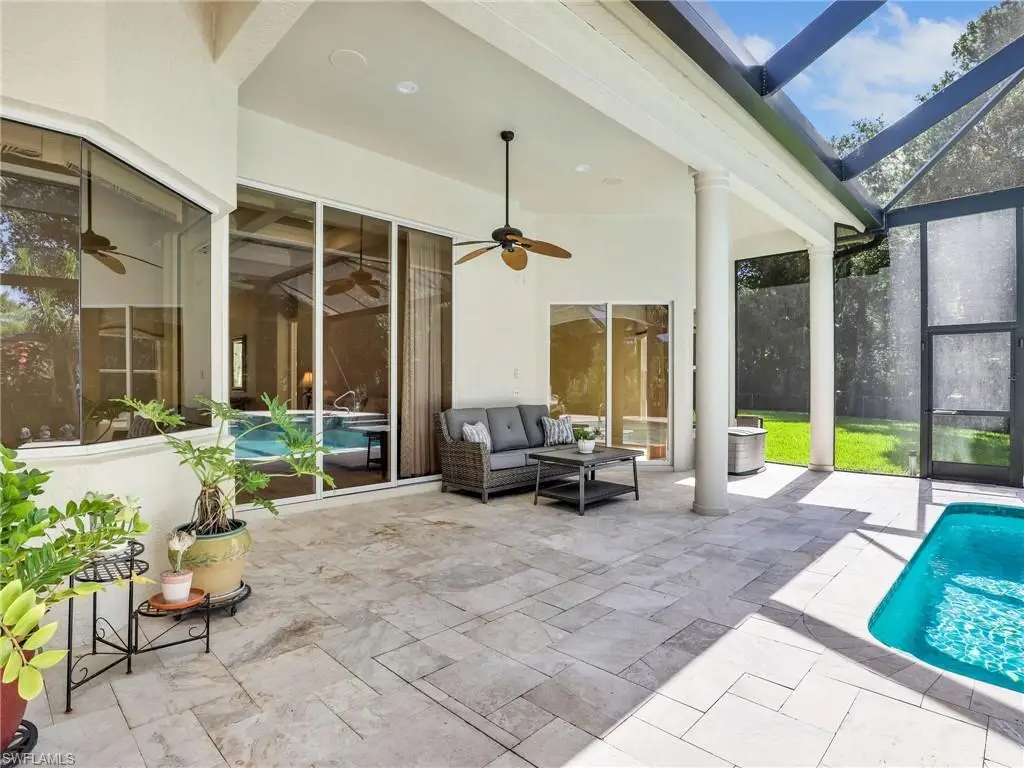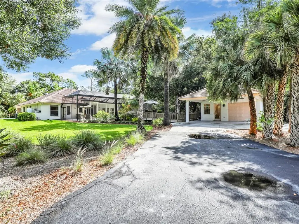 Located in the highly desirable Logan Woods community with no HOA fees, this solidly built DIVCO home sits on a rare 2.57-acre square lot with lush landscaping, a fenced side yard, and total privacy. Designed for entertaining and ideal for those with hobbies or home businesses, the property features a recently renovated southern-exposure pool and spa area with full sun all day, an upgraded picture screen enclosure, and a convenient pool bath. Zero-corner sliding glass doors seamlessly connect the indoor living spaces to the outdoor pool area, creating a true open-concept flow for Florida living. Beyond the pool, step out to an expansive open-air deck, ideal for large gatherings, alfresco dining, or enjoying peaceful evenings under the stars. Inside the 2,953 square foot main home, you’ll find a thoughtfully designed four bedroom, three bath split floor plan, enhanced with new tile flooring, plantation shutters, and custom cabinetry throughout. The gourmet kitchen is a chef’s dream, featuring an induction cooktop, double convection wall oven, and abundant prep space - perfect for both everyday living and entertaining. Additional highlights include a whole-house water filtration system. A unique bonus is the 576 sq ft air-conditioned outbuilding, currently used as an office and workshop. Complete with a full bathroom and room for a refrigerator, this flexible space offers income-producing potential as an efficiency apartment, guest suite, or creative studio. Additional features include fruit trees, a circular driveway with dual entrances from Logan Blvd and Mahogany Ridge Dr, and ample space for parking a boat, RV, or recreational vehicles. Located just minutes from world-class Gulf beaches, shopping, dining, and top-rated schools, this property offers the perfect blend of space, privacy, and convenience.