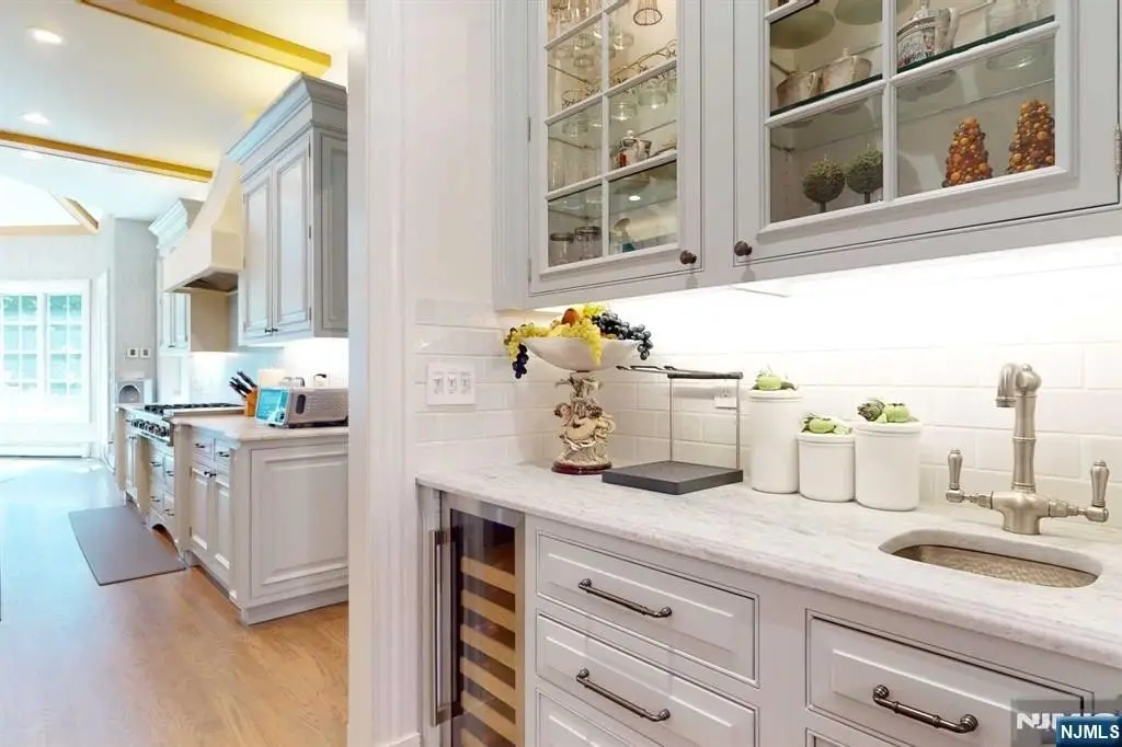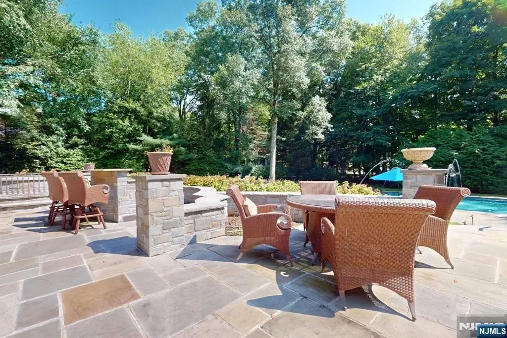 Gorgeous brick manor colonial located on Saddle River's premier street. Circular driveway leads you to this stately home. Upon entry into the two-story marble foyer, you will see the spectacular curved staircase with balcony overlooking the two-story great room. Meticulously chosen paint, cabinet, and floor colors in the social spaces where you will be entertaining your guests. Living room, dining room, magnificent kitchen with quartz island and Hestan appliances. Magnificent molding and built-ins throughout. Completing the first floor are guest bedroom, full bath and laundry. Upstairs is an extravagant primary suite complete with full bath, 2 walk-in closets, and sitting room. Four additional en-suite second floor bedrooms. Second staircase leads to a newly finished basement with den, full bath, golf practice range, gym, and storage. Stunning property with outdoor entertainment, patios, heated gunite pool, spa, kitchen. Newly updated security system. Not to be missed!