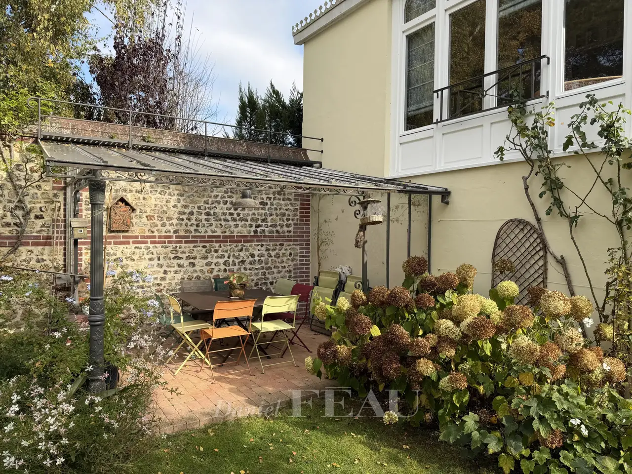 This charming early 20th century villa offering about 235 sqm of living space is in a prime location near the town centre and the shops. Enjoying a view of the racecourse and benefiting from a south-west facing landscaped garden, it includes a living/reception room with a fireplace, a dining room, a separate kitchen, a utility room, and two bedrooms with bathrooms. Upstairs are three further bedrooms and a shower room. With a garage. A rare opportunity in walking distance of all of the resort's amenities.