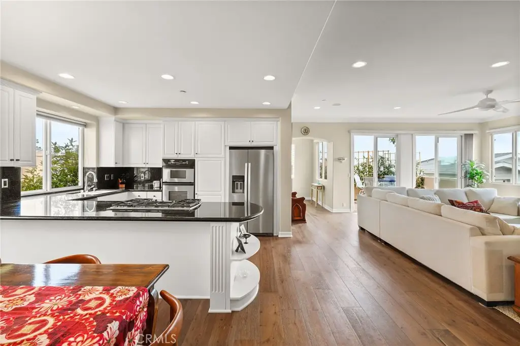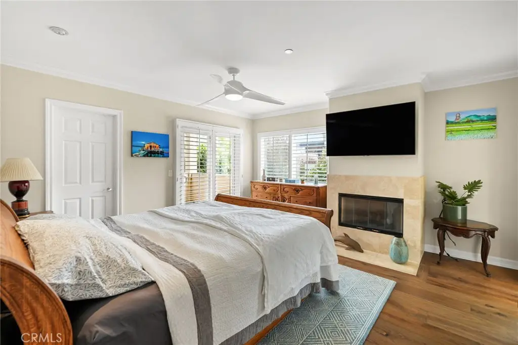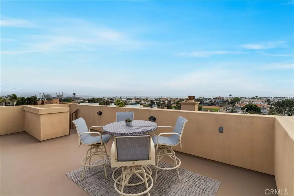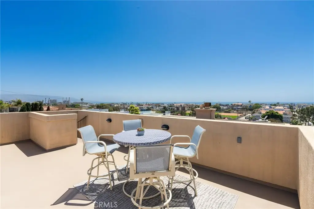 Welcome to this gorgeous OCEAN VIEW 3 bedroom, 2 1/2 bathroom townhome with 3 outdoor decks located in the heart of Hermosa Beach. The upstairs living area features a spacious open floor plan with ocean views, cozy fireplace, hard wood flooring, a spacious living room, dining area. kitchen and guest bathroom. The kitchen has granite counter tops, stainless steel appliances, double ovens, cook top and peninsula with countertop seating. Enjoy the ocean breezes from the living room that leads to one of the ocean view decks perfect for entertaining and outdoor dining. From this level a staircase leads to a private rooftop deck with stunning panoramic views. On the entry level you will find 2 spacious bedrooms with ample closet space and the primary bedroom. The primary bedroom has two walk-in closets, private balcony, fireplace and a large ensuite bathroom with a double vanity. All the bedrooms feature hardwood flooring. The lower level offers flexibility with an additional room for a home office, gym, or playroom. On this level you will find a laundry room and storage closet and direct access to the oversized 2 car garage with plenty of room for additional storage. This back unit townhome offers an additional off-street driveway parking spot . Conveniently located and just a short distance to the greenbelt, South Park, Hermosa Valley School, shopping, coffee shops, grocery stores, numerous downtown restaurants, the beach and bike path.
