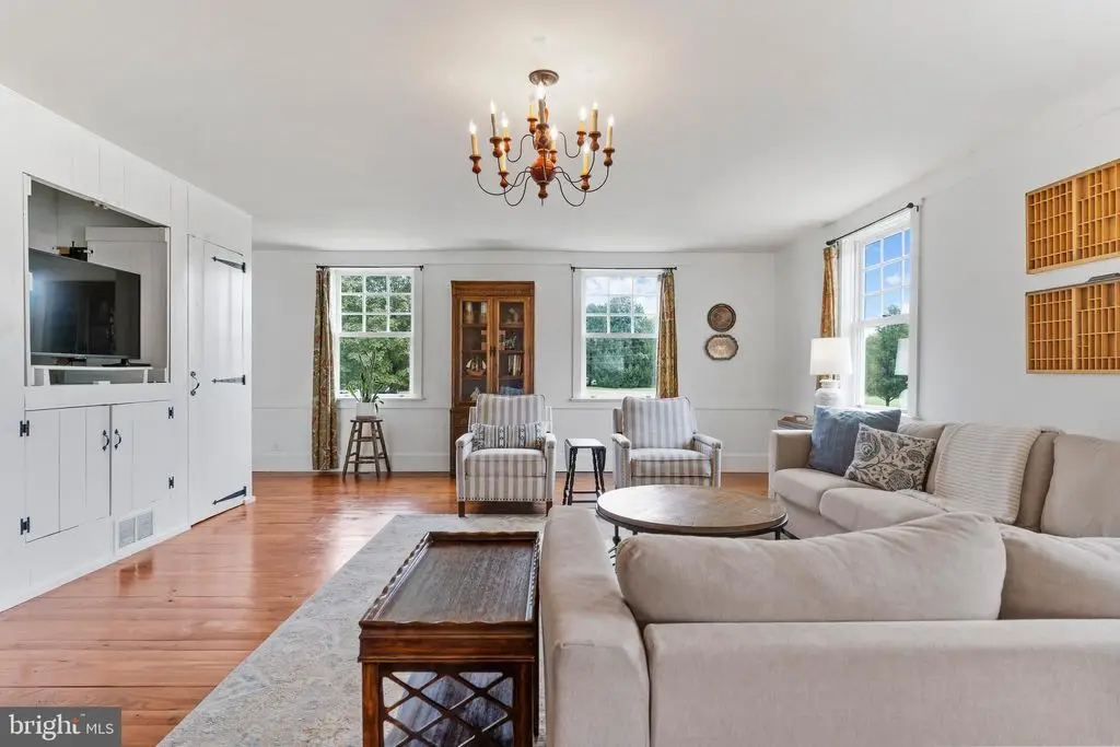 A picturesque long driveway highlighted by beautiful, mature sugar maple trees paves the way to this stunning home, formerly showcased in Country Living magazine. You're guaranteed to appreciate this beautifully designed modern Colonial, nestled upon 5 acres of serene countryside. Custom-built in 2003, this home blends timeless craftsmanship with current, and recent modern finishes throughout. Reclaimed, random-width pine flooring salvaged from a historic Connecticut barn, pairs seamlessly with painted knotty pine trim and woodwork and many period-inspired fixtures. The centerpiece of this home features a fantastic Kitchen and Dining Room, with solid wood cabinetry with inlaid doors, brand new quartz counters, and nearly brand new black stainless steel Refrigerator, Dishwasher, built-in Wall Oven, Cooktop, and deep, stainless steel country sink, all contiguous through a beautiful beamed ceiling. Adjacent keeping room with built-in cabinets and pantry with aesthetic double-sided wood burning fireplace, constructed with stone from the property. Fluid entertaining in the grand Dining Room, with chandelier and northern facing wall of windows. The Formal Living Room is a wonderful space to relax in abundant natural light, with mantle and built-in cabinets. Foyer and Entryway provide passage to the den or office to provide a flex space for homeowners. Spacious First Floor half bath and Mudroom with utility sink and shelving, too. Two options to access the comfortable 2nd floor with brand new Stainmaster carpet in all four Bedrooms, including the private Primary Bedroom with faux brick fireplace, walk-in closet and built-in drawers, complete with en-suite bath highlighted by double vanities, jetted soaking tub, and shower. The additional Bedrooms offer generous spaces, one with a wall of built-in cabinets and desk, and plenty of windows for light, complimented by a guest Bath with shower/tub combo and custom vanity. The convenient second floor laundry room with utility sink and folding table also provides pull down access to attic for additional storage. Enjoy company in the finished Lower Level, complete with a fantastic wet bar adjacent to the Family Room which is wired for sound, and Bonus area which provides a wonderful option for in-home fitness. The 5th Bedroom offers privacy for guests or the perfect space for the craftsperson with adjacent bath. A show-stopping screened in porch with brick floor, beadboard ceiling, and double fans provides a relaxing space and leads to the beautiful 20x40 foot in-ground concrete and slate pool with white picket fence - brand new pool pump and filter installed in June of 2025. The detached 3-bay Garage with 2nd story for additional storage has elevated space for larger vehicles or project cars. This property is complete with a new Atlas Signature Select roof on the house and garage, new Rheem Performance Plus Hot Water Heater, geothermal heatpump, water conditioning, sun tunnel skylights, and much much more. All this in Cumberland Valley Schools, Silver Spring Township, and a fantastic location to call home for future homeowners. Don't wait to appreciate all the blends of timeless history and modern elements that this one-of-a kind home has to offer.
