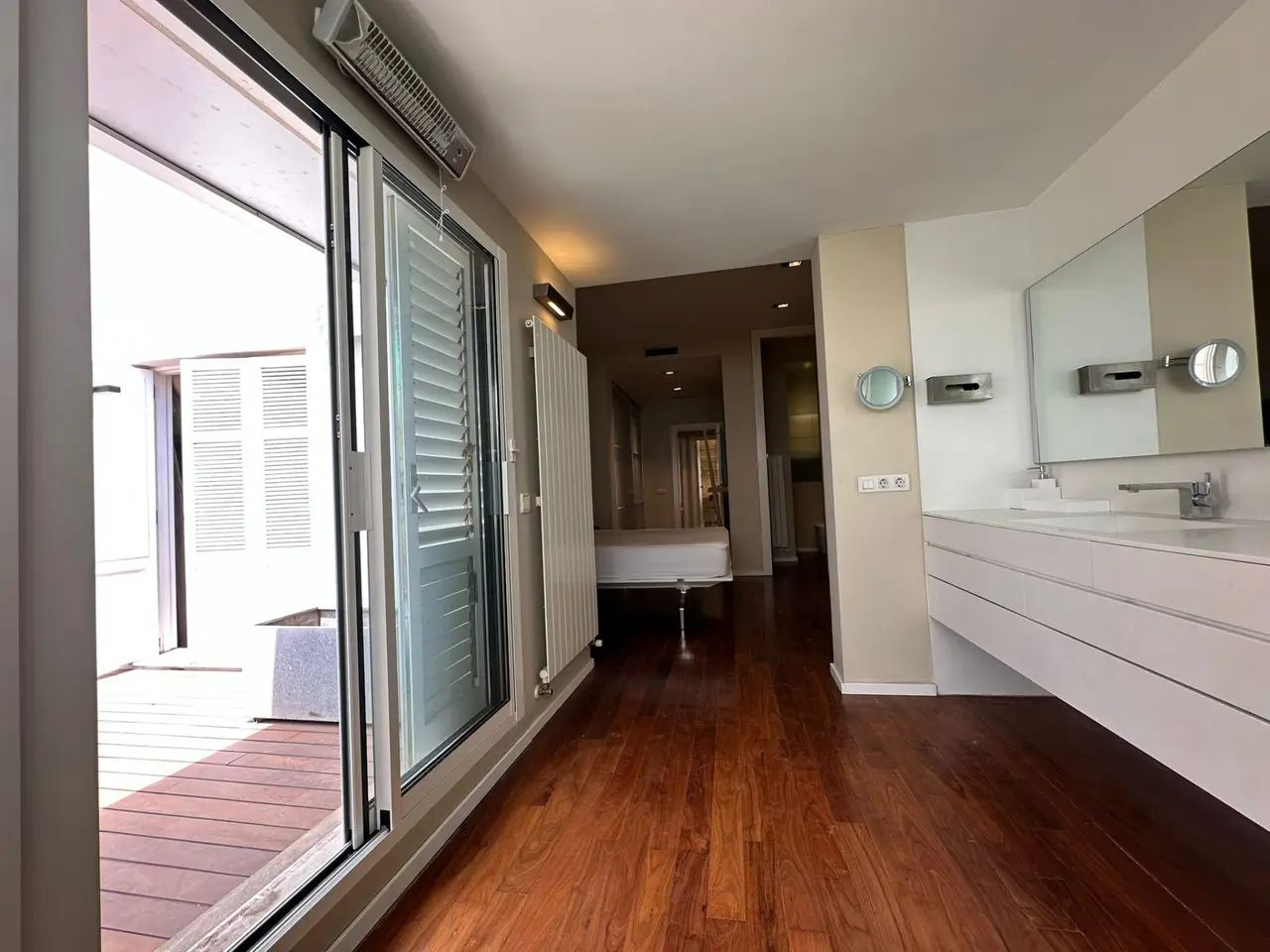 Located in one of the most sought-after areas of Valencia's Eixample, just a few meters from the Mercado de Colón, this penthouse represents a real real estate gem: spaciousness, design and a unique terrace in the heart of the city. With 163 m² built, the property stands out for its impeccable distribution and a spectacular terrace of approximately 50 m² facing the emblematic Cirilo Amorós street. An outdoor space difficult to find in this location, perfect to enjoy the Mediterranean climate throughout the year. The main living room, spacious and bright, opens directly onto the terrace, creating a seamless connection between indoors and outdoors. The kitchen, designed by the prestigious firm Bulthaup, combines functionality and style, becoming one of the most special corners of the house. The night area has three bedrooms. The master bedroom is a real suite, with a large dressing room, bathroom with bathtub and shower, and direct access to the terrace. A second double bedroom, a third single bedroom and a second bathroom with shower complete the house. It also includes a parking space in the same building, which adds value and comfort to an already exceptional property. A penthouse with clean lines, generous spaces and careful details, ideal for those looking for quality of life in one of the best locations in Valencia.