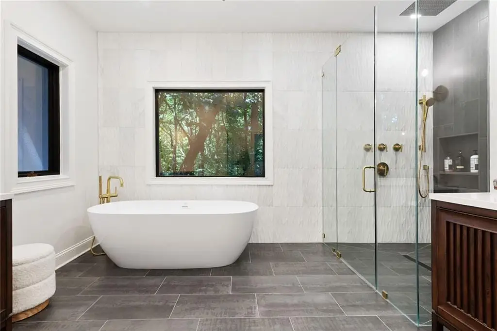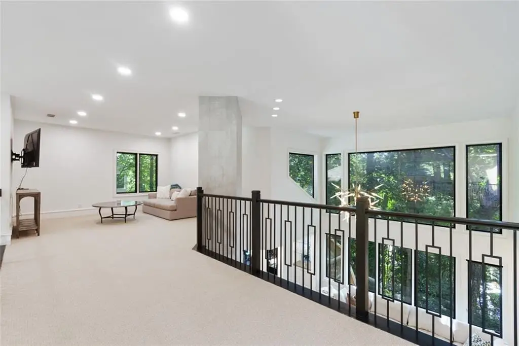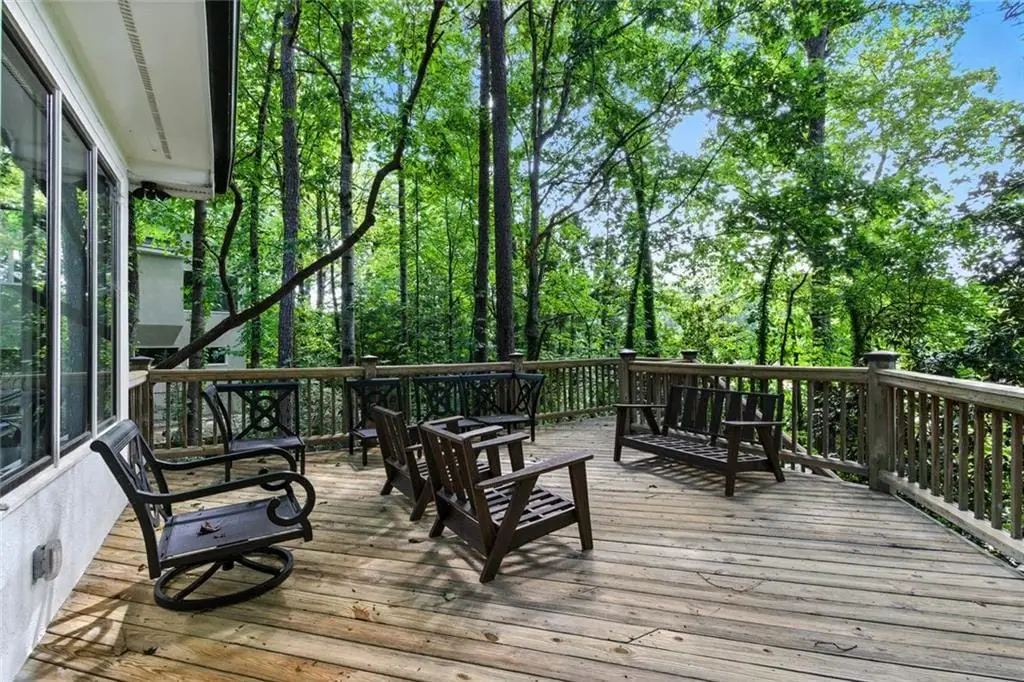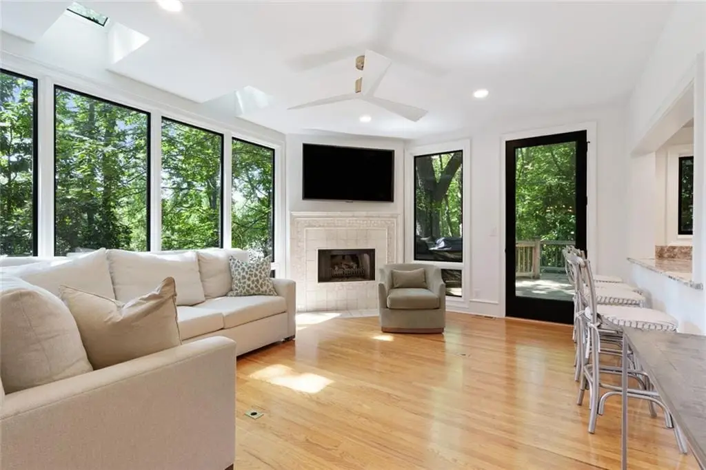 Renovated Contemporary Showpiece! Step inside to a dramatic two-story, two-sided fireplace that anchors the main living space, creating a stunning architectural centerpiece visible from the great room, music room and chic bar area. This completely move-in ready home offers the perfect blend of style, function, and is located in one of Atlanta's most coveted Inside-the-Perimeter neighborhoods-Glen Errol. This architectural gem blends sleek contemporary design with warm, inviting spaces, all framed by floor-to-ceiling windows that flood the home with natural light and showcase its wooded surroundings. The entertainer’s kitchen is a true showstopper, featuring a massive island, custom cabinetry, and a hidden walk-in pantry, all opening to a cozy sunroom with its own fireplace--the perfect spot for morning coffee or after-dinner conversation. A formal dining room offers elegant space for special occasions. The main floor also features a versatile office/guest suite with a Murphy bed and a full bath, perfect for visitors or working from home. Upstairs you’ll find a generously sized primary suite with huge walk-in closet and brand-new spa like bath as well as 3 more bedrooms and 2 fully renovated bathrooms, offering comfort and privacy for the entire family. A landing area overlooking the great room offers plenty of space for the entire family to hang out on the same level as the bedrooms. The terrace level offers a large living area, a sixth bedroom with half bath, and a vast amount of unfinished space, presenting endless possibilities for customization - think gym, media room, workshop, or additional storage. The backyard has not been developed yet but there is space to create your own oasis. Additional highlights include a 2-car garage with ample extra parking, updated lighting and finishes throughout. This home is a rare blend of modern sophistication and timeless comfort, all nestled in a quiet, tree-lined community just minutes from Buckhead, Sandy Springs, and major highways.