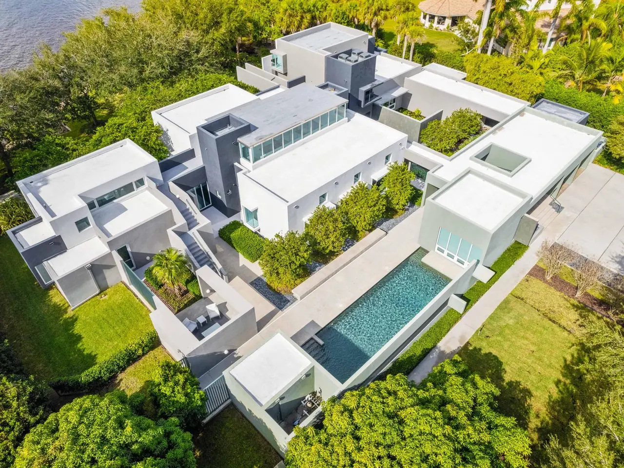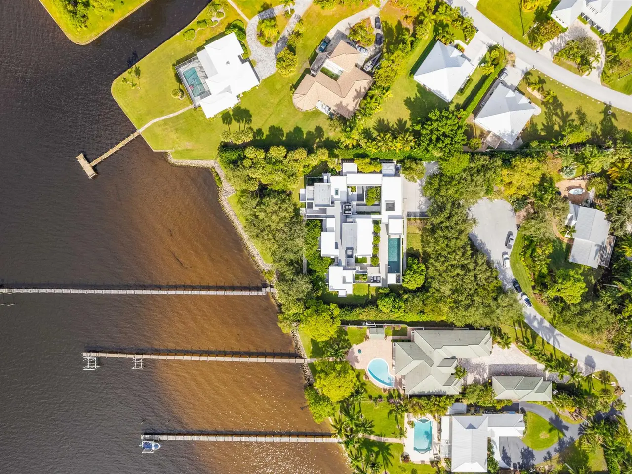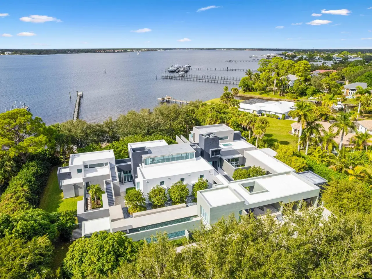 Set on an expansive double riverfront lot, this extraordinary residence boasts over 200 feet of protected shoreline, ensuring privacy, tranquility, and an intimate connection to nature. With unobstructed, sweeping views of the St. Lucie River, the home serves as a front-row seat to the spectacular beauty of panoramic sunsets that transform the sky into a canvas of vibrant colors each evening. This 7,500 sq ft modern masterpiece is a harmonious blend of cutting-edge design and the serene allure of waterfront living. Its striking architecture and floor-to-ceiling windows frame the river from nearly every angle. The residence radiates contemporary elegance while remaining firmly rooted in the natural beauty of its surroundings.