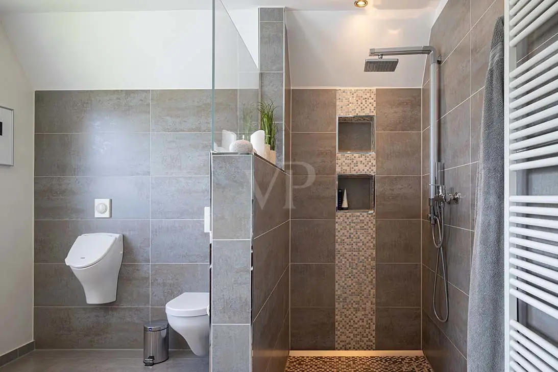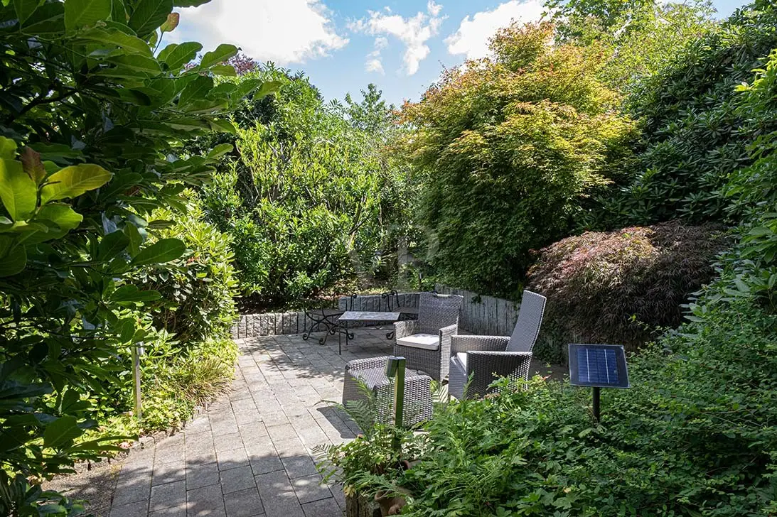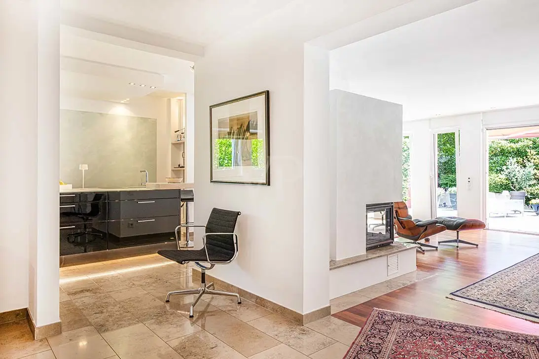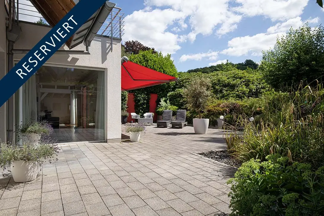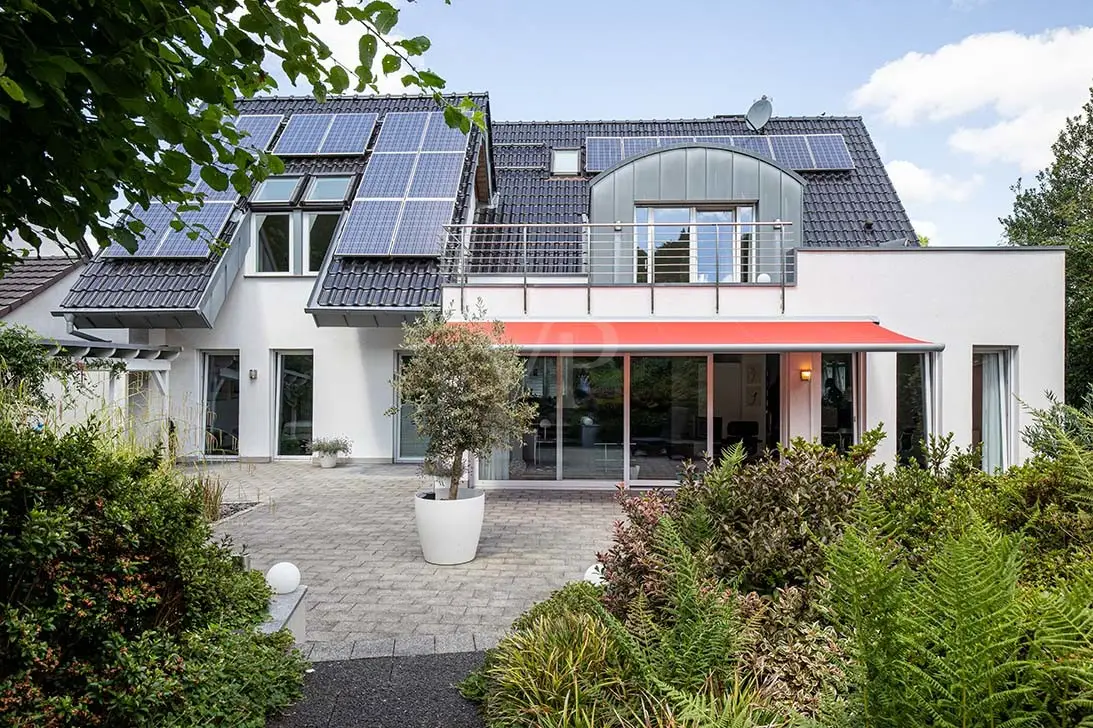 This exceptionally attractive detached house offers a generous living space of approx. 242 m², combined with an attractively landscaped terrace and garden area on a spacious plot of approx. 1,144 m². Originally completed in 1958, the property has been thoughtfully extended and renovated over the years (most recently in 2007/2008) in order to meet current demands for high living comfort and to optimize energy consumption. The existing photovoltaic system not only helps to reduce energy costs, but is also a step towards sustainable living. A roof area of approx. 59 m² was covered and it achieves a PV output of 8.28 kWp. The property also has a traditional fireplace with a connection to the heating circuit. There is also preparation for an additional solar system for further optimization. The layout of the house is very functional and ideal for families or couples looking for plenty of space. The interior of the house impresses with a combination of natural stone, parquet and carpeting. You can also expect a custom-made kitchen with Küppersbusch and Miele appliances. Security is provided by a high-quality alarm system with indoor and outdoor surveillance as well as burglar-resistant windows and doors with glass breakage and motion detectors. In the classic rooms of the property, there are connections for telephone, television and IT, which significantly increases flexibility in the use of the rooms and creates ideal conditions for working from home in particular. This property combines traditional charm with modern amenities and is waiting to become your new home.