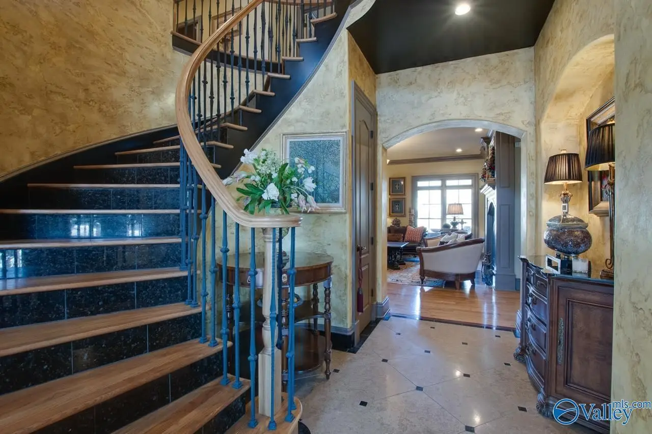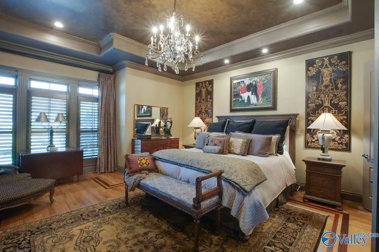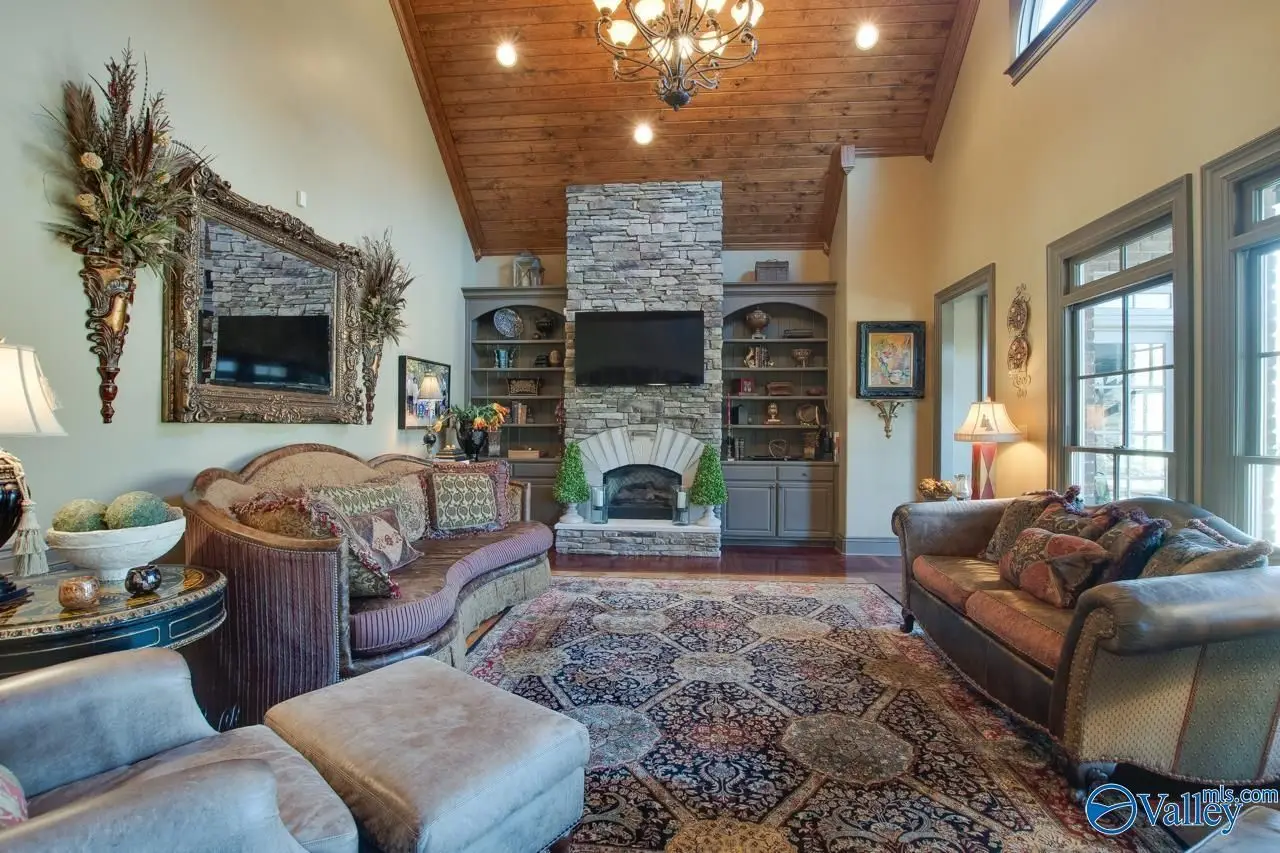Executive living at its finest in prestigious McMullen Cove. Astounding front entry w/ double iron doors & Curved Stairway. Gourmet Kitchen w/ top of the line comm. granite, Sub-Zero, breakfast area, + Keeping Rm. Custom details thru-out, heavy detailed moldings & trim work, coffered ceilings, custom HWs, custom TL, custom cabinets, granite & the list goes on! Great Rm w/abundant of natural lighting. Main level Master on main lvl w/luxury GlamBa. Upstairs are 3 add'l BR's. BR 2 & 3 offer Private Baths. Rec & Media Rms. Enjoy the outdoor oasis, Covered Porch, Outdoor kitchen, lower patio, stamped concrete, Hot Tub, waterfall, & outdoor FP. Make this your dream home!