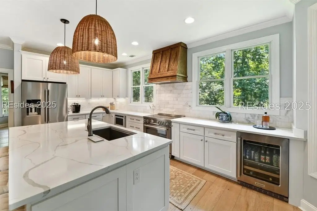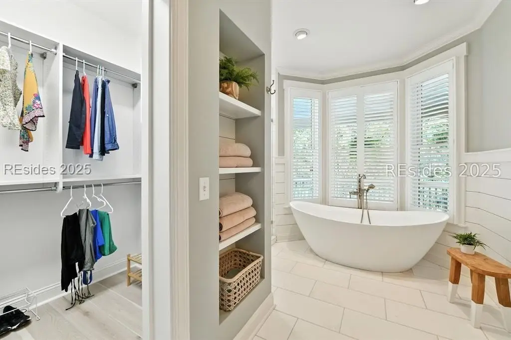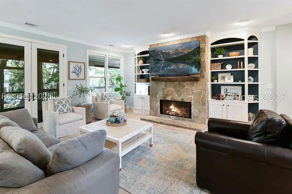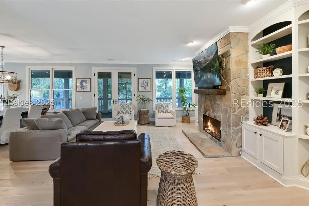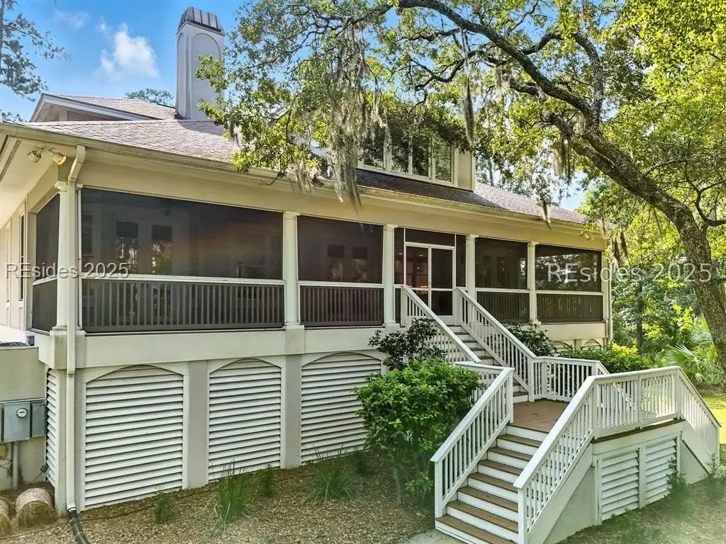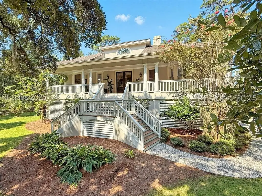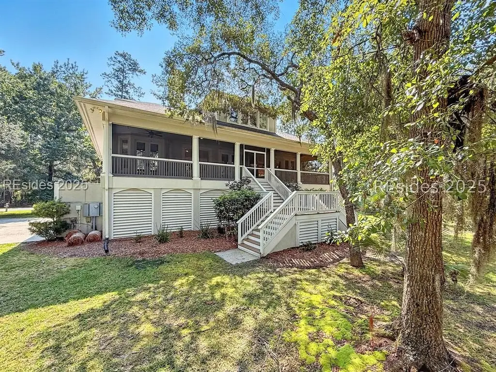 Quick move in available! Fabulous opportunity for a beautiful home on the Estate Side of the gated Rose Hill community resting on a quiet, peaceful over 1/2 acre corner lot. The home has gorgeous recent renovations. The design is true LowCountry at it's finest with a large front porch and an equally large back porch fully screened. Features include 4 bedrooms, a large office, 3 full baths, and two 1/2 baths. The open concept floorplan allows one to enjoy natural lighting and easy living. A welcoming grand entrance opens to the great room featuring a wood burning fireplace. The updated spacious kitchen has a large island, plenty of cabinet space, full pantry, Bertazzoni range and quartz countertops. The large primary bedroom/bathroom features full marble shower enclosure, freestanding tub and master closet all on the main living level. The main living level features an additional family room or office that could also be used for a large, 5th bedroom if desired. Upstairs has 3 large bedroom, 2 bathrooms, walk in attic and lots of closets. Lower-level features 2-1/2 stall garage with a large workshop, bath, two oversized storage areas that can accommodate a small fishing boat. Rose Hill offers a boat landing with Colleton River saltwater access, 3 pools, golf, pickleball, tennis, walking trails and a nice restaurant at the Rose Hill Golf Clubhouse. Everything is easily accessible by golf cart.