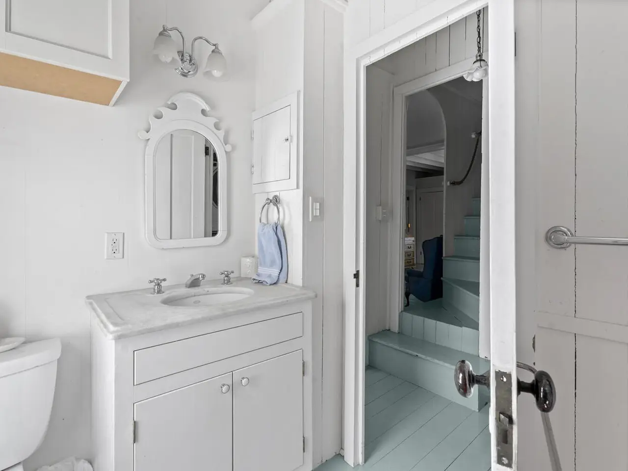 Enjoy sweeping ocean views from this beautifully updated East Chop Victorian, complete with a timeless guest cottage. Thoughtfully renovated in 2010, the main residence seamlessly blends historic character with modern comfort. The kitchen and bathrooms have been stylishly updated while preserving the home's original charm and character. The guest cottage, tucked to the rear of the property, affords a private retreat or additional space for family and friends. Nestled in the heart of East Chop-a close-knit, sought-after community-this property is just a short distance from pristine beaches, the active harbor front, and vibrant downtown Oak Bluffs. A happy home, ready to welcome new memories and lasting moments.