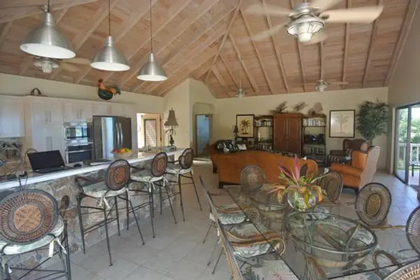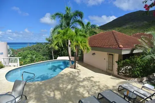 Located on an 0.5 freehoold lot, Adagio Villa enjoys a spectacular view of Sir Francis Drake Channel and catches the caressing tropical breezes. The villa is less than 2 minutes' walk to Mahoe Bay, a smooth, pristine beach with excellent snorkeling. This 5 bedroom house is situated in a low densityprivate estate within 5 minutes' drive of the Virgin Gorda airport, Yacht Harbour and excellent restaurants and shops. This is a rare opportunity to owna superior villa on Virgin Gorda. Skillfully designed to capture an expansive and spectacular ocean view, Adagio is a contemporary Caribbean villa that unites casual outdoor relaxation with elegant luxury to make for the perfect vacation home. Its proximity to Mahoe Bay, an exquisite mile-long smooth and sheltered white sand beach on Virgin Gorda's west coast, makes it a rare offering. The calming sound ofthe ocean constantly serenades the property, and the tropical climate means year-round sunny enjoyment of the pristine beach. The Villa The property consists of two pavilions separated by a private pool and patioarea. The spacious Main Pavilion includes three master bedrooms and an expansive Great Room that flows out to the oversized covered verandah. To capitalize on the amazing view, the Great Room is surrounded by glass doors which, with the use of light coloured wood beams for the cathedral ceiling, make the room light and airy. The open floor plan of the Great Room comprises a newly updated kitchen, large inside dining area and alluring drawing room. Off the kitchen, is a covered bar area fully equipped with beverage fridge, ice maker, large bar sink, ample countertops and storage for bar accessories. The Main Pavilion also includes three bedrooms, all casually luxurious, withfull ensuite bathrooms including alfresco glass-walled showers. The first bedroom is a few steps off the Great Room. The second bedroom is upstairs via an interior staircase off the Great Room and elevated to enjoy an amazing view. The third bedroom of the Main Pavilion is on the lower level, enjoys a full view of the Sir Francis Drake Channel, and is roomy with beds for parents and young children or up to four children in separate beds on their own. The Guest Pavilion, which is at ground level, has two conjoining ensuite bedrooms. All five suites boast glass-blocked alfresco showers and large privatocean. A ramped walkway joins the two pavilions to permit complete handicap accessibility between the two buildings. A gorgeous free-form heated pool and surrounding tanning patio is located between the two pavilions making for a relaxing gathering spot to enjoy poolside activities including the viewing magnificent sunsets. The property boasts purposefully designed and mature tropical gardens complete with an irrigation system. Three owner-lock-ups, a large linen, towel and accessory storeroom, housekeeper's storage/laundry, garage for auto and/or small watercraft, private driveway and ample parking complete this offering.
