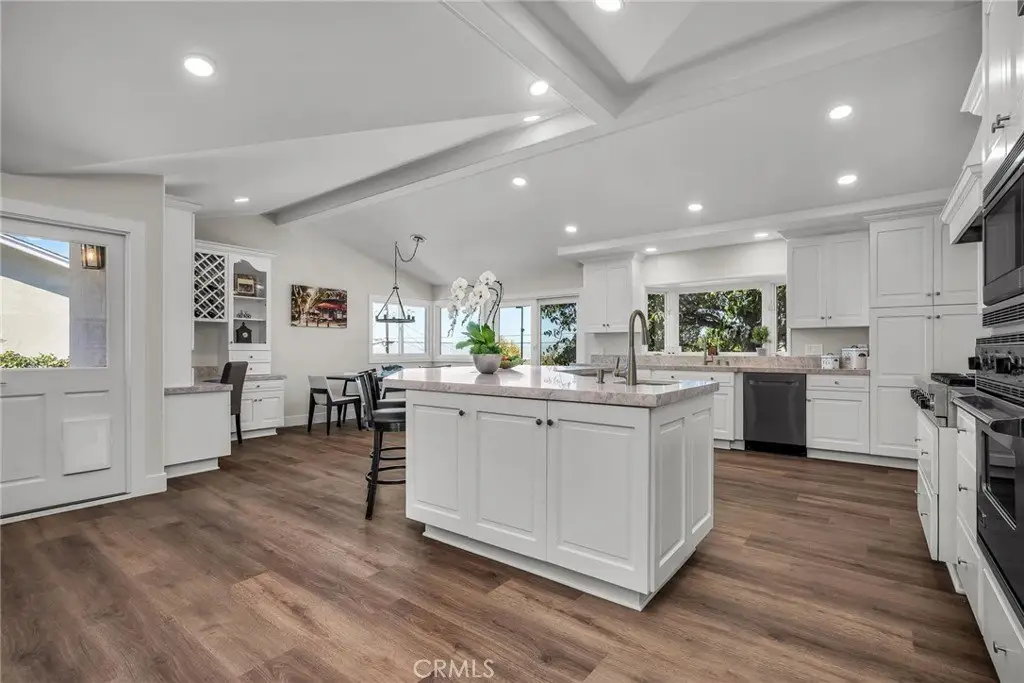 Welcome to this stunning, fully remodeled ranch-style home in an A+ prime location within the highly sought-after Marloma neighborhood. This single-level gem radiates inviting energy, bathed in natural light and centered around a spectacular courtyard patio accessible via French doors from the living room, family room, and primary bedroom suite. Enjoy some city-light views for added charm. Spanning 3,100 SqFt, this beautifully updated 4-bedroom, 3-bath home includes an additional 400 SqFt studio with its half-bath and serene backyard vistas. The studio is situated behind the detached 2-car garage and has its own private entrance (unpermitted and excluded from listed square footage—yet an incredible flex space for guests, office, or creative studio). The chef-inspired kitchen features a large central island with seating for four, a prep sink, abundant quartz counter space, and an open layout ideal for entertaining or family meals. Upgrades include new Cristallo quartz countertops and freshly painted custom cabinetry. The huge primary bedroom suite features a sitting area, luxurious bathroom, walk-in closet, and dedicated office nook. The expansive, fully usable 15,265 SqFt lot exceeds ? acre and is perfect for outdoor living and play, and offers a dream backyard: a flagstone courtyard patio with built-in BBQ, full-sized fire pit, raised gardening beds, bocce ball court, private spa patio with outdoor shower, ample lawn area, and lush landscaping everywhere! A long driveway provides substantial parking: 3 spaces behind the remote gate plus 2 in front. Recent upgrades enhance the transitional-rural vibe: new roof, luxury vinyl plank flooring (glued down), fresh exterior and interior paint, new doors/trim/hardware, baseboards, switches/outlets, new LED lighting throughout, new garage door and opener. Enjoy one of the Hill’s best microclimates: comfortable year-round, rarely too hot, cold, windy, or overcast. Super easy on-off the hill and just minutes from restaurants, shopping, Peninsula Center, Riviera Village, Terranea Resort, Del Amo Mall, and the 110 Freeway. And, it’s a short walk to Rancho Vista Elementary in the award-winning Palos Verdes Peninsula Unified School District. Don’t miss this rare opportunity to own a magnificent property blending luxury upgrades with warm, welcoming charm in an unbeatable A+ location!