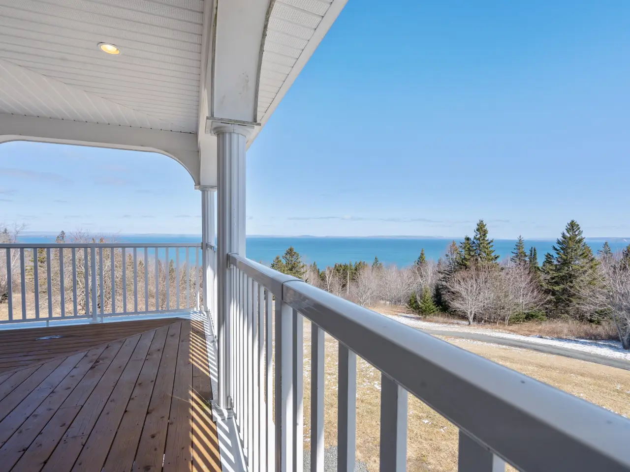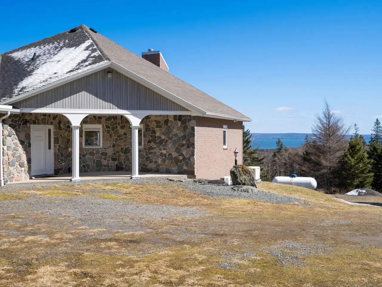 Spectacular lake view retreat with panoramic Bras d'Or Lake views. This extraordinary 4-bedroom, 3.5-bathroom custom residence sits on 178 acres of woodland. This 3,331 sq. ft. home offers unparalleled craftsmanship and breathtaking views of the world-famous Bras d'Or Lake. Built with state-of-the-art Insulated Concrete Form (ICF) construction, this residence delivers superior energy efficiency, soundproofing, and structural integrity. The striking exterior showcases meticulously hand-laid granite and sandstone complemented by stylish stacking brick. Every detail has been thoughtfully curated to create a home of exceptional quality and esthetic appeal. The main level boasts an open-concept living area with cathedral ceilings and a magnificent stone fireplace centerpiece. The architectural design features windows positioned to frame the breathtaking lake views from multiple angles, while patio doors lead to a panoramic balcony. Throughout the home, the windows are equipped with high-quality built-in exterior room-darkening blinds, providing light control and privacy when desired. The upper level features a loft overlooking the main living space, plus a spacious primary bedroom and versatile additional room. The fully finished walkout basement includes a recreation room with woodstove, beautifully crafted stone wall and hearth, and patio access. Premium features include in-floor heating (basement and main level), heated 26'×32' attached garage with 16' and 9' doors and Generac propane generator for uninterrupted power. Set in diverse woodland, this property offers the perfect balance of privacy and accessibility while capturing unobstructed lake views. This amazing residence must be viewed in person to truly appreciate the exceptional craftsmanship throughout.