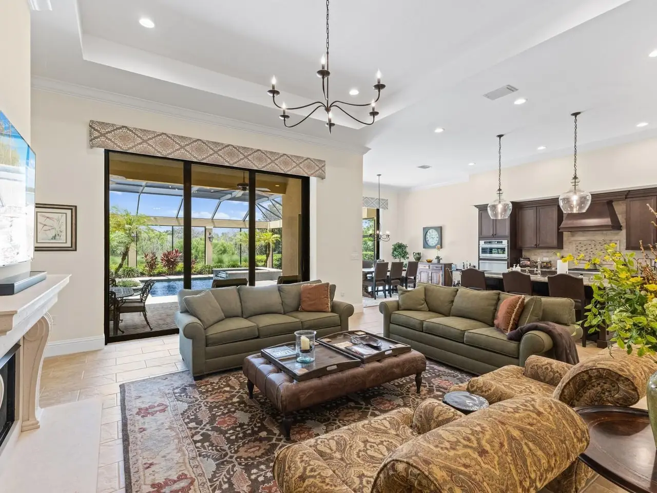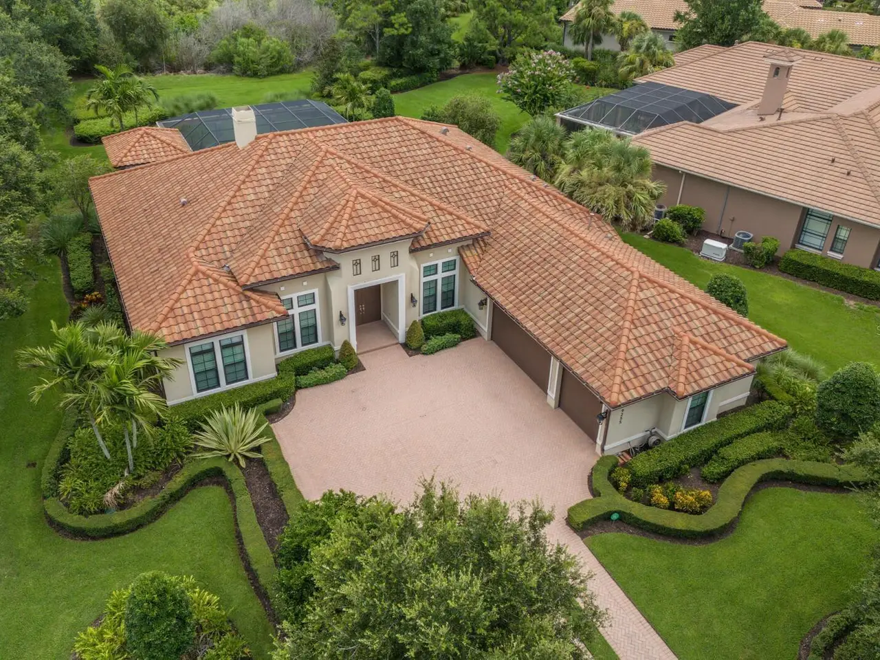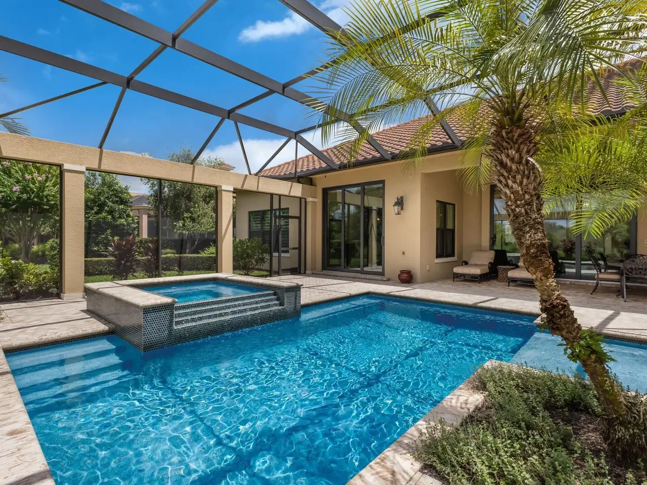 Nestled gracefully on a cul-de-sac within the prestigious Founders Club, this exceptional London Bay custom home offers a harmonious blend of sophistication and comfort. With three spacious bedrooms and three well-appointed bathrooms, the residence caters gracefully to both family and guests. Every element of this home, from its spacious rooms to its elegant finishes, was crafted by its current owner with care and attention to detail. Thoughtfully designed for those who appreciate versatility, the home boasts an inviting open floor plan. The main living area flows seamlessly into a large kitchen with high-end appliances and an adjoining eating space, perfect for gatherings and everyday living, while a separate yet inclusive dining room promises memorable evenings and special celebrations. Natural light floods the interiors through tall windows, illuminating the tasteful architectural details and accentuating the tall ceilings. Ceramic tile floors guide you through the main living spaces, while custom cabinetry and designer fixtures add a layer of sophistication. The generous primary suite features hardwood floors, dual walk-in closets and a spa-inspired bathroom with a soaking tub, walk-in shower, and twin sinks framing a makeup station providing luxurious comfort for all. Two additional guest suites are thoughtfully separated from the main suite, and from each other, ensuring a restful haven for visitors. A dedicated media room awaits for immersive entertainment experiences, and a tranquil study provides a private retreat for work or reflection. Step outside to the enclosed pool area, where a pleasant backyard unfolds beyond, offering serene views and complete privacy. The poolside is complimented by a summer kitchen as well as a separate cabana (currently boasting a firepit and comfortable couches), ideal for alfresco evenings and quiet conversations under the stars. Modern conveniences abound, including smart home features, wireless motorized window blinds and semi-sheer shades for privacy on sliding doors and large window openings, a whole-house generator for complete peace of mind, an air-conditioned garage (incorporating a Tesla charging station), and finally a rare Florida basement offering additional storage options. The community has just 262 home sites set around the Robert Trent Jones Jr. golf course and features a clubhouse, tennis courts, a recreation center and children’s playground, and offers an active year-round social calendar. It lies just three miles from Interstate 75, and perhaps two more to the delights of University Town Center, while downtown Sarasota and its famed beaches are only a short distance further. Experience refined living and unparalleled tranquility in The Founders Club - your extraordinary opportunity awaits.