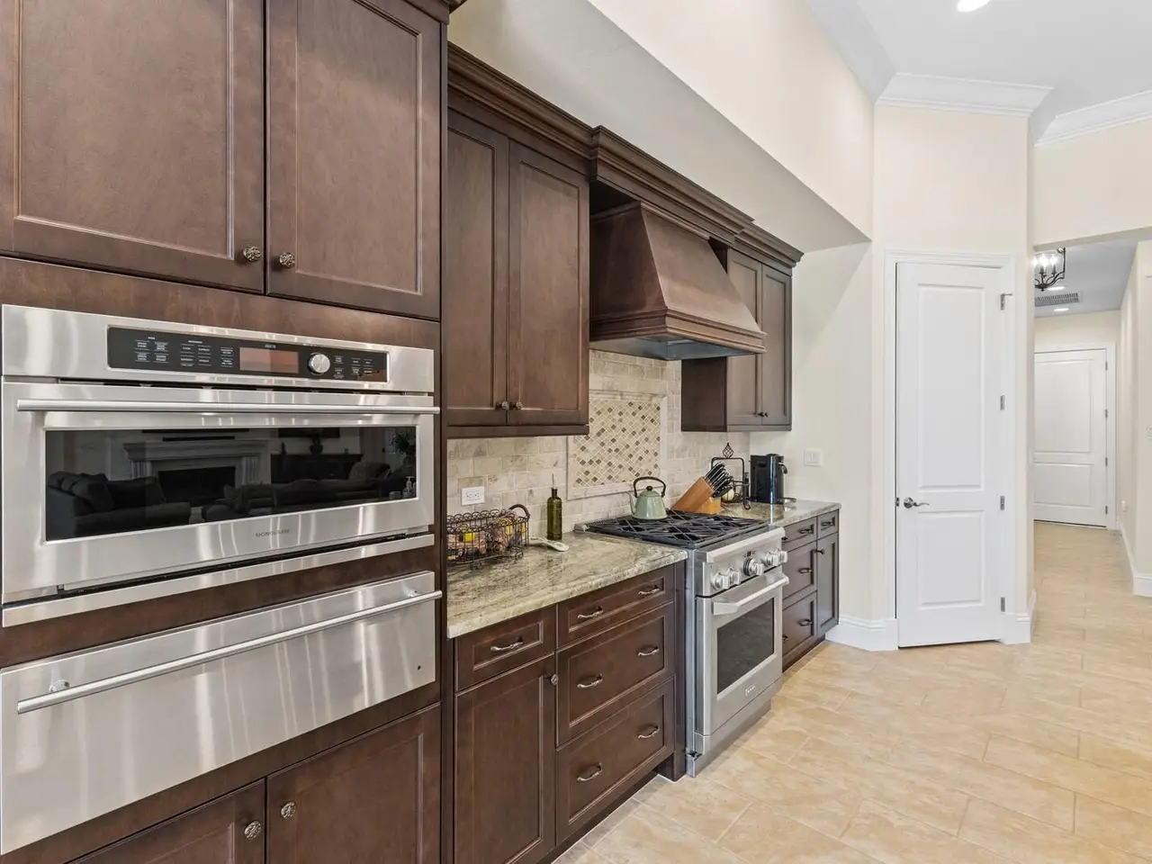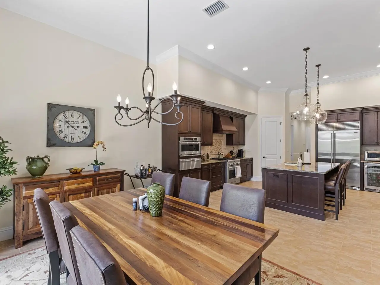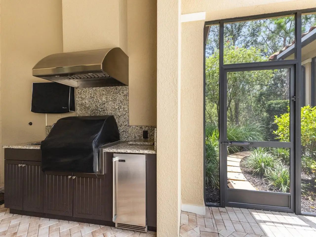 Nestled gracefully on a cul-de-sac within the prestigious Founders Club, this exceptional London Bay custom home offers a harmonious blend of sophistication and comfort. With three spacious bedrooms and three well-appointed bathrooms, the residence caters gracefully to both family and guests. Every element of this home, from its spacious rooms to its elegant finishes, was crafted by its current owner with care and attention to detail. Thoughtfully designed for those who appreciate versatility, the home boasts an inviting open floor plan. The main living area flows seamlessly into a large kitchen with high-end appliances and an adjoining eating space, perfect for gatherings and everyday living, while a separate yet inclusive dining room promises memorable evenings and special celebrations. Natural light floods the interiors through tall windows, illuminating the tasteful architectural details and accentuating the tall ceilings. Ceramic tile floors guide you through the main living spaces, while custom cabinetry and designer fixtures add a layer of sophistication. The generous primary suite features hardwood floors, dual walk-in closets and a spa-inspired bathroom with a soaking tub, walk-in shower, and twin sinks framing a makeup station providing luxurious comfort for all. Two additional guest suites are thoughtfully separated from the main suite, and from each other, ensuring a restful haven for visitors. A dedicated media room awaits for immersive entertainment experiences, and a tranquil study provides a private retreat for work or reflection. Step outside to the enclosed pool area, where a pleasant backyard unfolds beyond, offering serene views and complete privacy. The poolside is complimented by a summer kitchen as well as a separate cabana (currently boasting a firepit and comfortable couches), ideal for alfresco evenings and quiet conversations under the stars. Modern conveniences abound, including smart home features, wireless motorized window blinds and semi-sheer shades for privacy on sliding doors and large window openings, a whole-house generator for complete peace of mind, an air-conditioned garage (incorporating a Tesla charging station), and finally a rare Florida basement offering additional storage options. The community has just 262 home sites set around the Robert Trent Jones Jr. golf course and features a clubhouse, tennis courts, a recreation center and children’s playground, and offers an active year-round social calendar. It lies just three miles from Interstate 75, and perhaps two more to the delights of University Town Center, while downtown Sarasota and its famed beaches are only a short distance further. Experience refined living and unparalleled tranquility in The Founders Club - your extraordinary opportunity awaits.