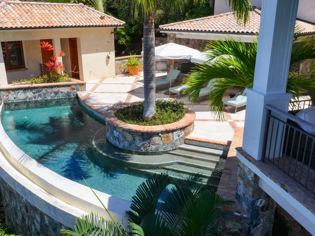 • Infinity-edge pool with waterfall