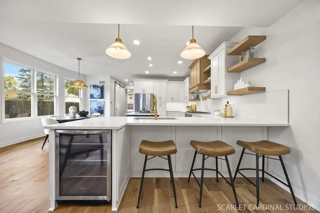 Looking for luxury living just steps from the Metra Train and Downtown Naperville? Welcome to 717 N Brainard Street, a truly exceptional custom-built duplex offering over 4,000 square feet of finely curated living space spanning four impressive levels - all within walking distance from the 5th Avenue Metra station! Offering every attention to detail, including 4 bedrooms; 5 full bathrooms; Marvin windows; Pinnacle stairs; custom cabinetry by Homeowners Dream Custom Cabinets; maintenance-free James HardieTM siding; a spacious 2-car detached garage; and an incredible layout designed for both comfort and style, this home is the definition of luxury living in one of Naperville's most sought-after locations. Step through a covered entry and enjoy an expertly curated space boasting white oak flooring, hand-picked designer lighting, and elevated finishes throughout. The main level features a welcoming foyer with a coat closet, a full bathroom, and a flexible office space ideal for use as a workspace or additional bedroom. The open-concept main living space seamlessly connects the chef's kitchen, dining area, and spacious family room. Designed for both function and flair, the kitchen boasts soft-close custom cabinetry by Homeowners Dream; roll-out drawers; a walk-in pantry; a center island and peninsula with additional seating; pot filler; beverage refrigerator; and even a dedicated garbage disposal button - every element selected with luxury in mind. A cozy 3-season room and mudroom with built-in cubbies offer additional space designed for everyday living. An elegant white oak staircase, crafted by Naperville's own Pinnacle Stairs, leads to a second level featuring an exquisite primary suite with a spa-inspired bathroom offering a dual sink vanity, large walk-in shower, private toilet closet, and an oversized walk-in closet. Two additional bedrooms with ample closet space, a shared hall bath, and a conveniently located laundry room complete the second level. Upstairs, the third-floor retreat serves as a versatile bonus room with its own full bath and ample closet space - perfect for a home theater, fitness studio, or guest suite! The finished basement offers 9-foot ceilings, a spacious rec area, a bar with beverage fridge, an additional full bathroom, a 4th bedroom, and generous storage - all with sound-reducing drop ceilings for added comfort. For accessibility, an elevator can be added for an additional charge. This is more than just a home - it's a lifestyle upgrade in the heart of Downtown Naperville. Don't miss your opportunity to own a thoughtfully designed residence that perfectly blends timeless craftsmanship with today's most sought after amenities!