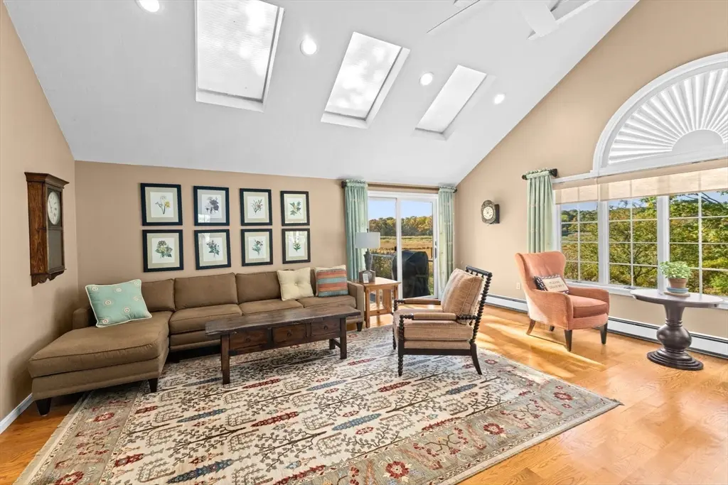 Experience timeless sophistication in this stunning home, ideally located in a sought-after cul-de-sac neighborhood with sidewalks to Minot Beach, North Scituate Village, and the commuter rail to Boston. Inside, youÆre welcomed by a cozy living room to the right and a formal dining room with beamed cathedral ceiling and impressive stone fireplace to the left. The custom eat-in kitchen opens seamlessly to a spacious, sunlit family room also with cathedral ceiling and wood stove. All offering tranquil views of manicured grounds and surrounding marshland. The first floor also features a comfortable guest room and full bath. Upstairs, unwind in the elegant primary suite with Romeo balcony and private bath, along with two additional bedrooms and a third full bath. Additional features include a finished lower-level office, screened porch, deck, two-car garage, A/C, and generator. Minutes to area beaches, Hatherly Country Club, Scituate HarborÆs shops, restaurants, and marinas.