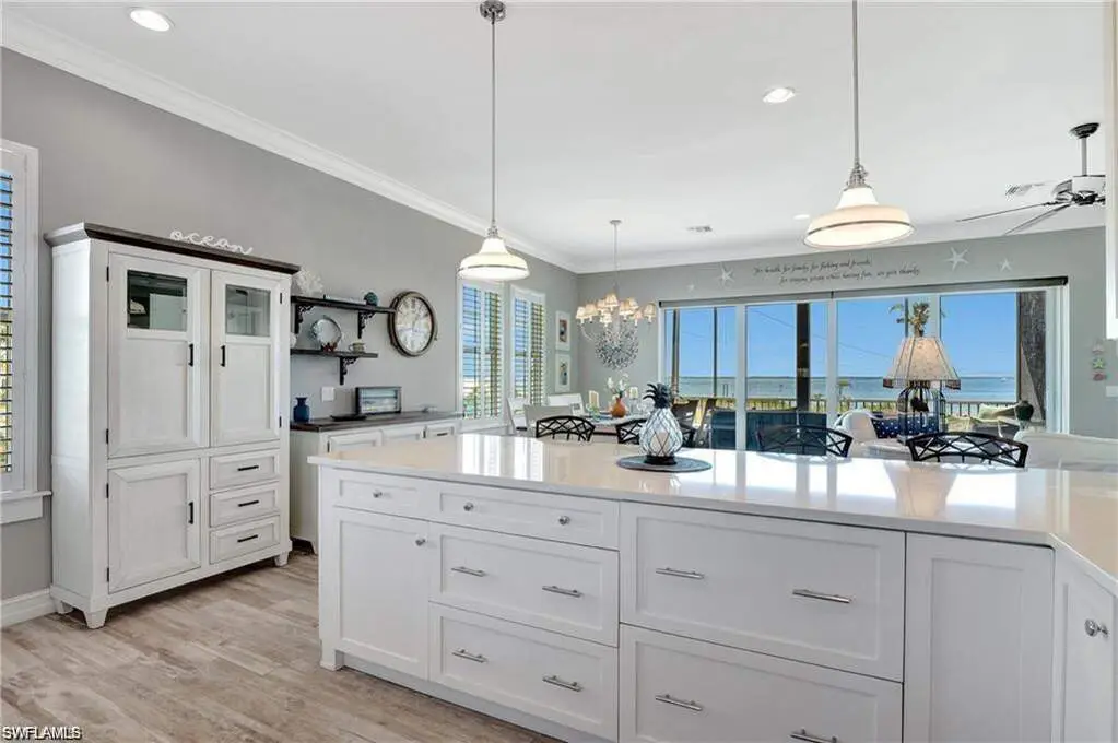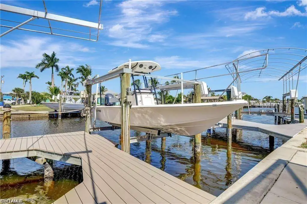 TURNKEY Home with Spectacular Breathtaking Views with a Great Location! This Remarkable Waterfront Gulf Access Pool Home is tastefully decorated with a beachy & nautical decor throughout the home and is Furnished! This Stunning home features Cambria Quartz countertops, GE High-Profile Stainless-Steel Appliances & a kitchen that any gourmet chef would love. NEW AC ! Relax on your screened in balcony with a cocktail in hand as you watch dolphins & manatees swim by. This open floor plan has some amazing views of Pine Island South and Sanibel Island and is a great spot to relax and watch the boats go by. Peace of mind with Metal Roof, Impact windows and doors with plank tile flooring and plantation shutters throughout. New Shiplap ceiling installed in the lanai! Lounge in the heated saltwater pool with your favorite tropical drink and enjoy SWFL Best Sunsets! Enjoy Island life with amenities nearby in your own GOLF CART included in sale ! (Golf Cart loaded with extras valued around $20k} Quick boat ride to local Islands & Beaches with Great Fishing in the area! There are 2 covered boat lifts (14k & 7k lbs.) and composite docks with fish cleaning station. Fall in Love & Make this House your Home! Make the move to Paradise! *VETERAN FRIENDLY*